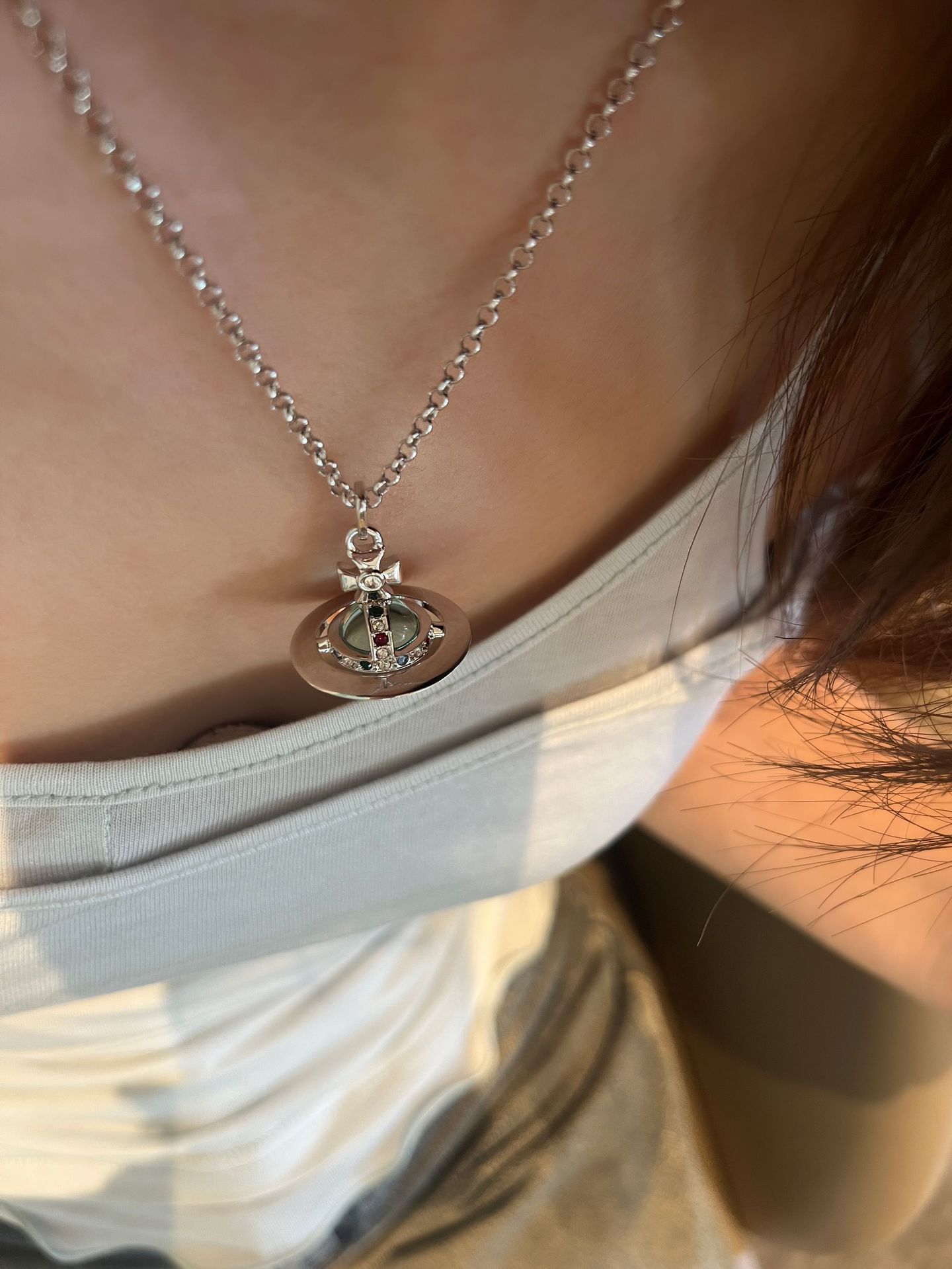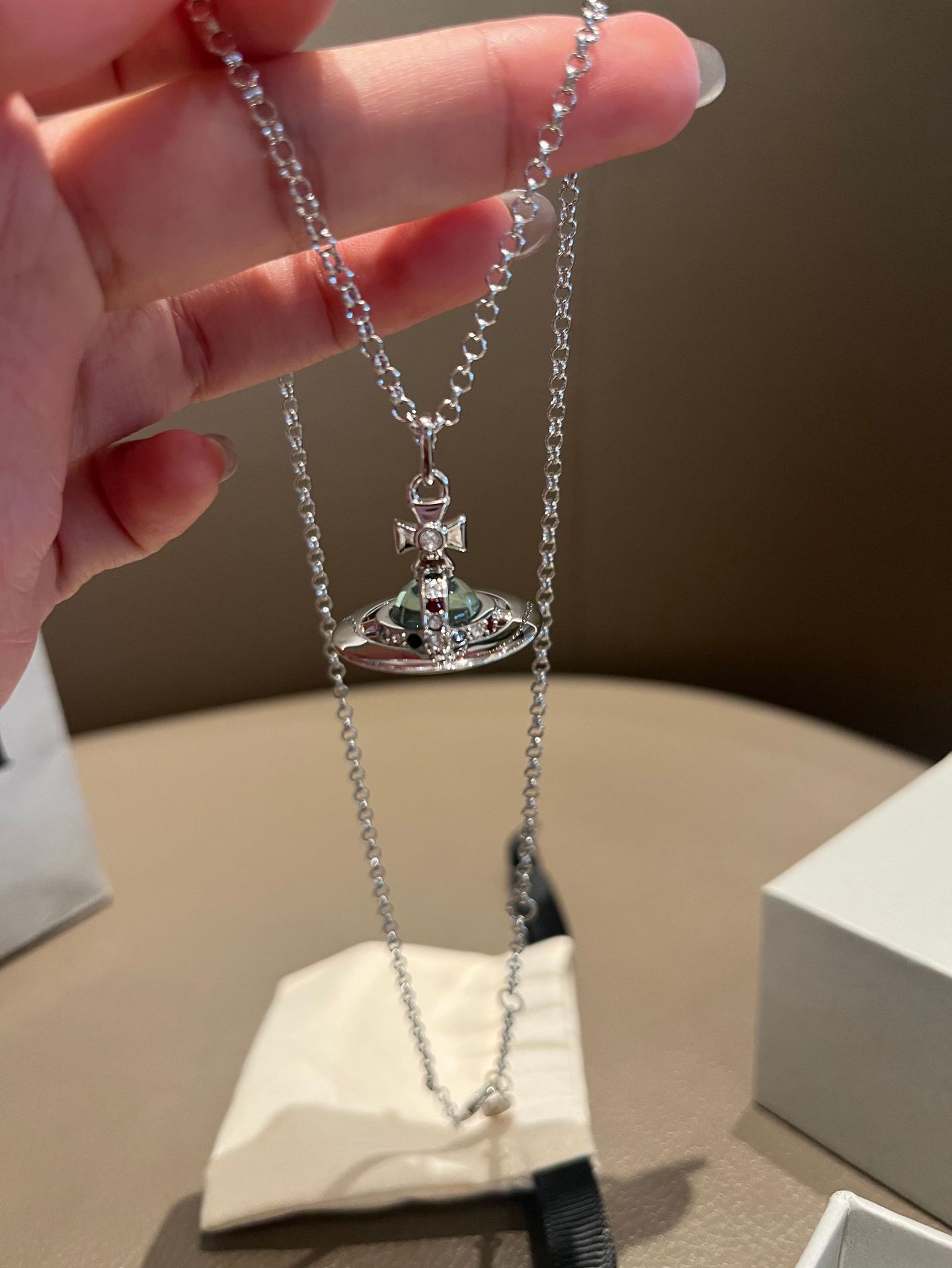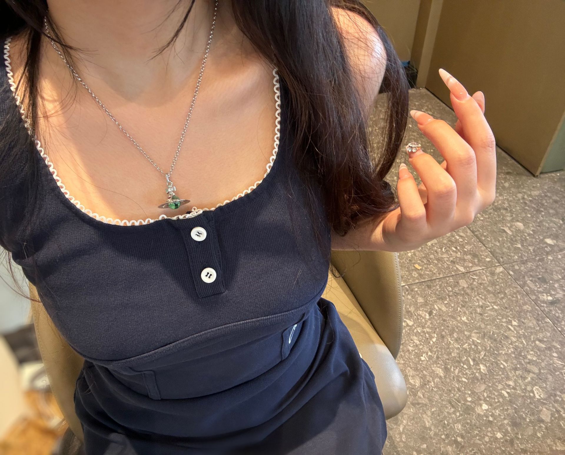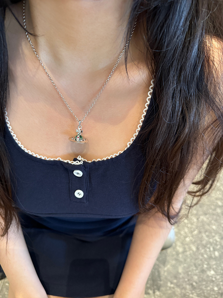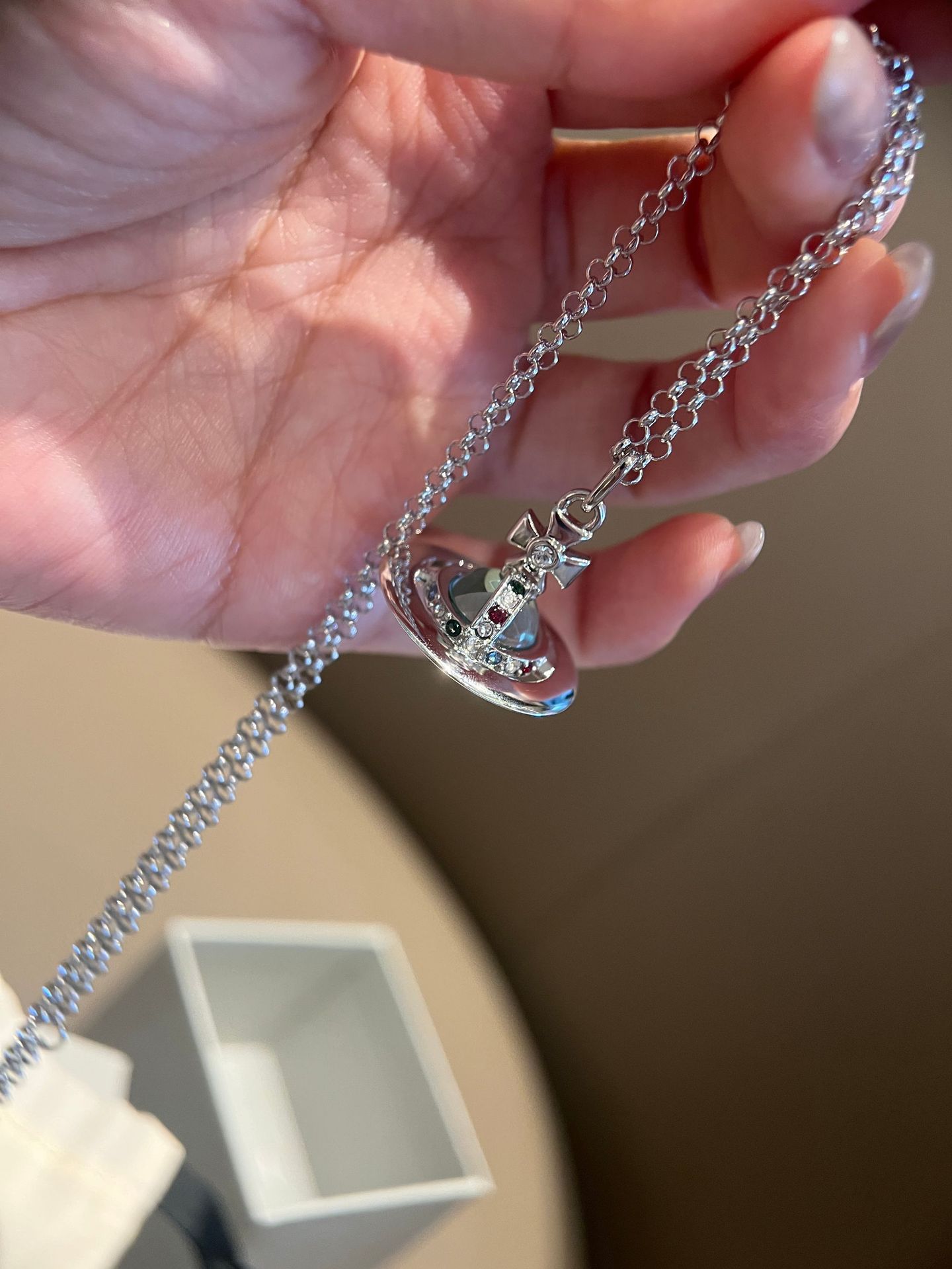 Queen West Medium Mint Green Orb Necklace Three-dimensional Saturn Chain Diamond Planet Flyer Fashion Jewelry