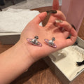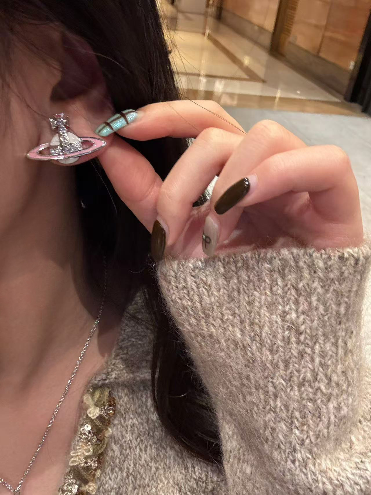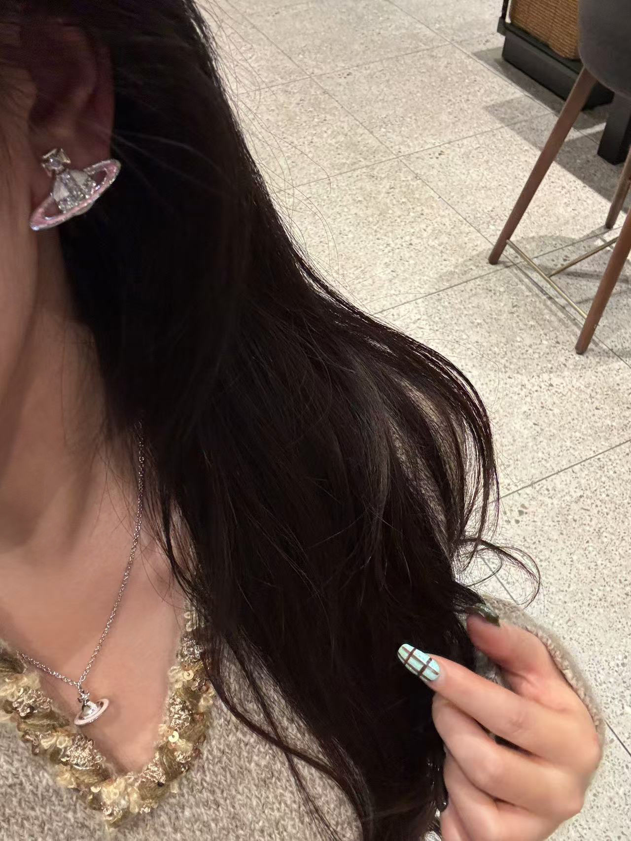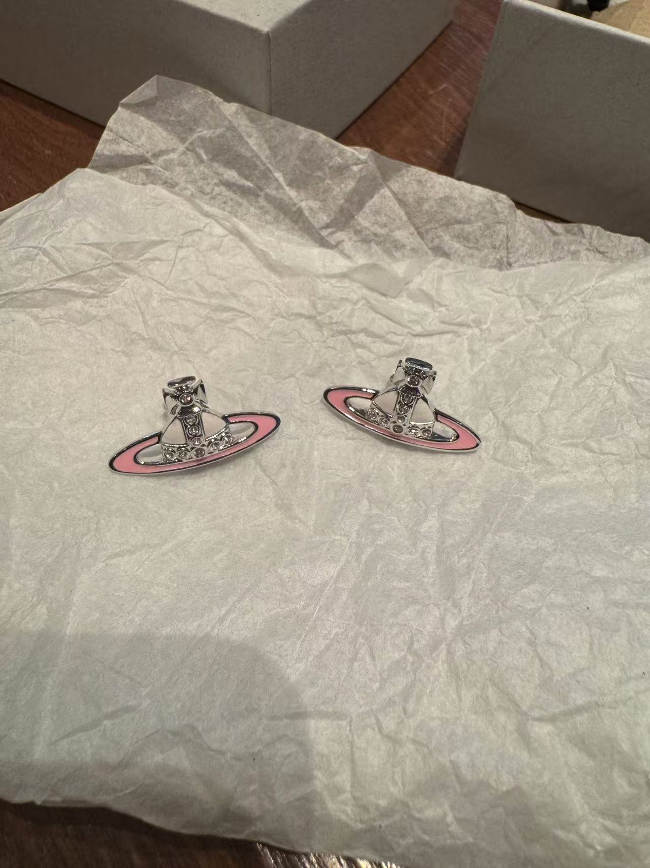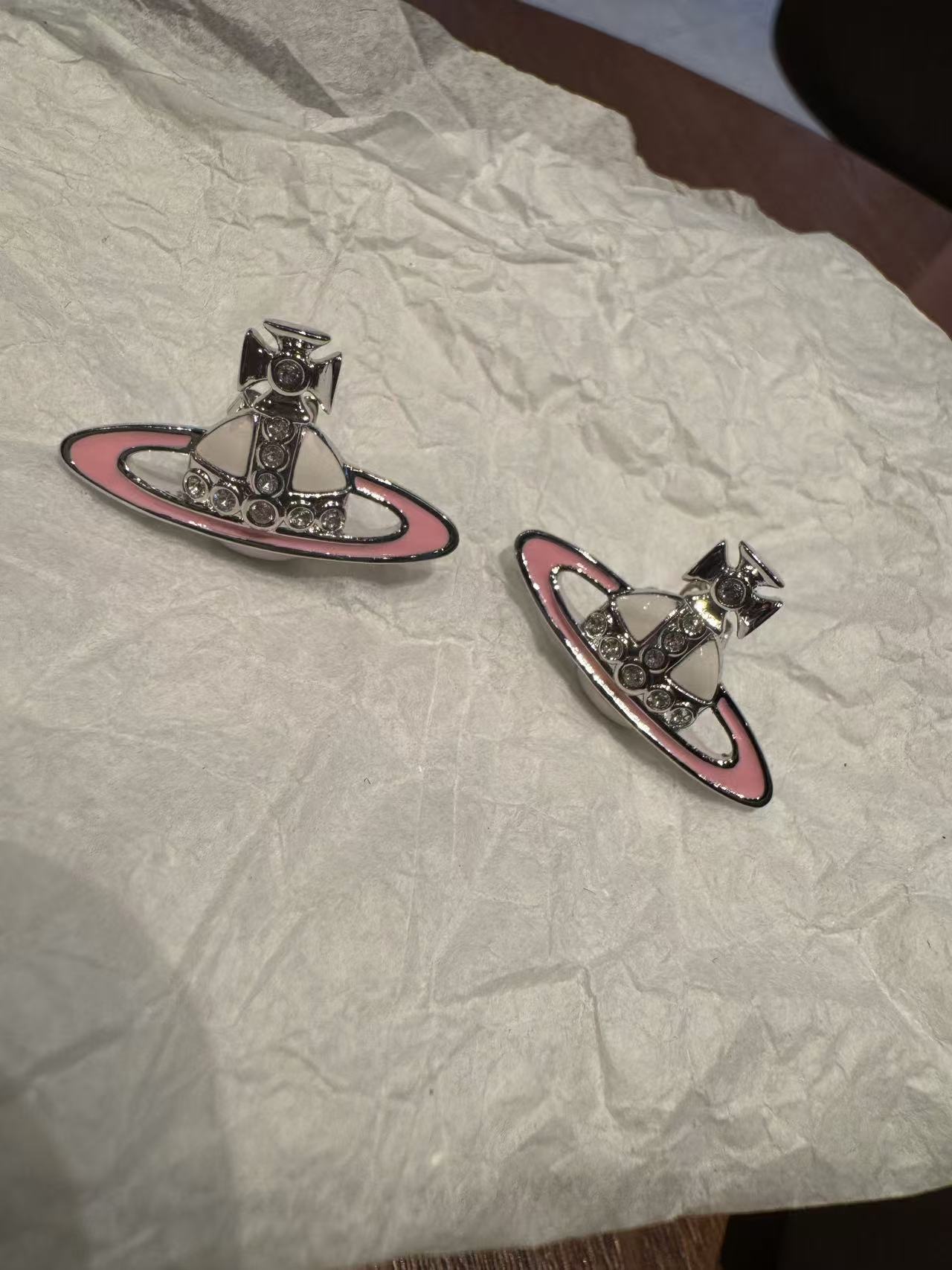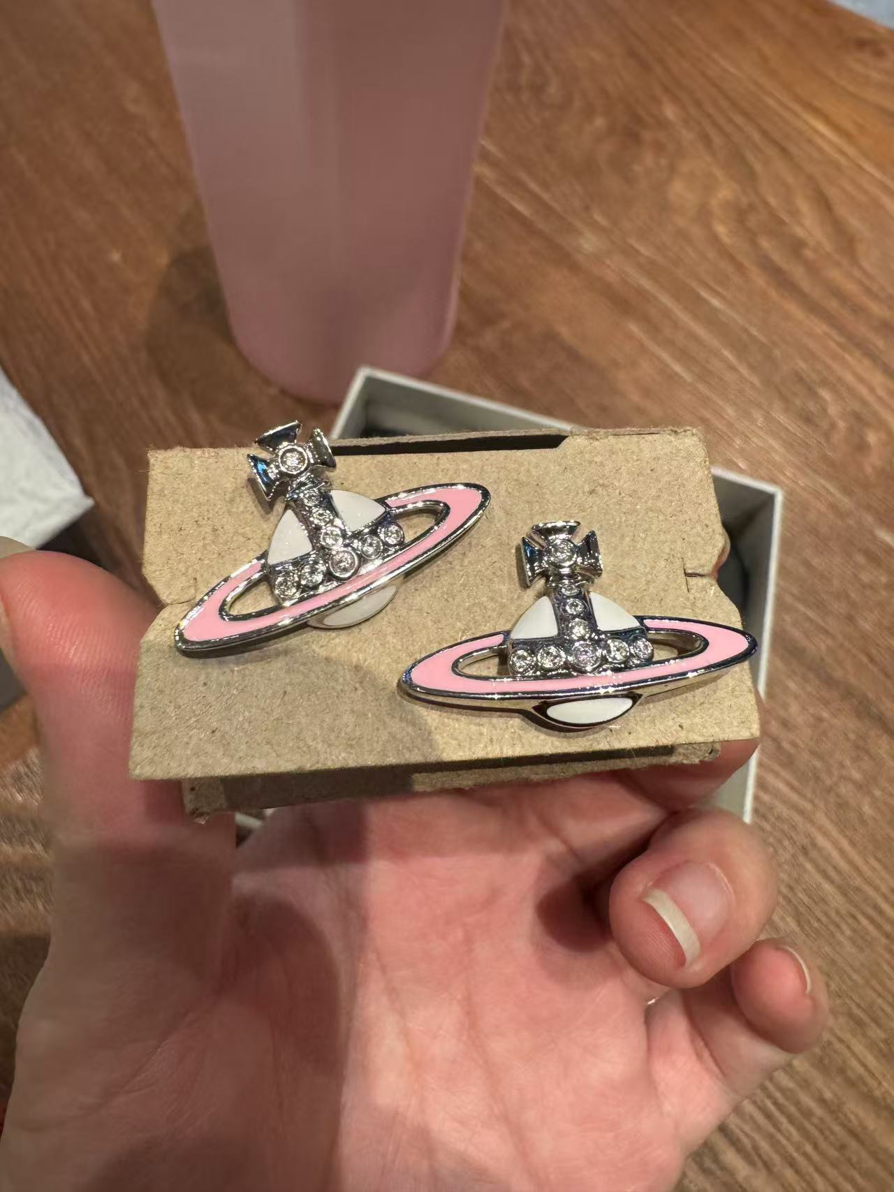 Queen West pink and white enamel Saturn stud earrings Seiko two-tone lacquer diamond orb earrings versatile everyday model
