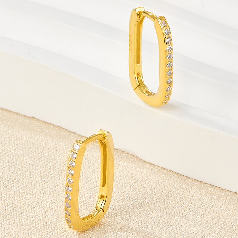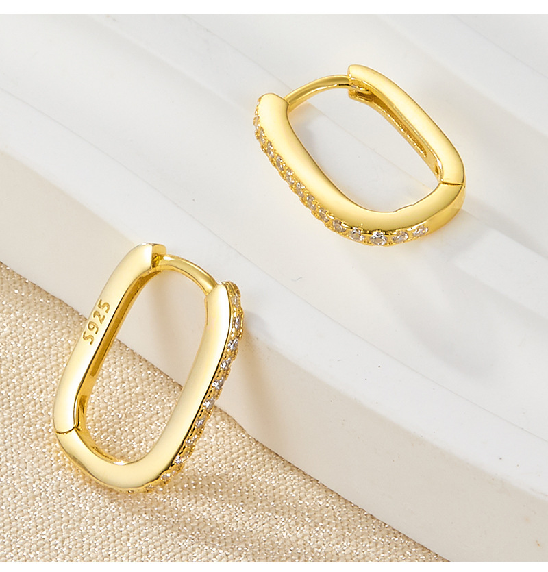 S925 silver earrings u-shaped inlaid zircon ear buckles ins light luxury high-end earrings wholesale European and American jewelry women