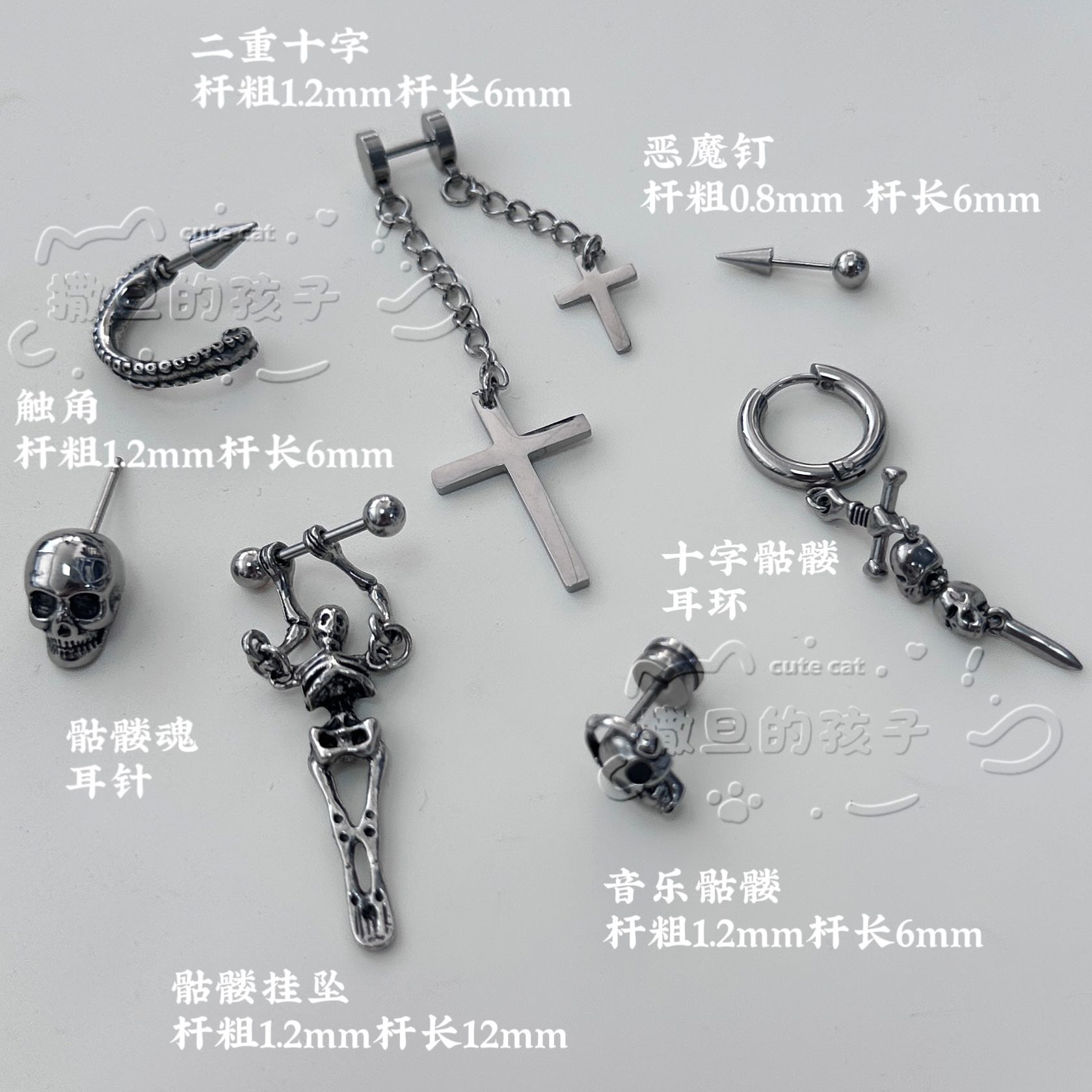 Satan's Children, Bone-Binding Poems, Earrings, Ear Bones Don't Fade, Cochlear Studs, Earrings, Devil Studs, Earrings