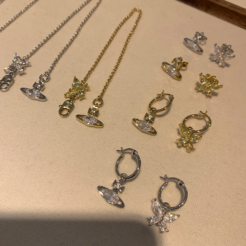 Seiko Queen Mother Elianne Diamond Butterfly Saturn Earrings Stud Earrings New Fine-set Planet Earrings