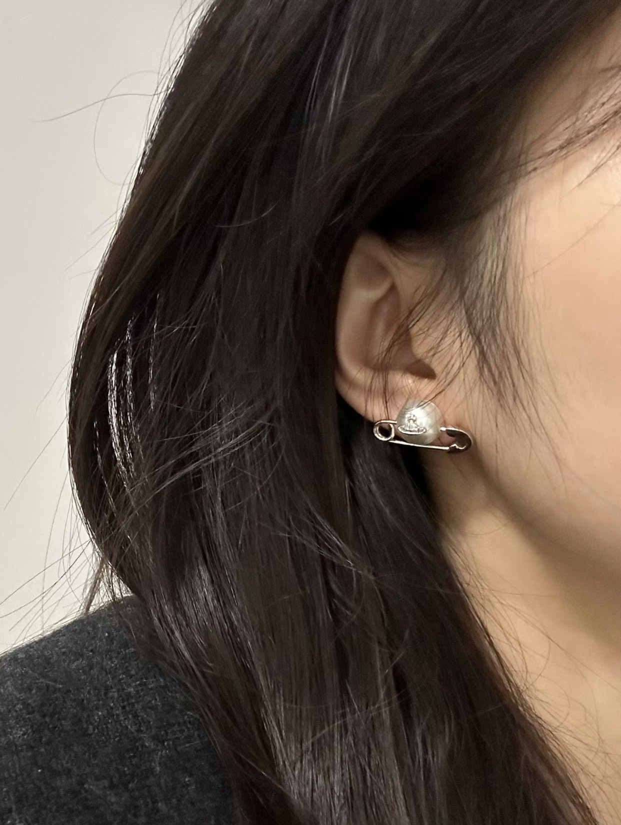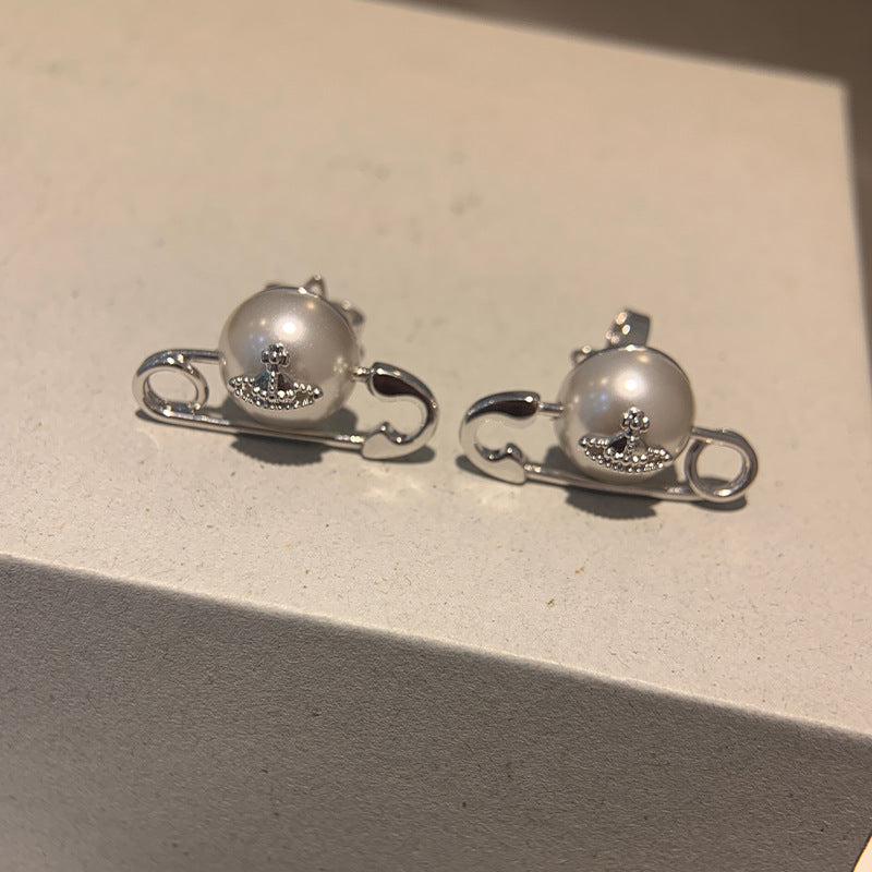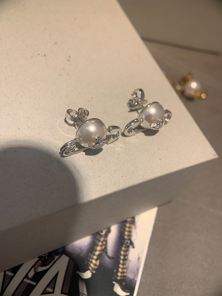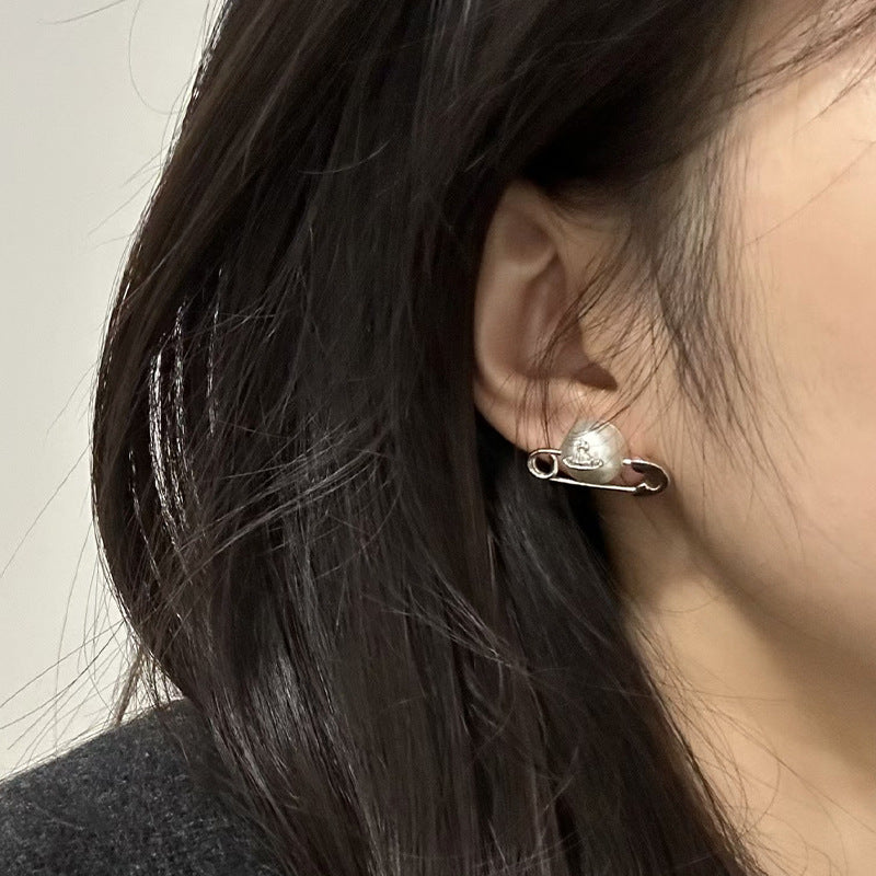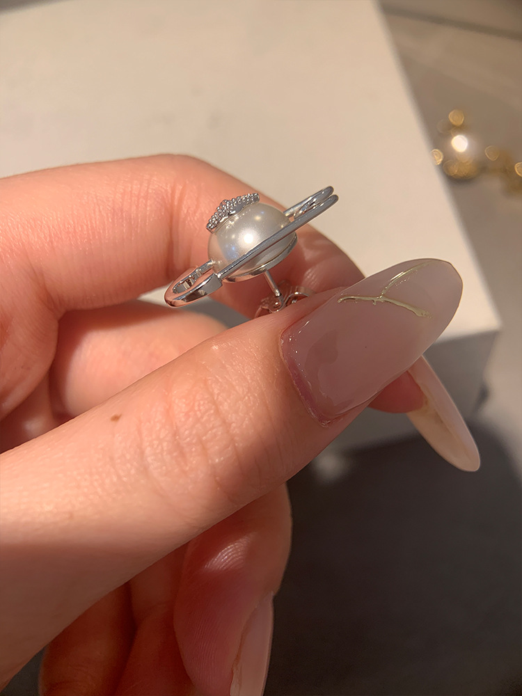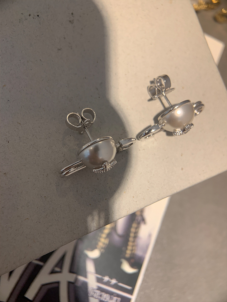 Seiko Queen West pearl paper clip Saturn stud earrings single half pearl three-dimensional embossed planet pin earrings
