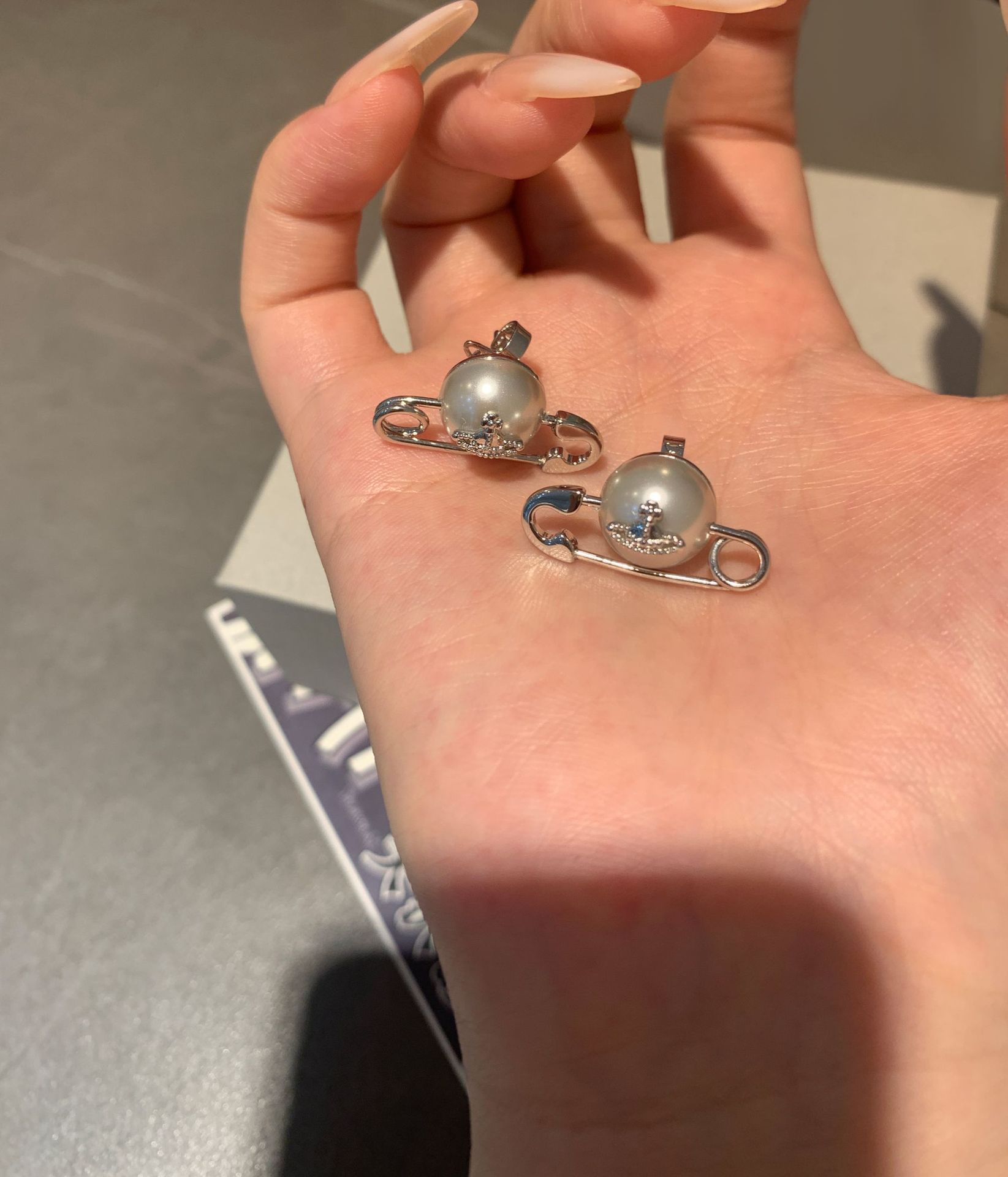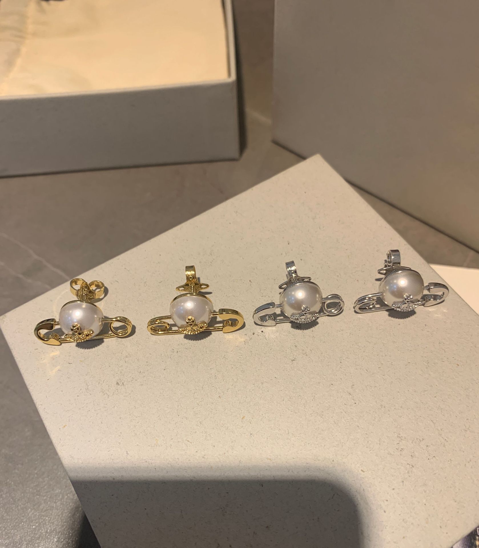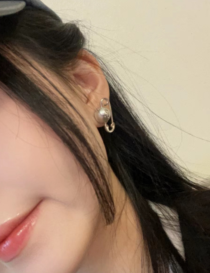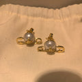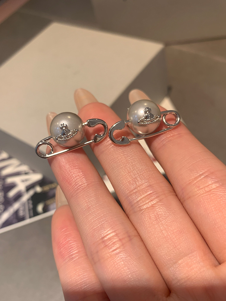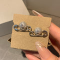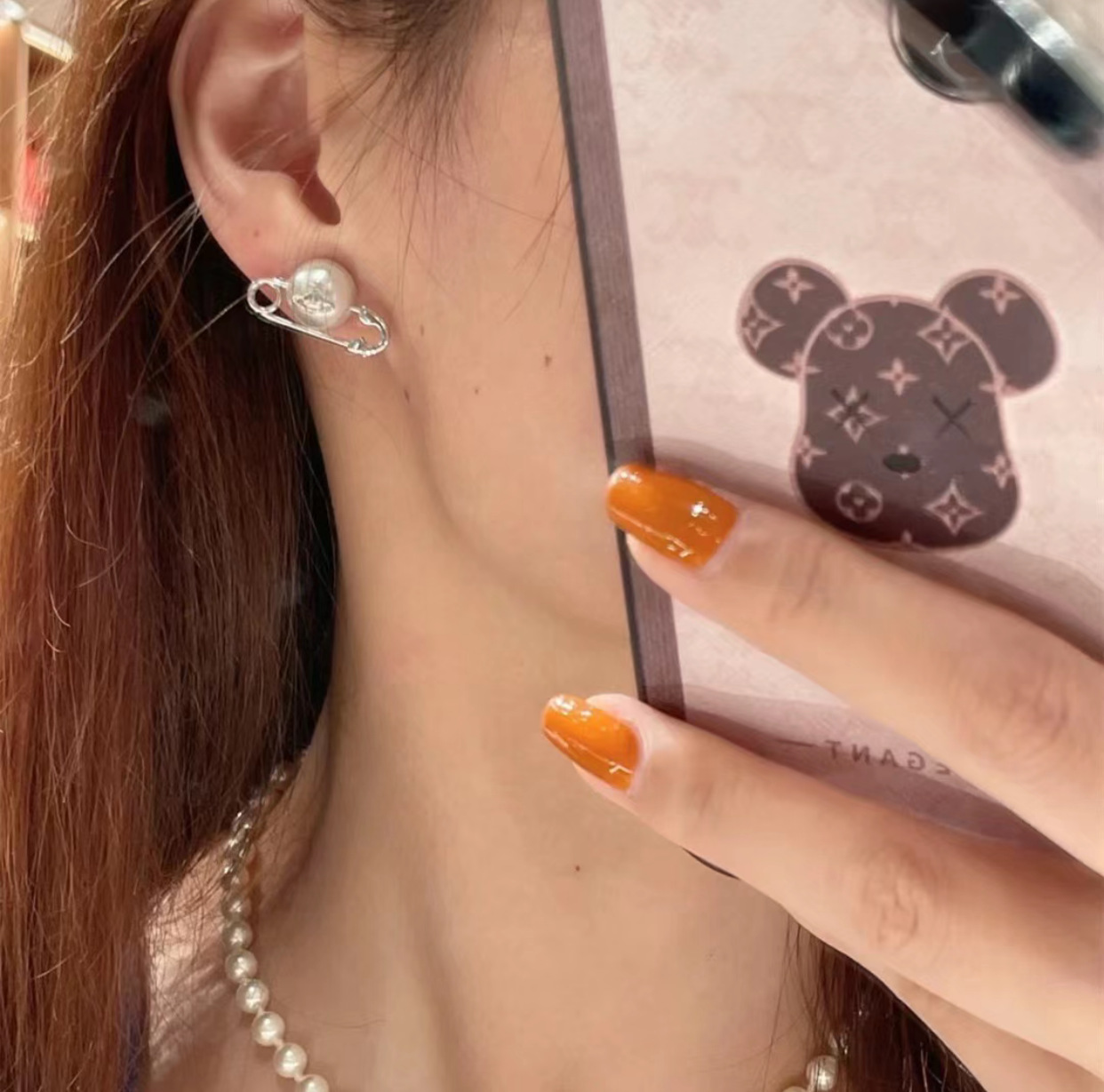 Seiko Queen West pearl paper clip Saturn stud earrings single half pearl three-dimensional embossed planet pin earrings