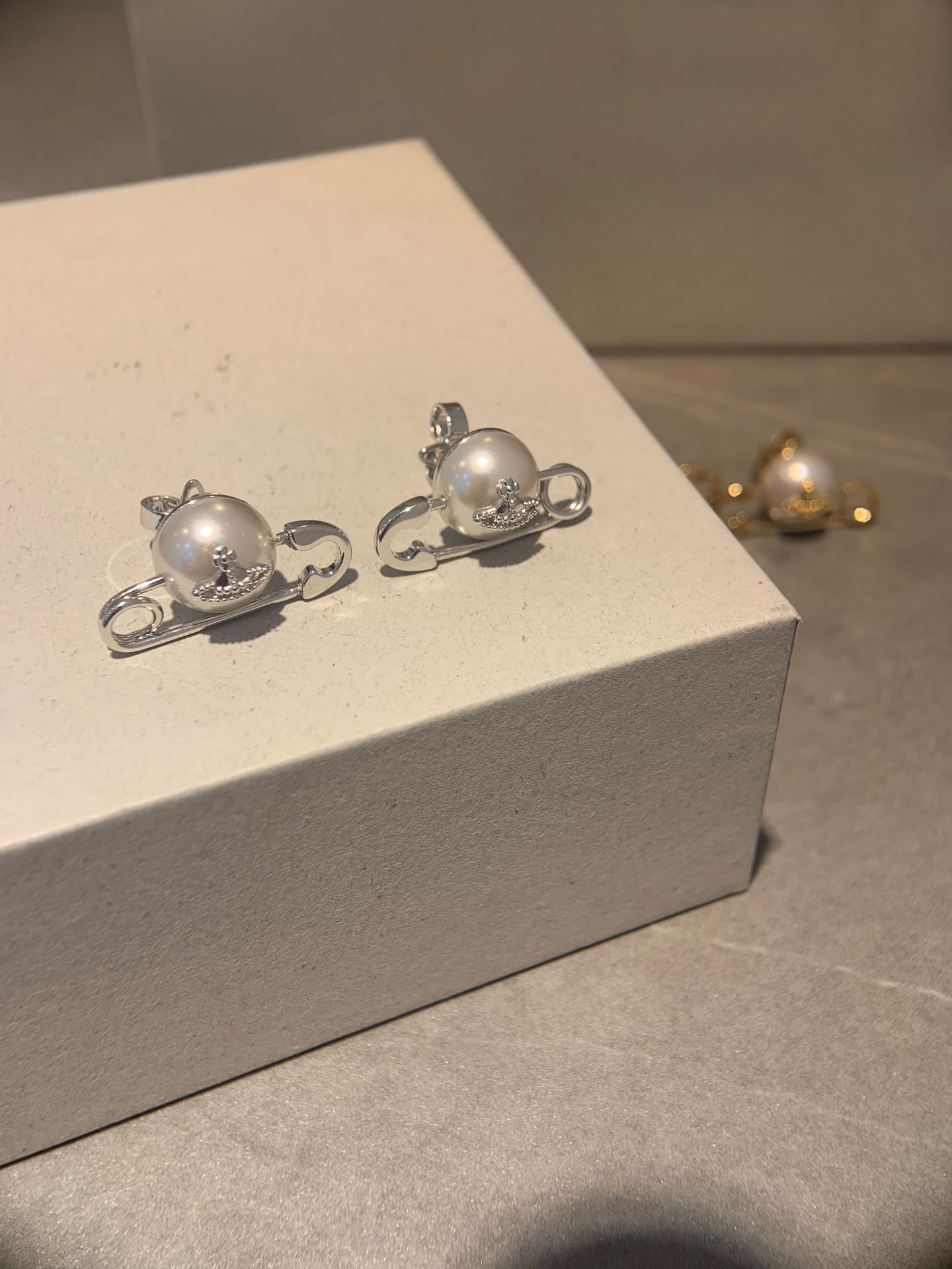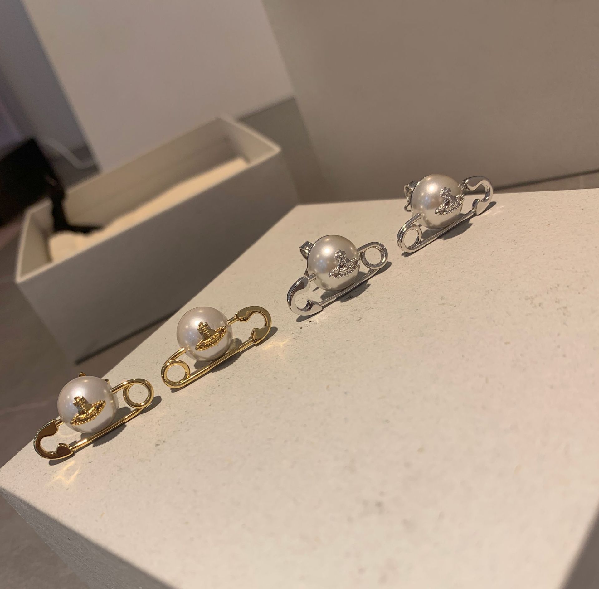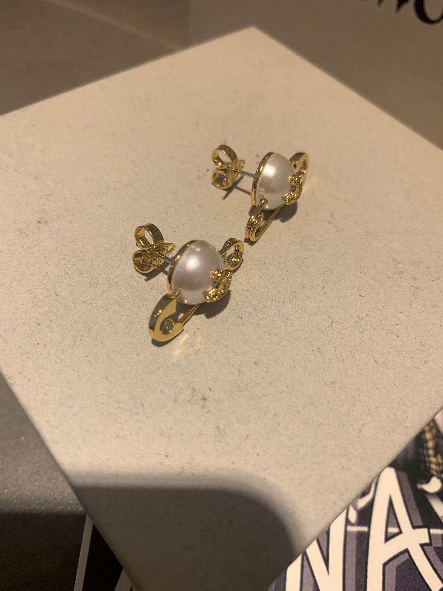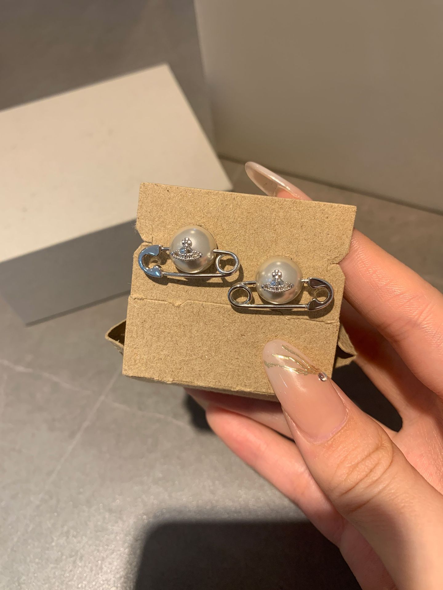 Seiko Queen West pearl paper clip Saturn stud earrings single half pearl three-dimensional embossed planet pin earrings