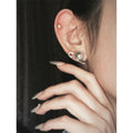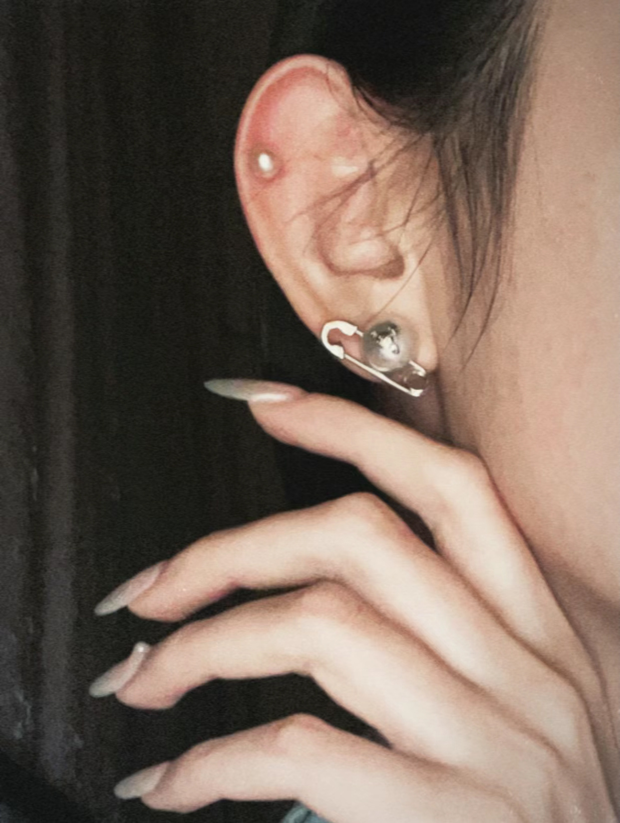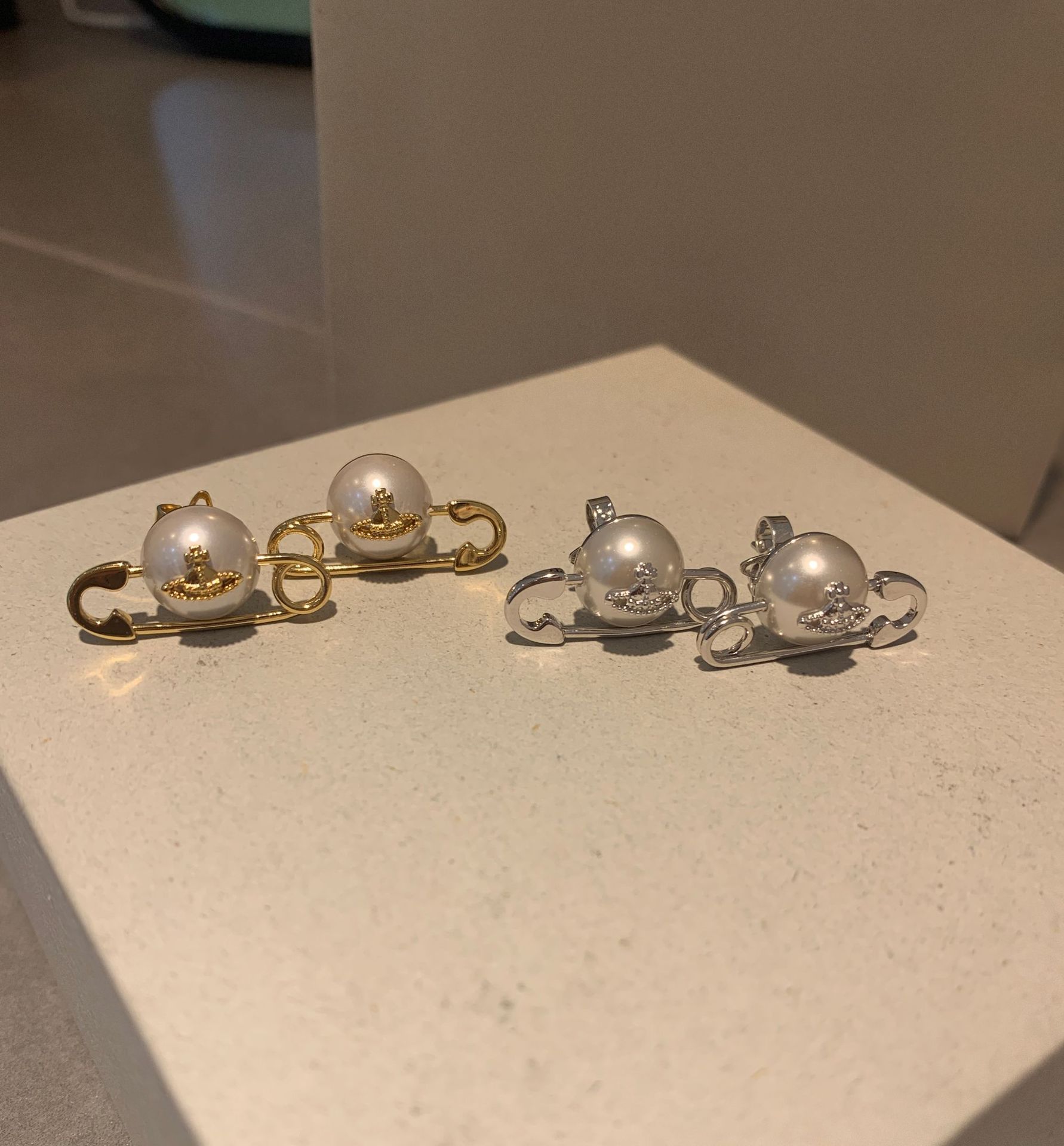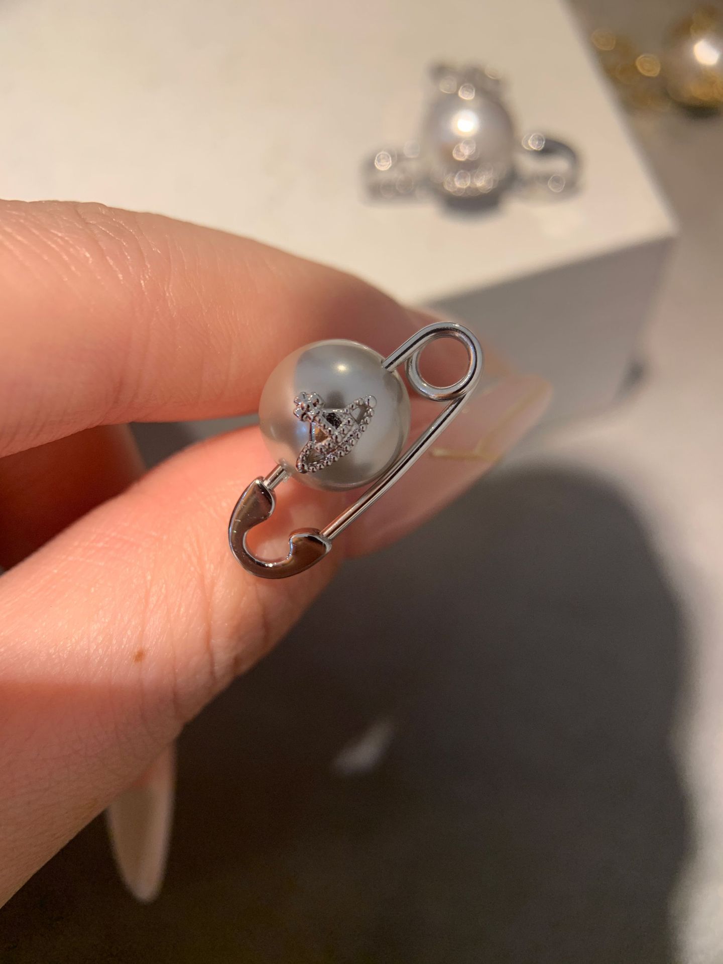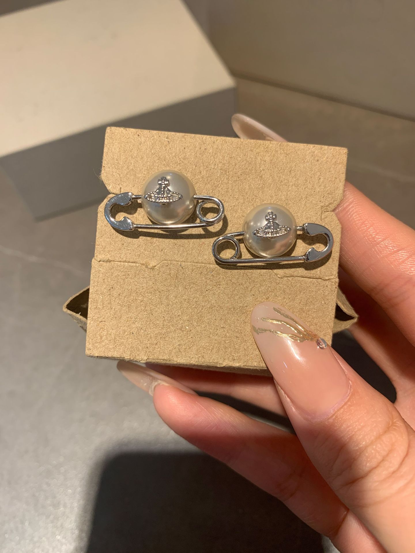 Seiko Queen West pearl paper clip Saturn stud earrings single half pearl three-dimensional embossed planet pin earrings