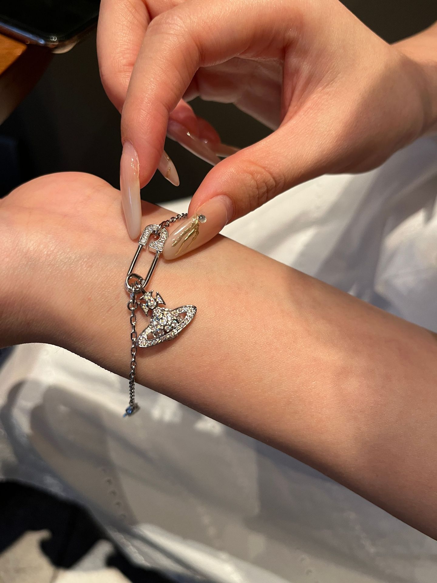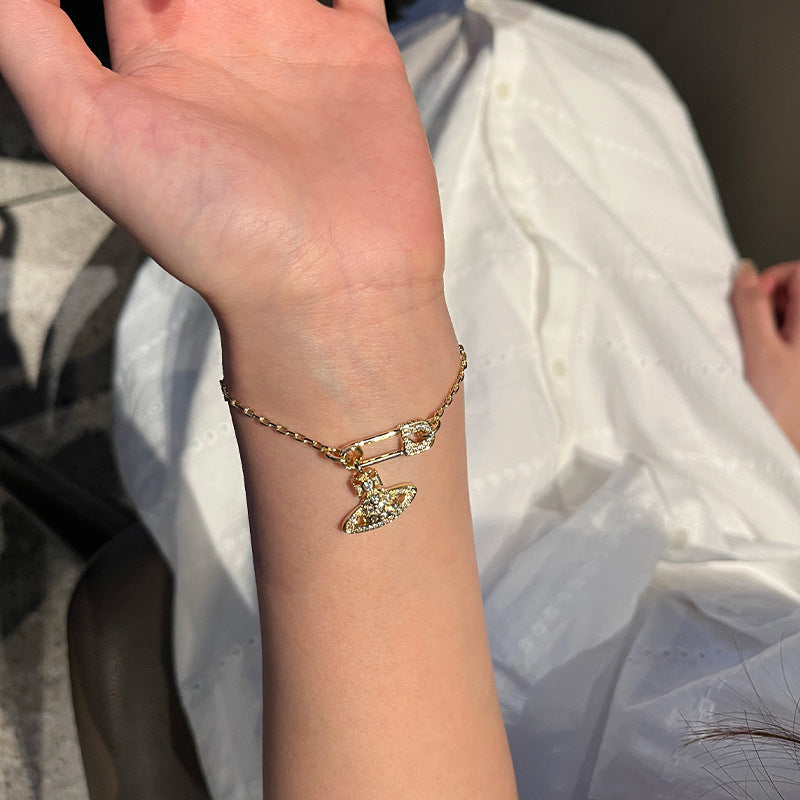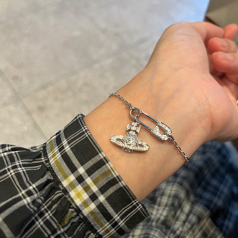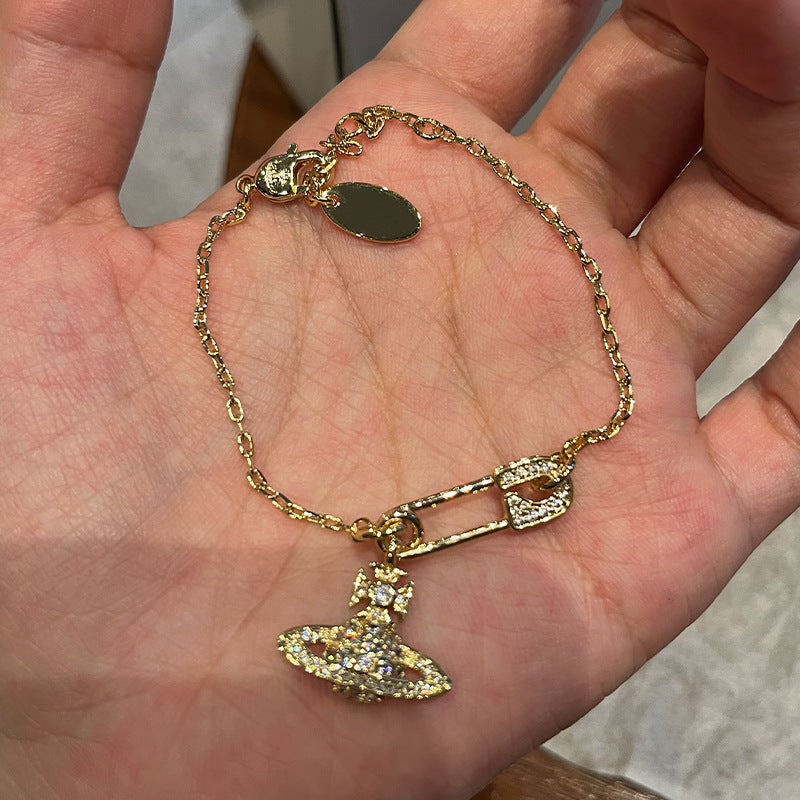 Seiko Queen West pin chain bracelet burst full of diamond paper clip chain Saturn planet hand ornament high-end