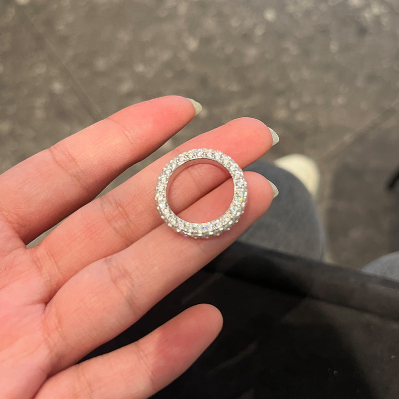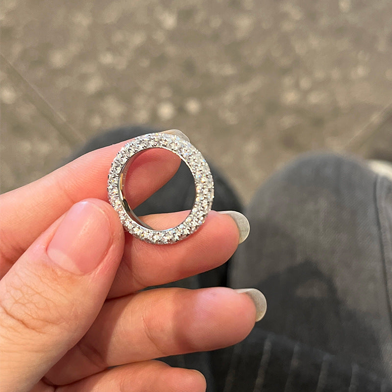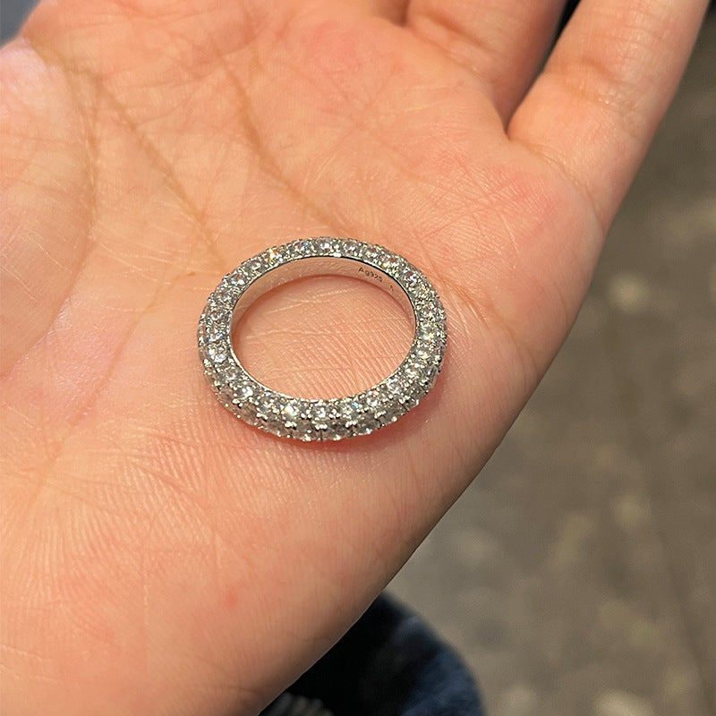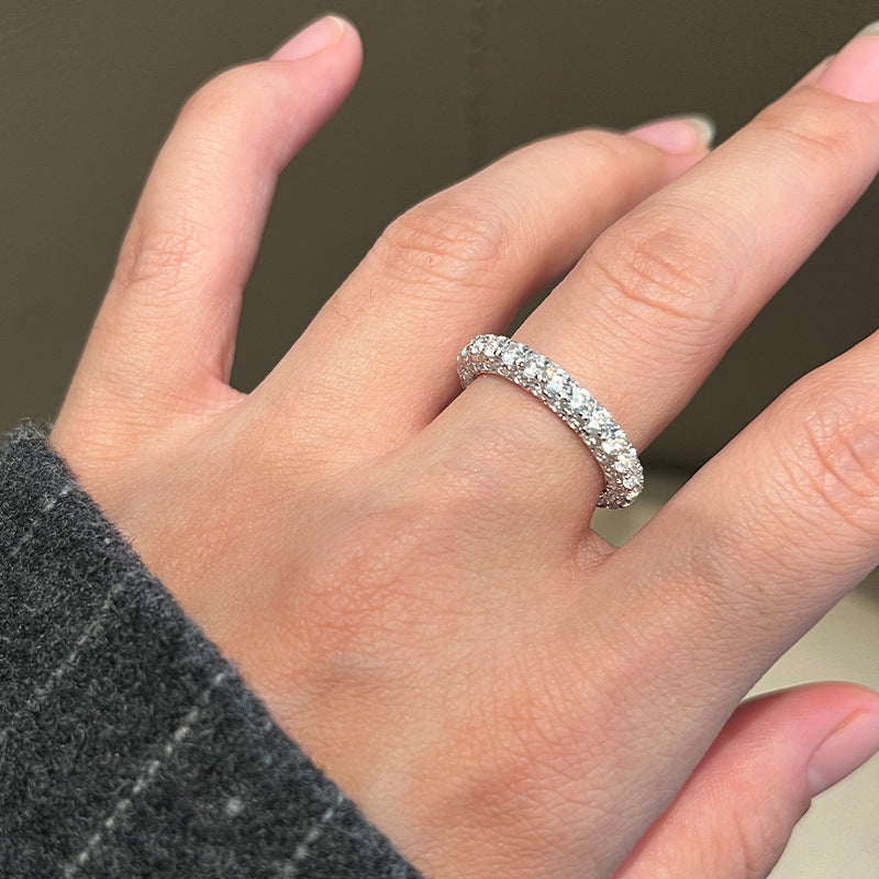 Seiko S925 sterling silver three-sided diamond high-end sense 18k gold full circle diamond women's ring is niche light luxury