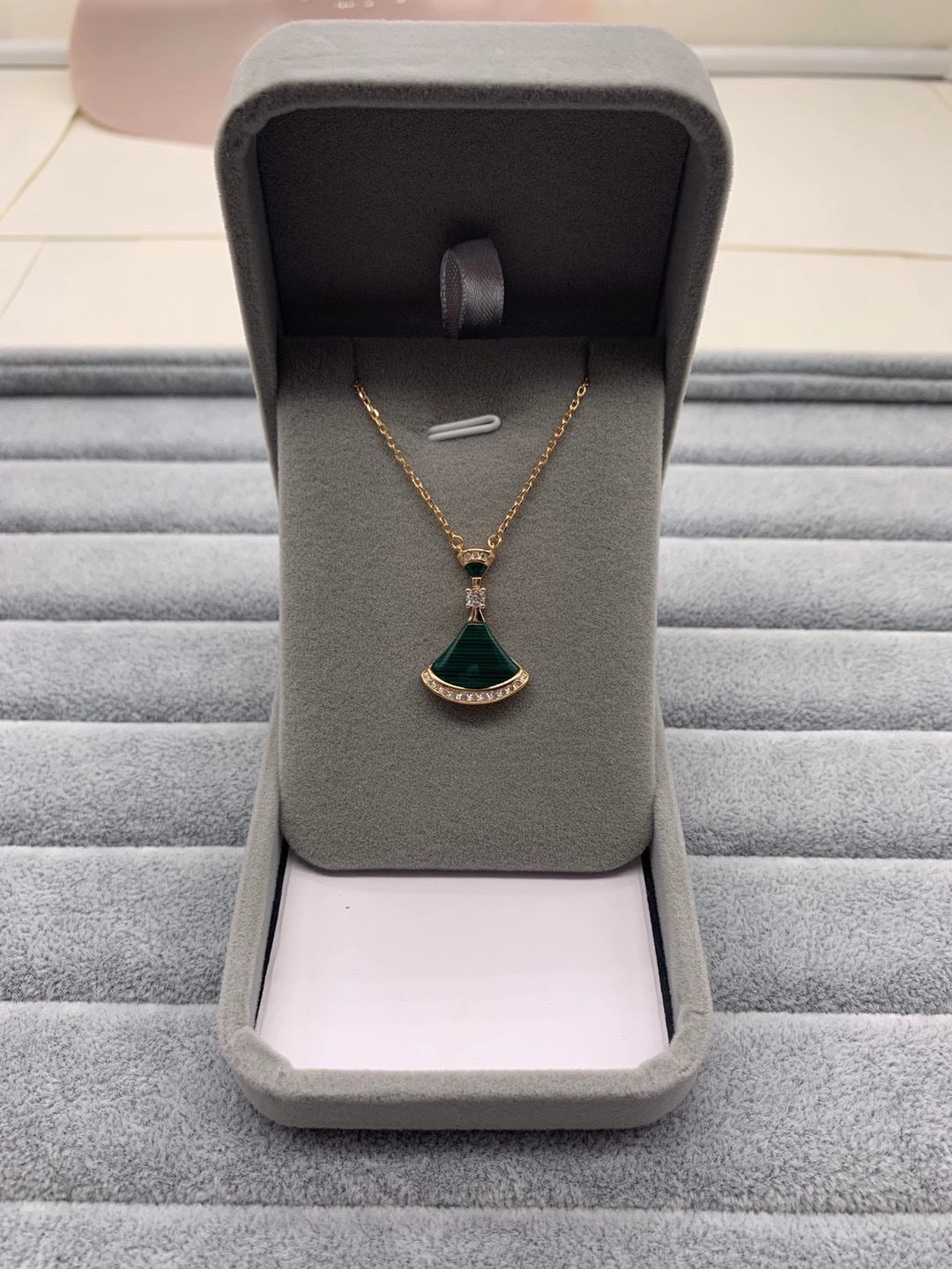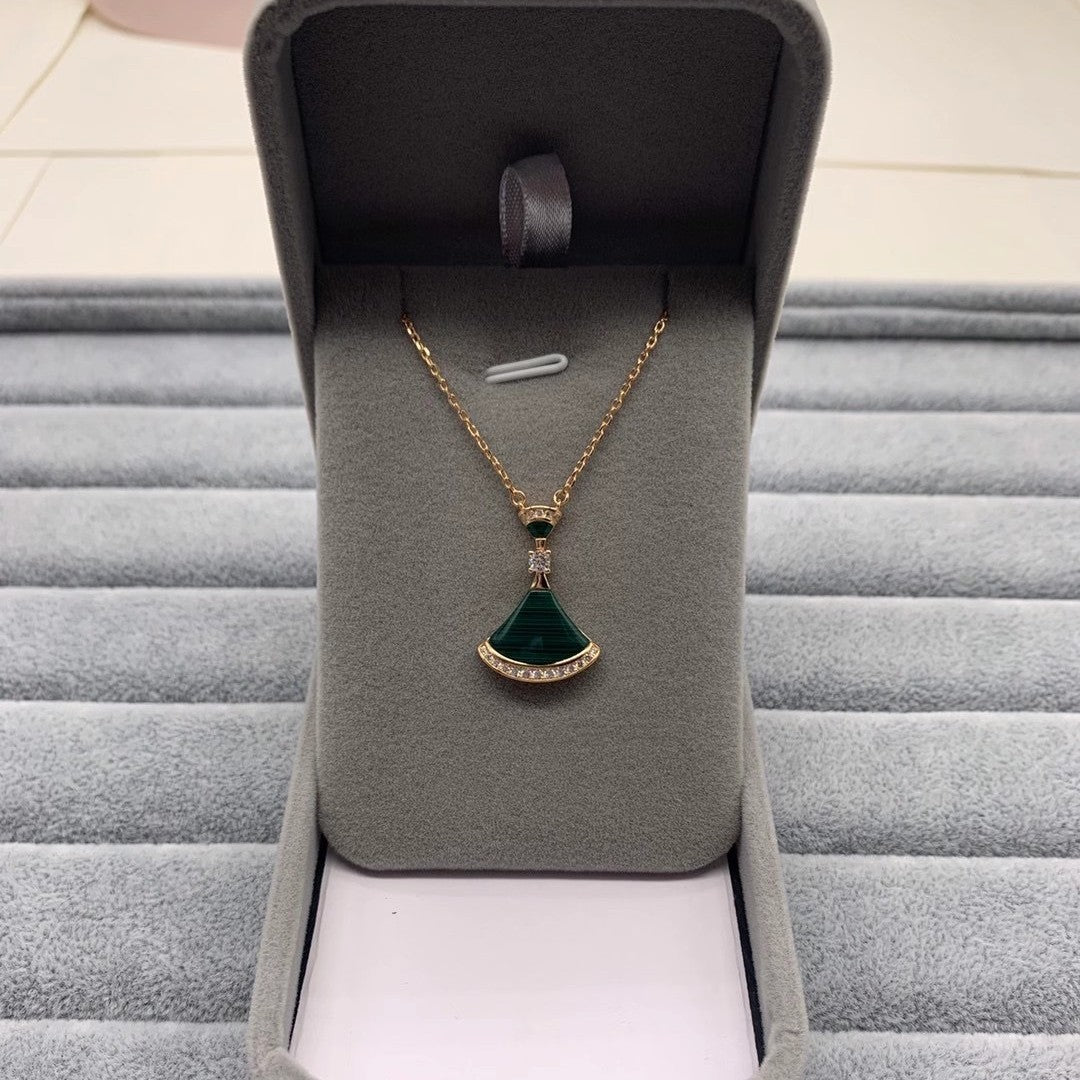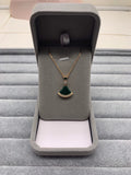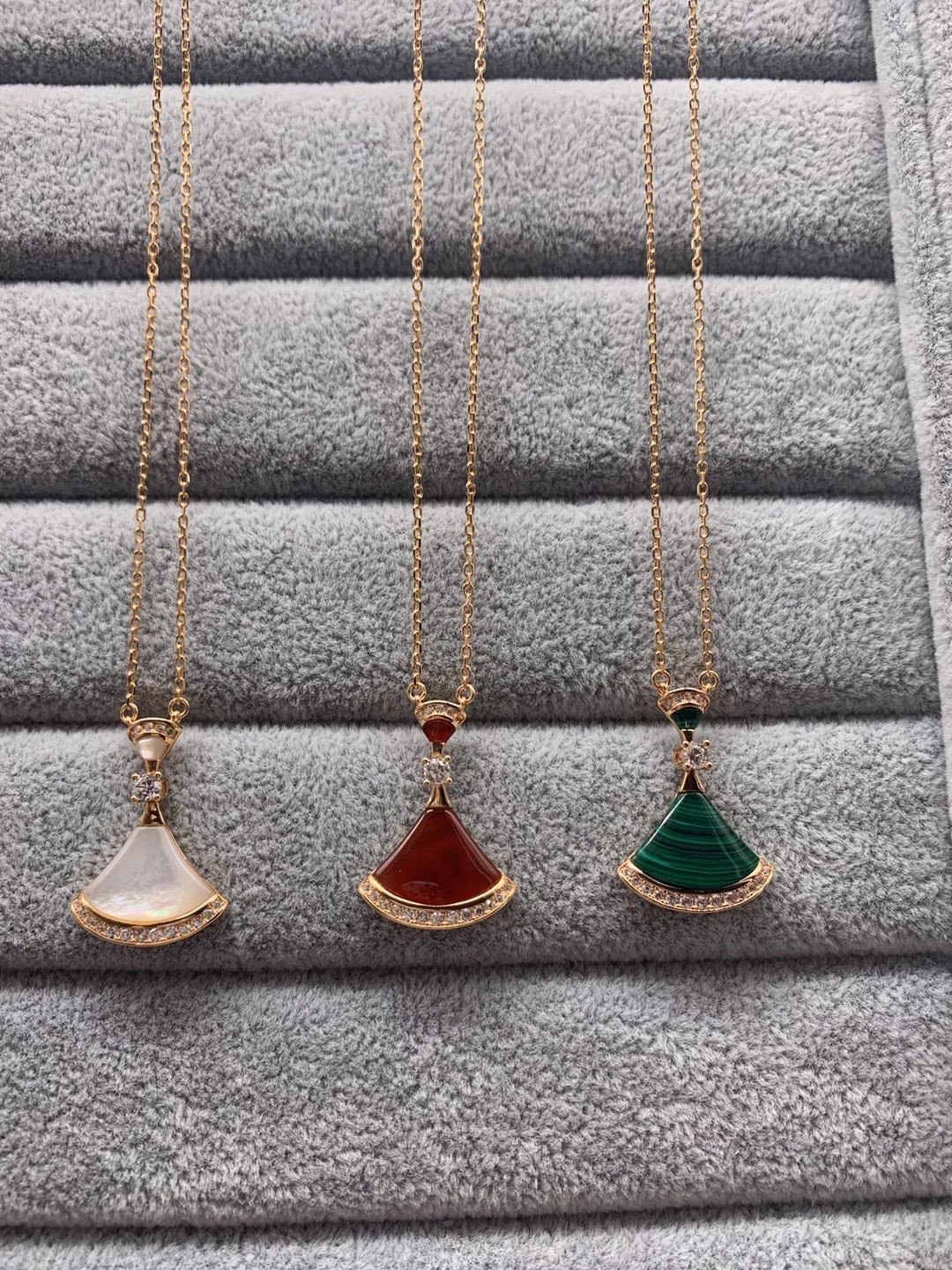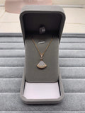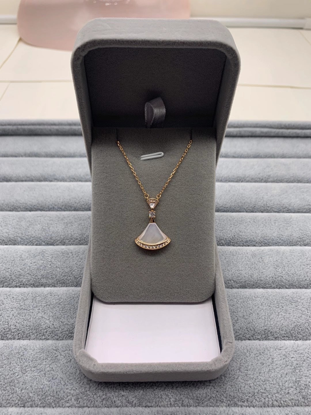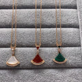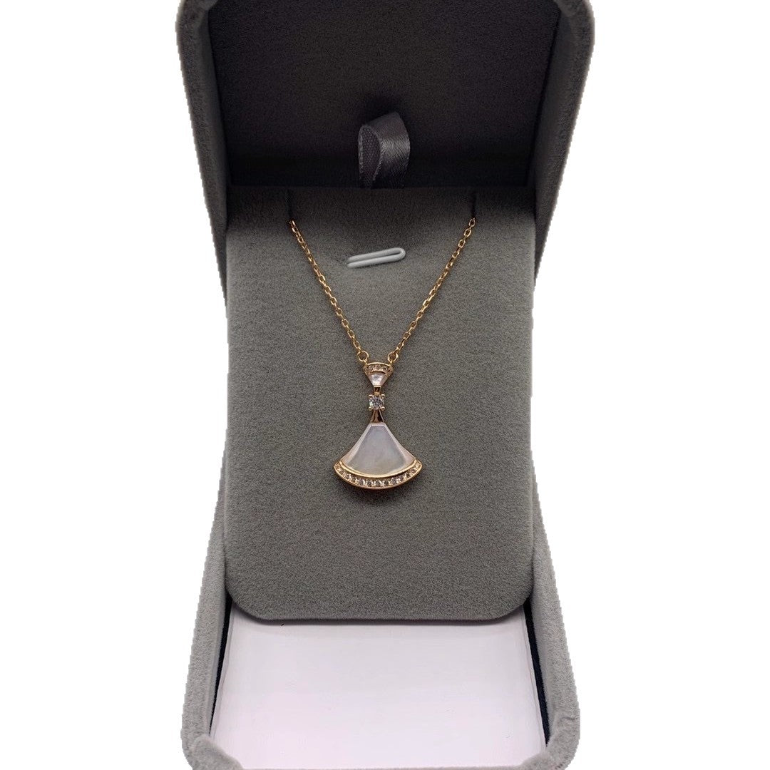 Seiko version V gold fan pendant Qixi Festival skirt necklace female white fritillary chalcedony 18k rose gold collarbone chain