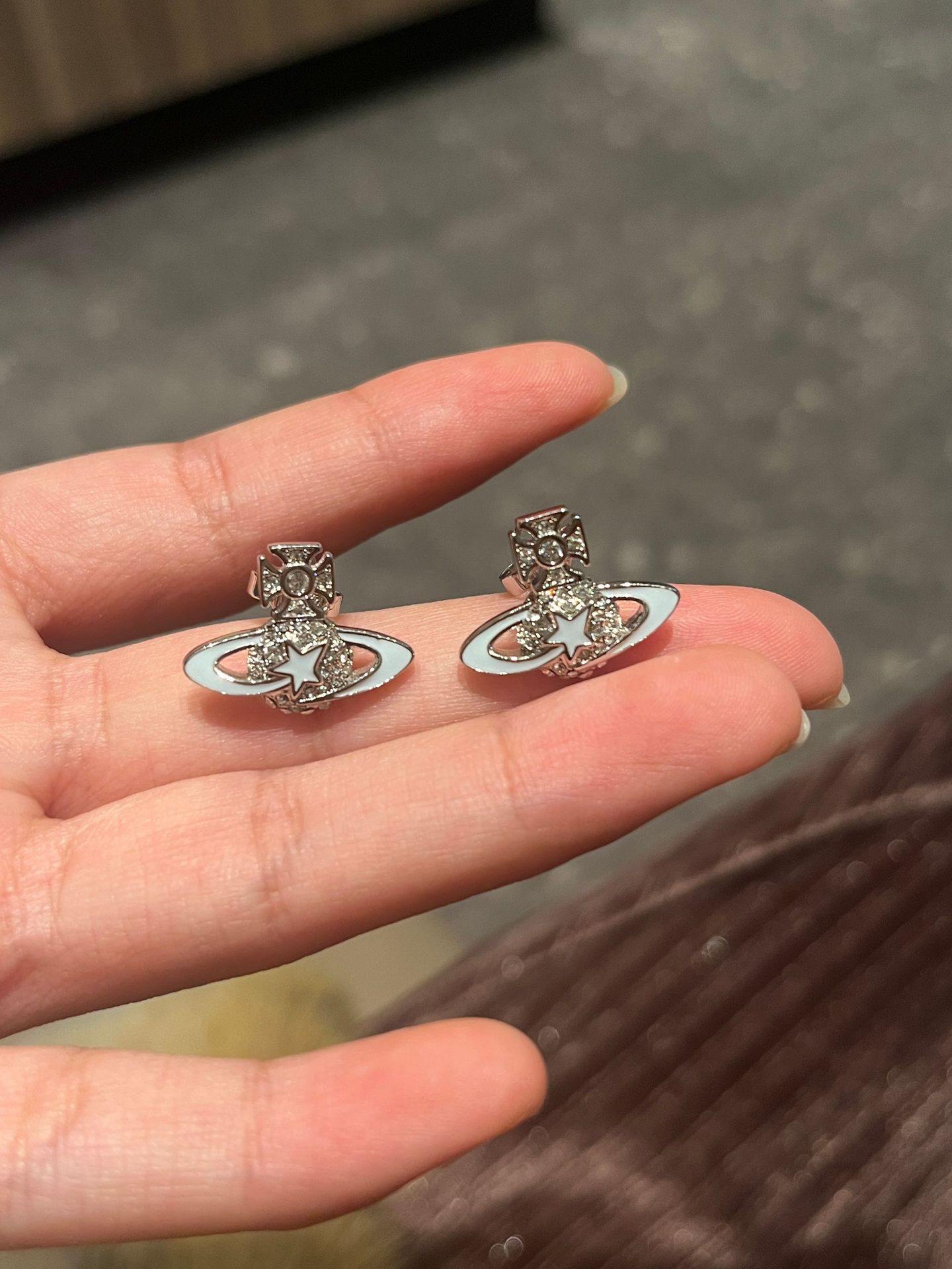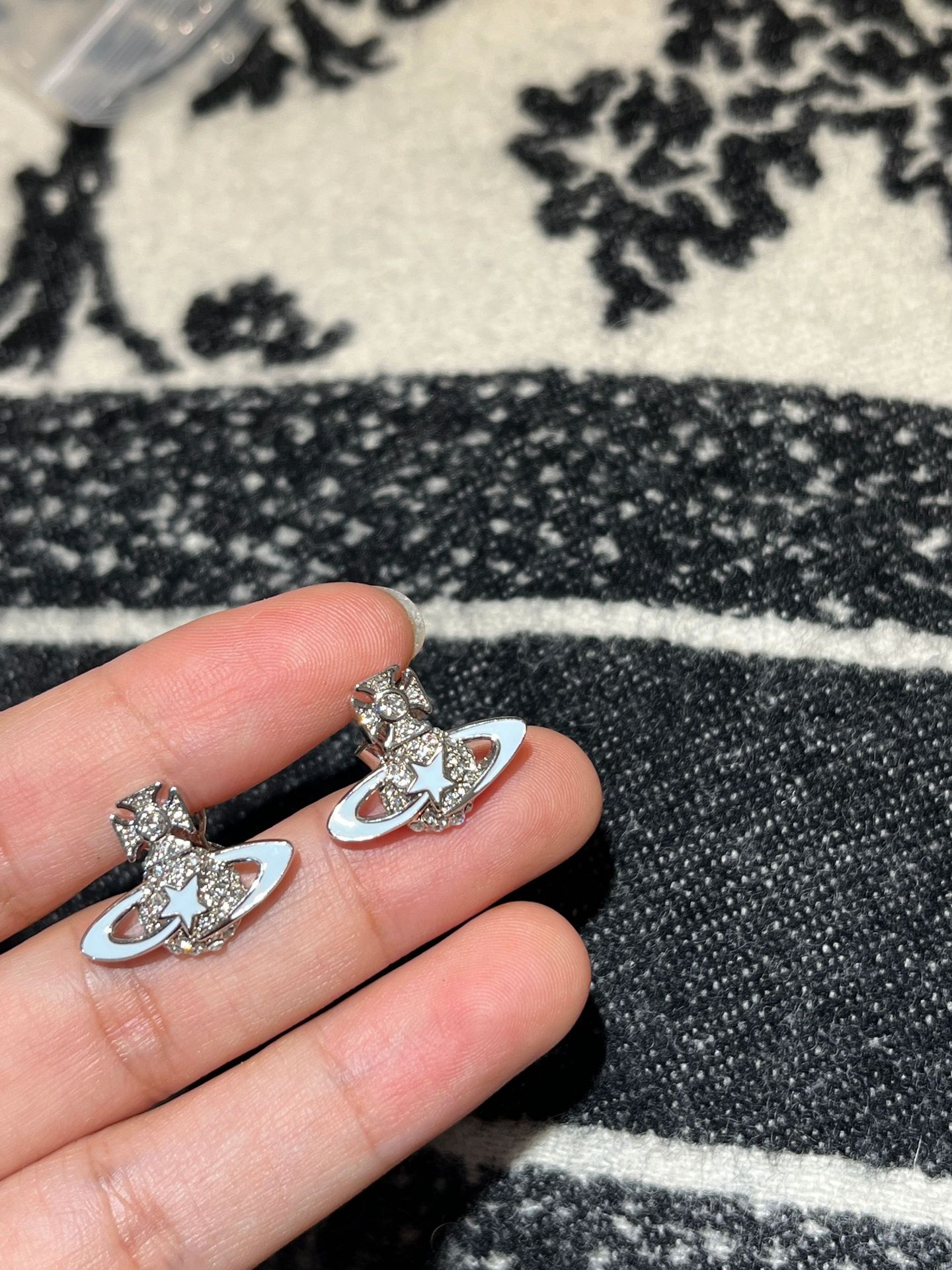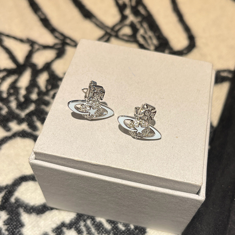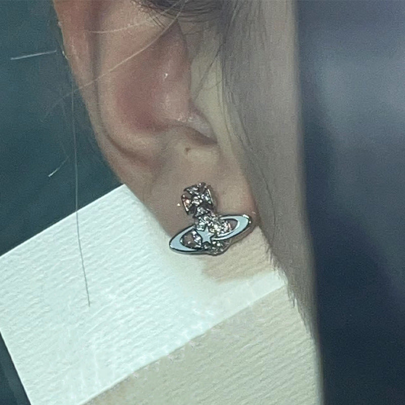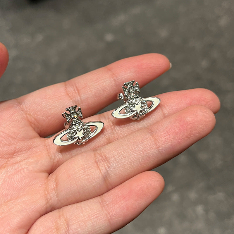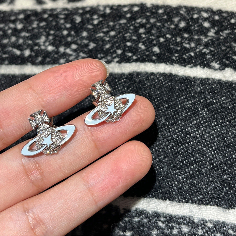 Seiko West Queen Mother Blue White Star Meteor Pentagram Star Stud Earrings Full Diamond Saturn Planet Sweet Cool Wind Earrings
