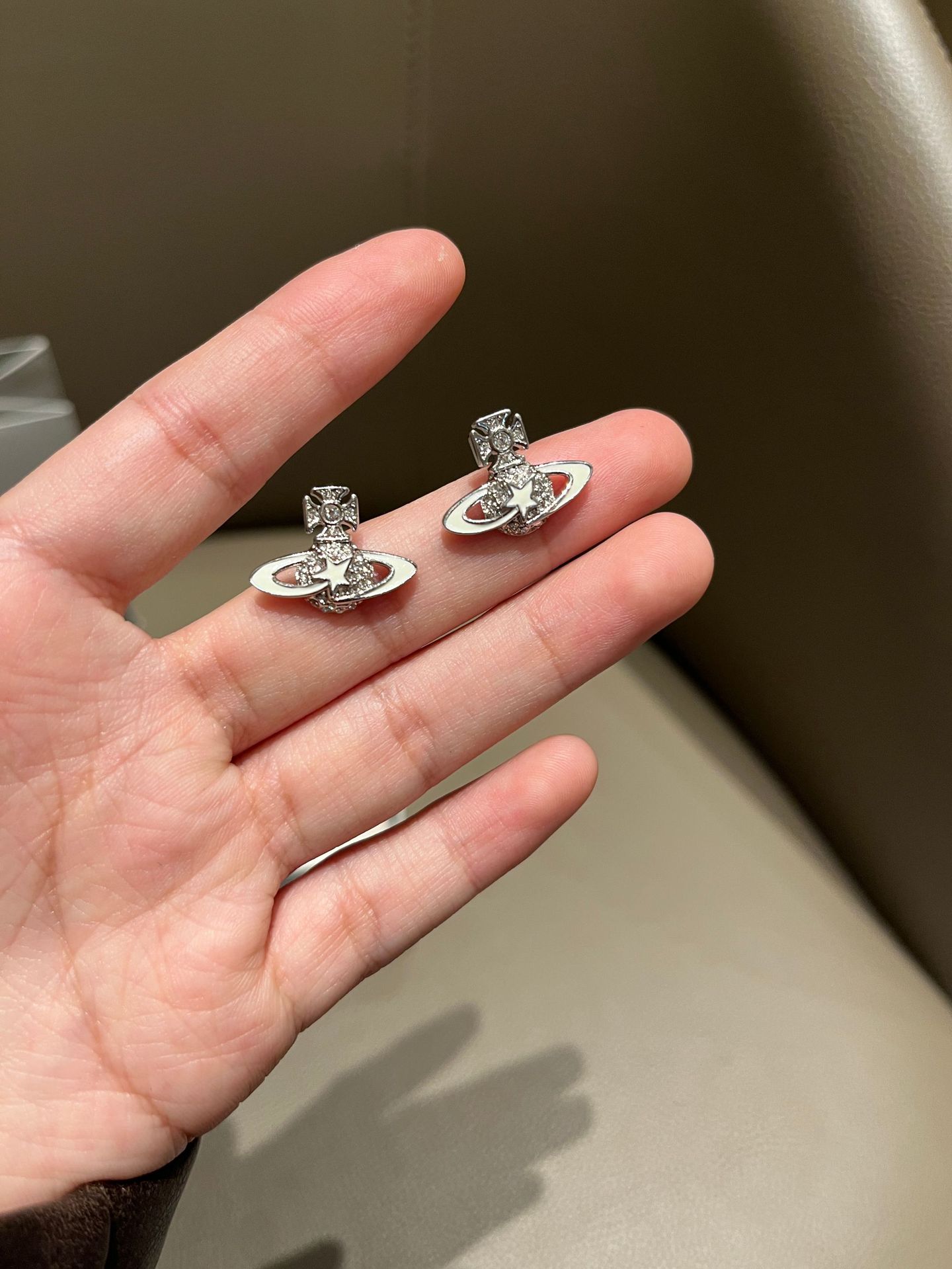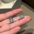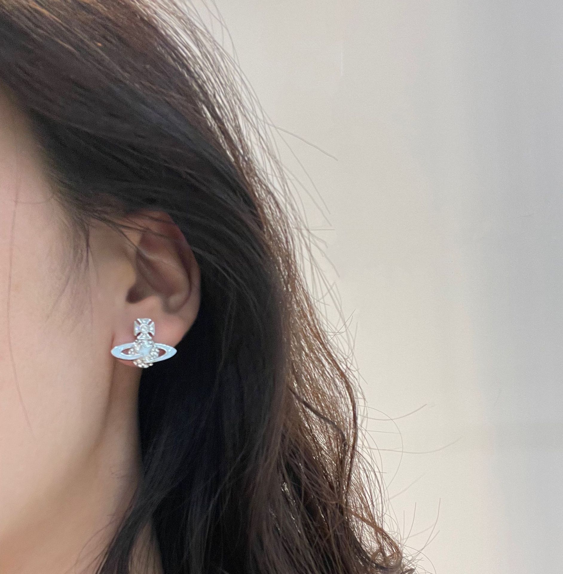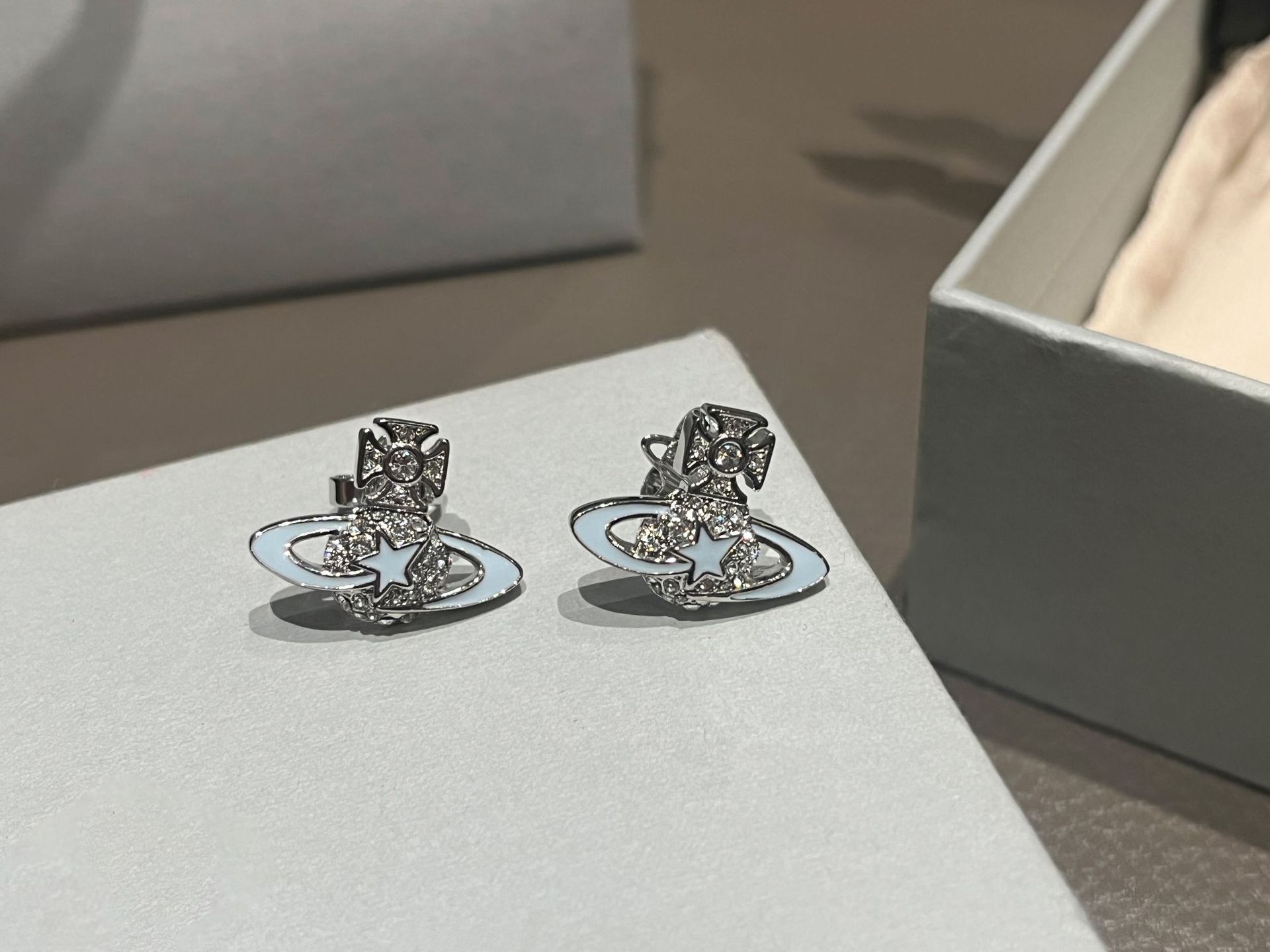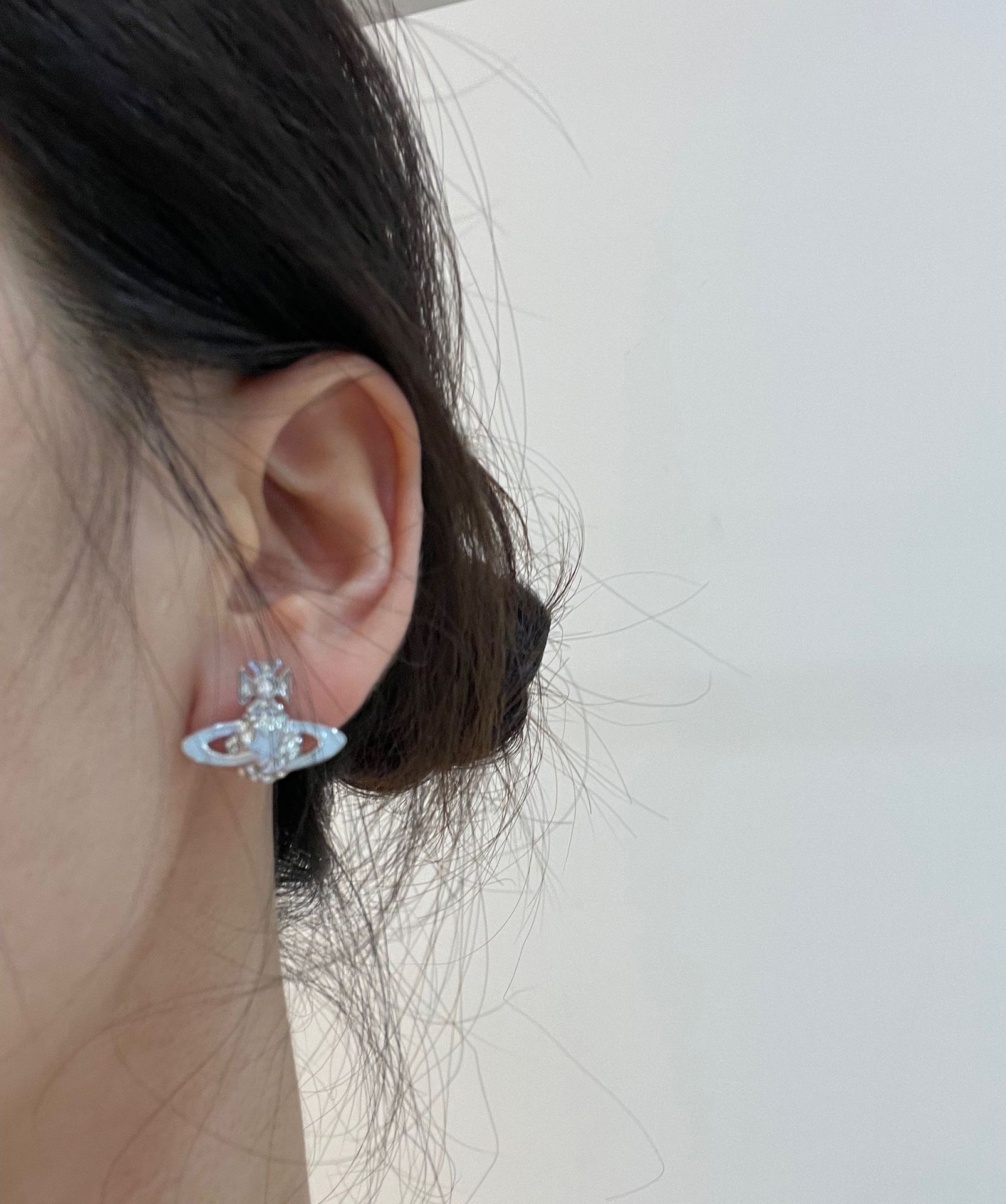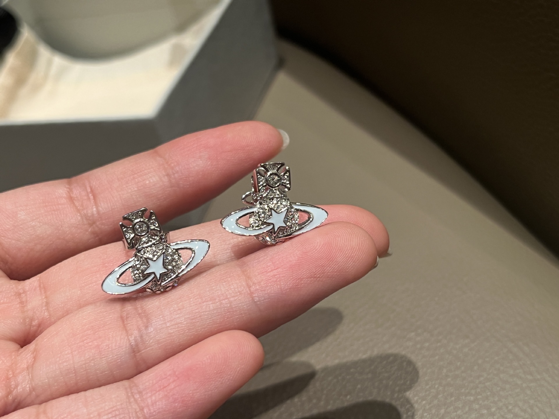 Seiko West Queen Mother Blue White Star Meteor Pentagram Star Stud Earrings Full Diamond Saturn Planet Sweet Cool Wind Earrings