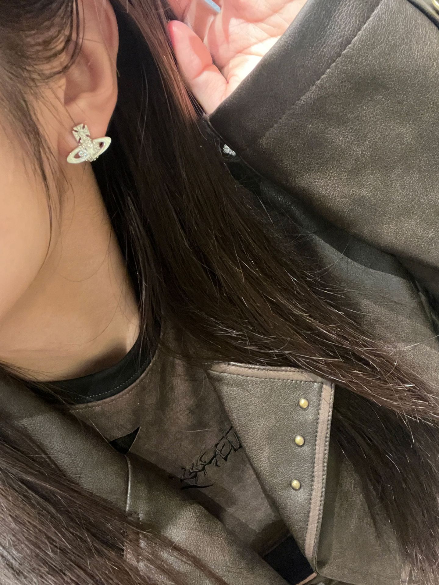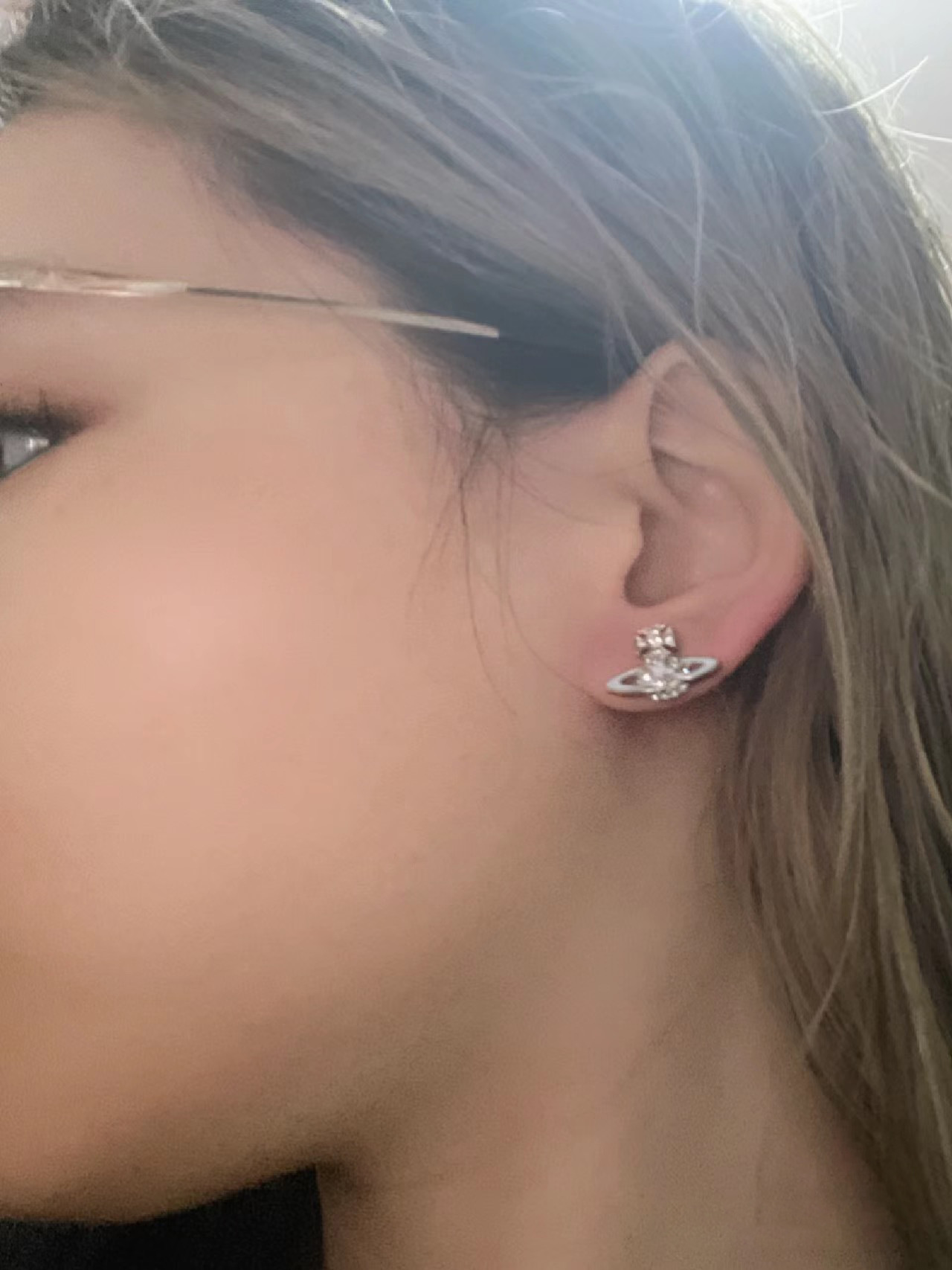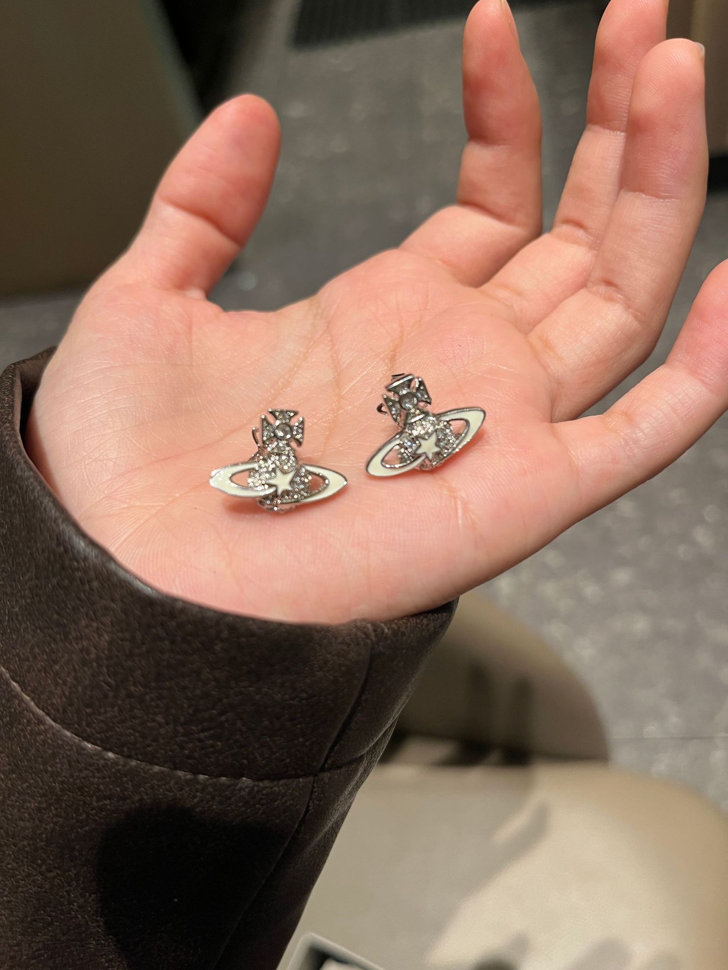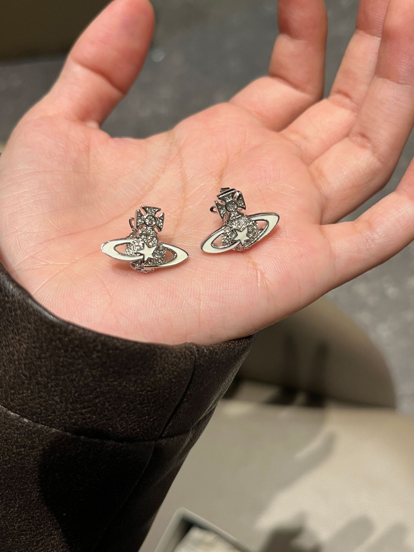 Seiko West Queen Mother Blue White Star Meteor Pentagram Star Stud Earrings Full Diamond Saturn Planet Sweet Cool Wind Earrings