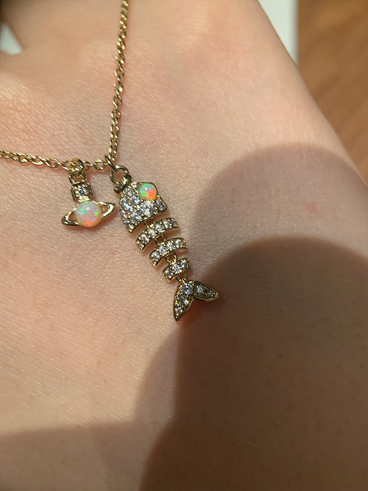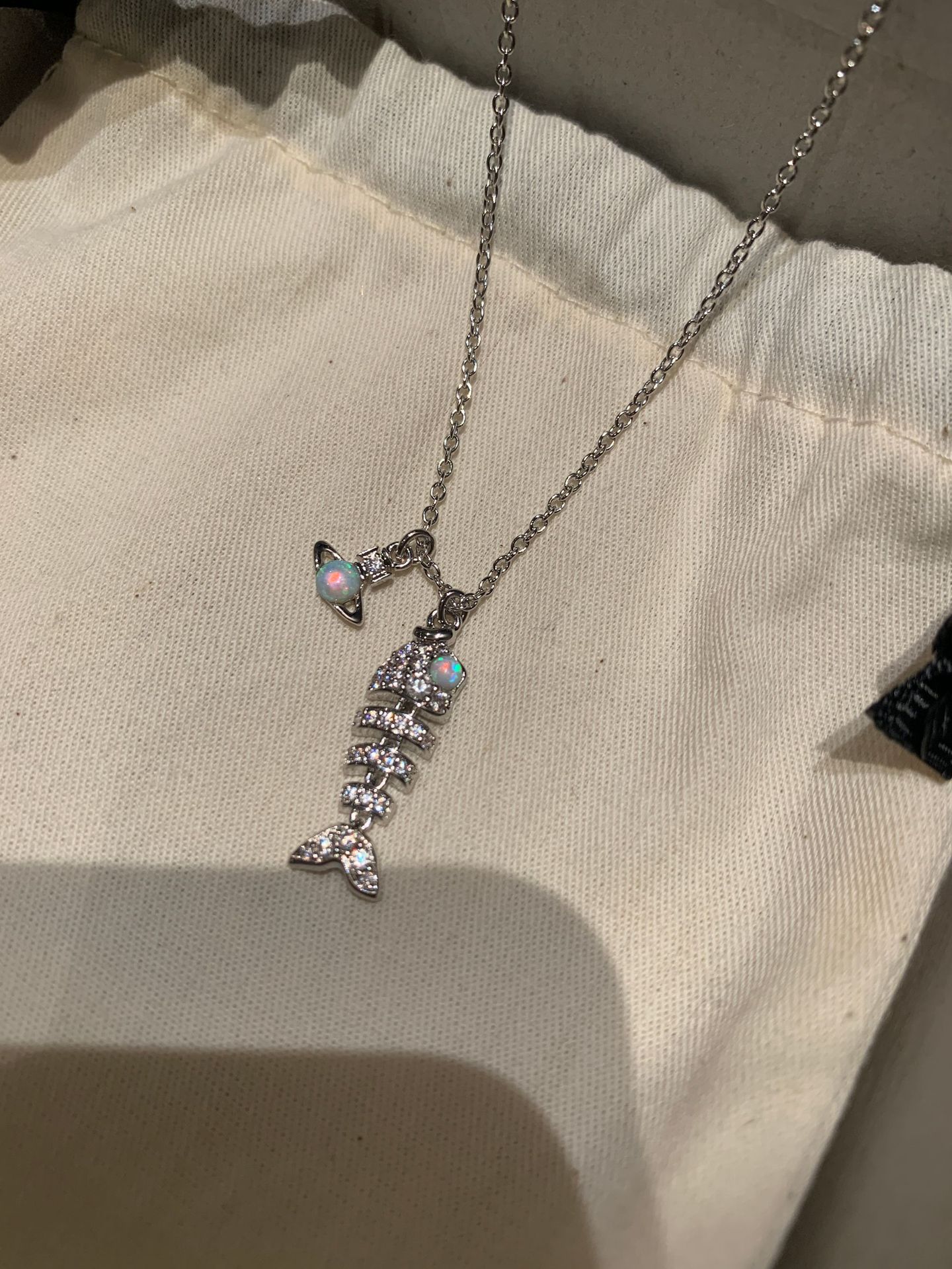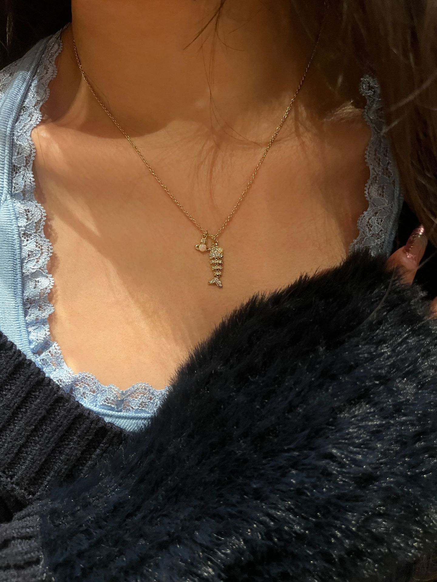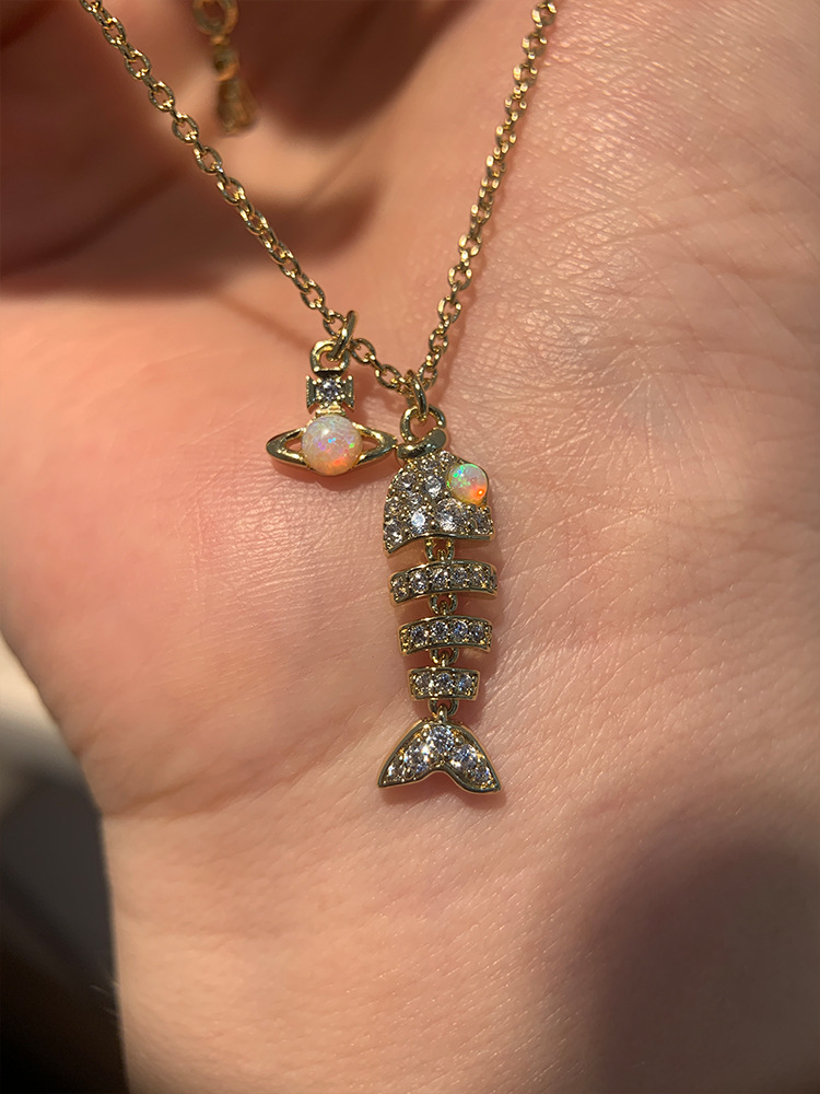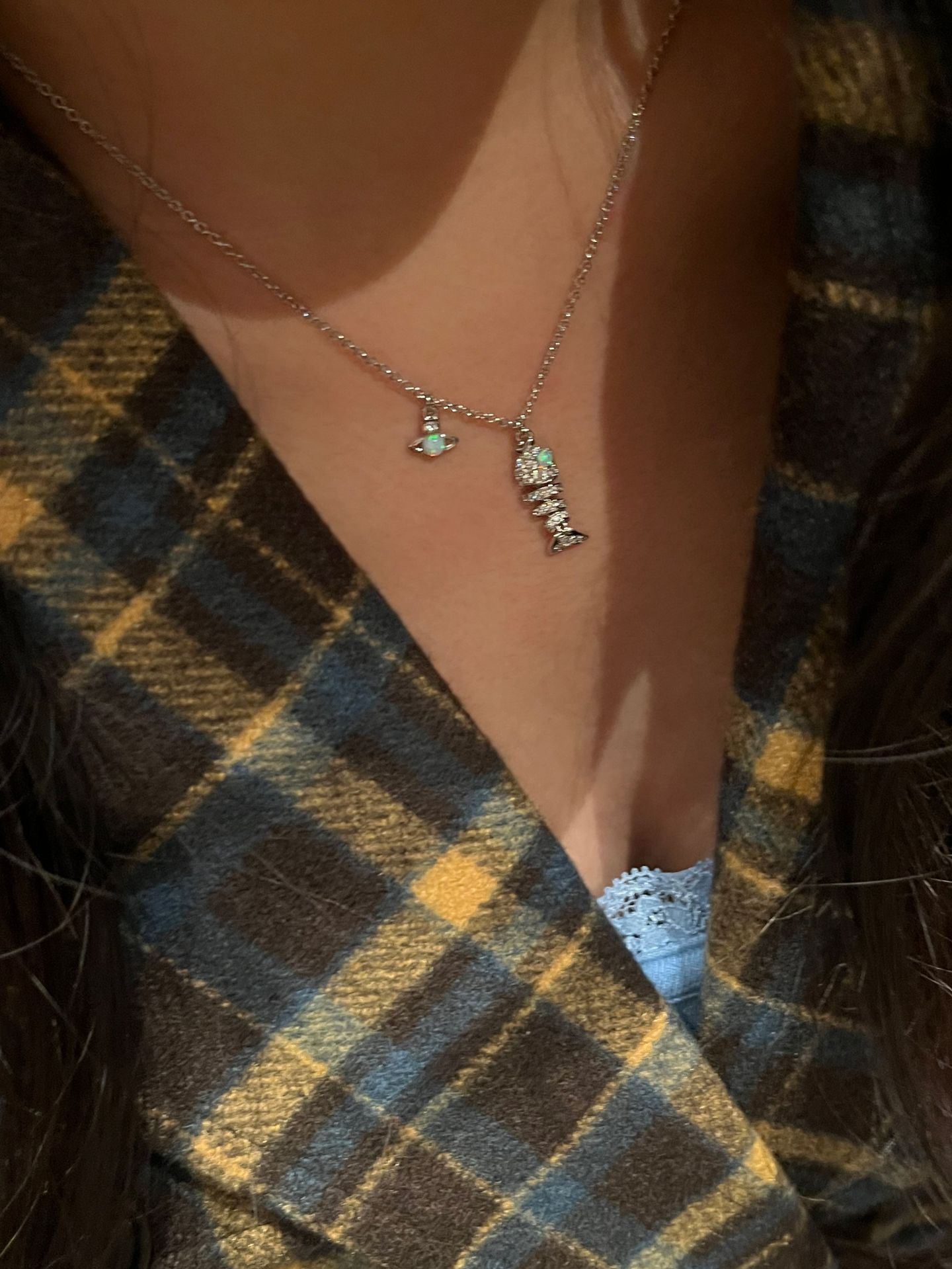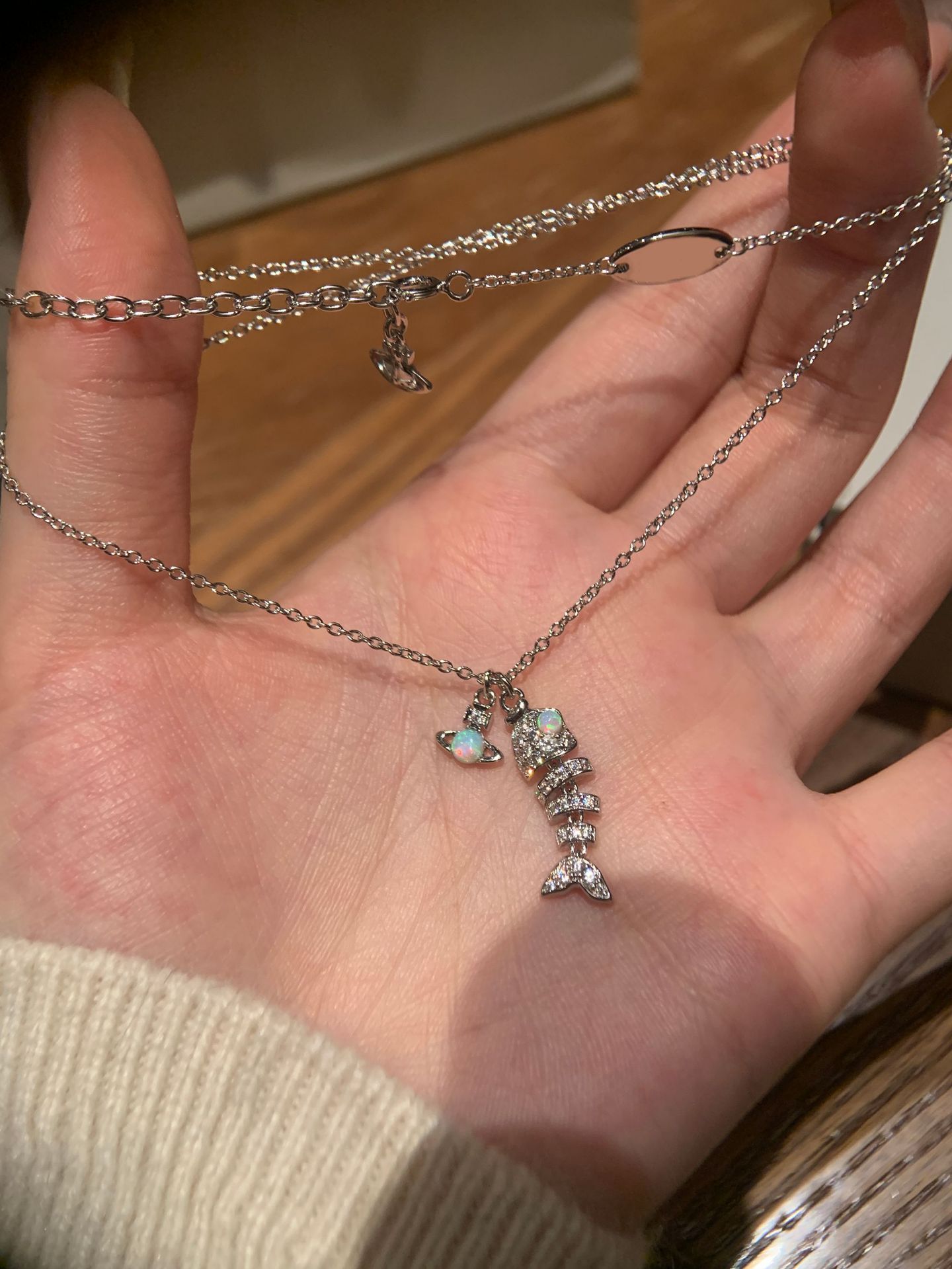 Seiko West Queen Mother Fishbone Saturn Necklace Full of Diamonds Smart Small Fish Bone Opal Stone Clavicle Chain New Necklace