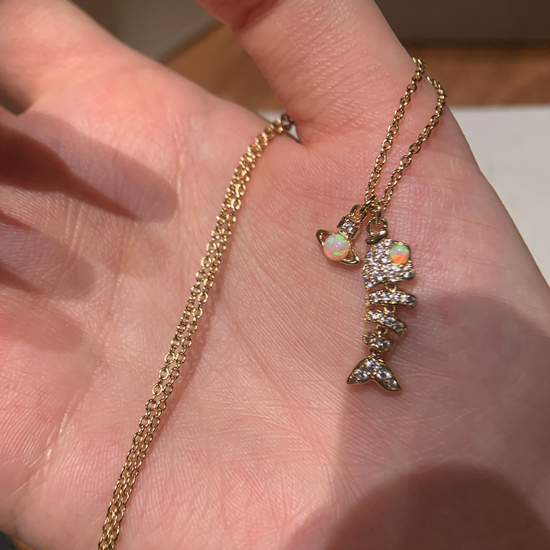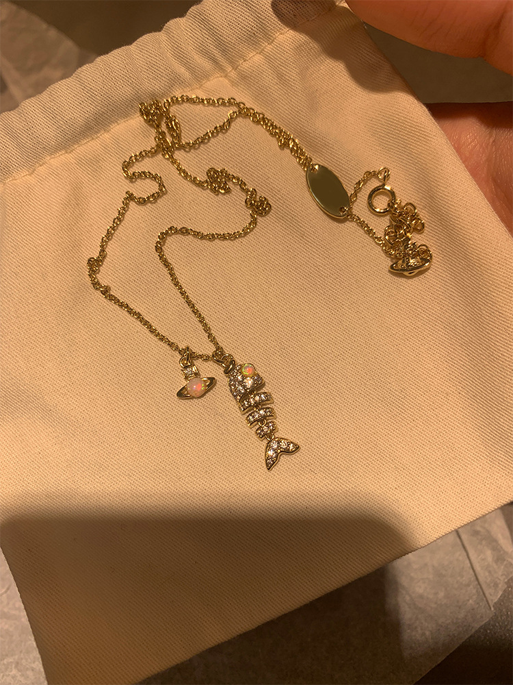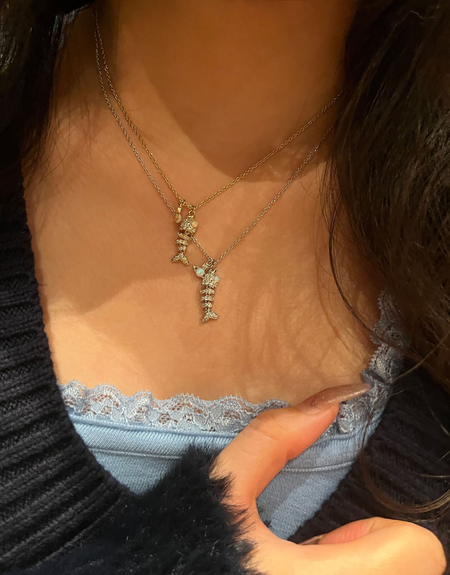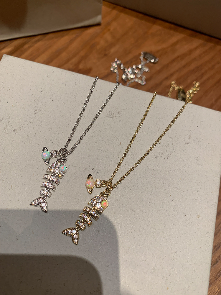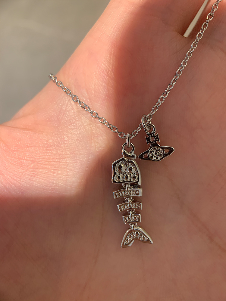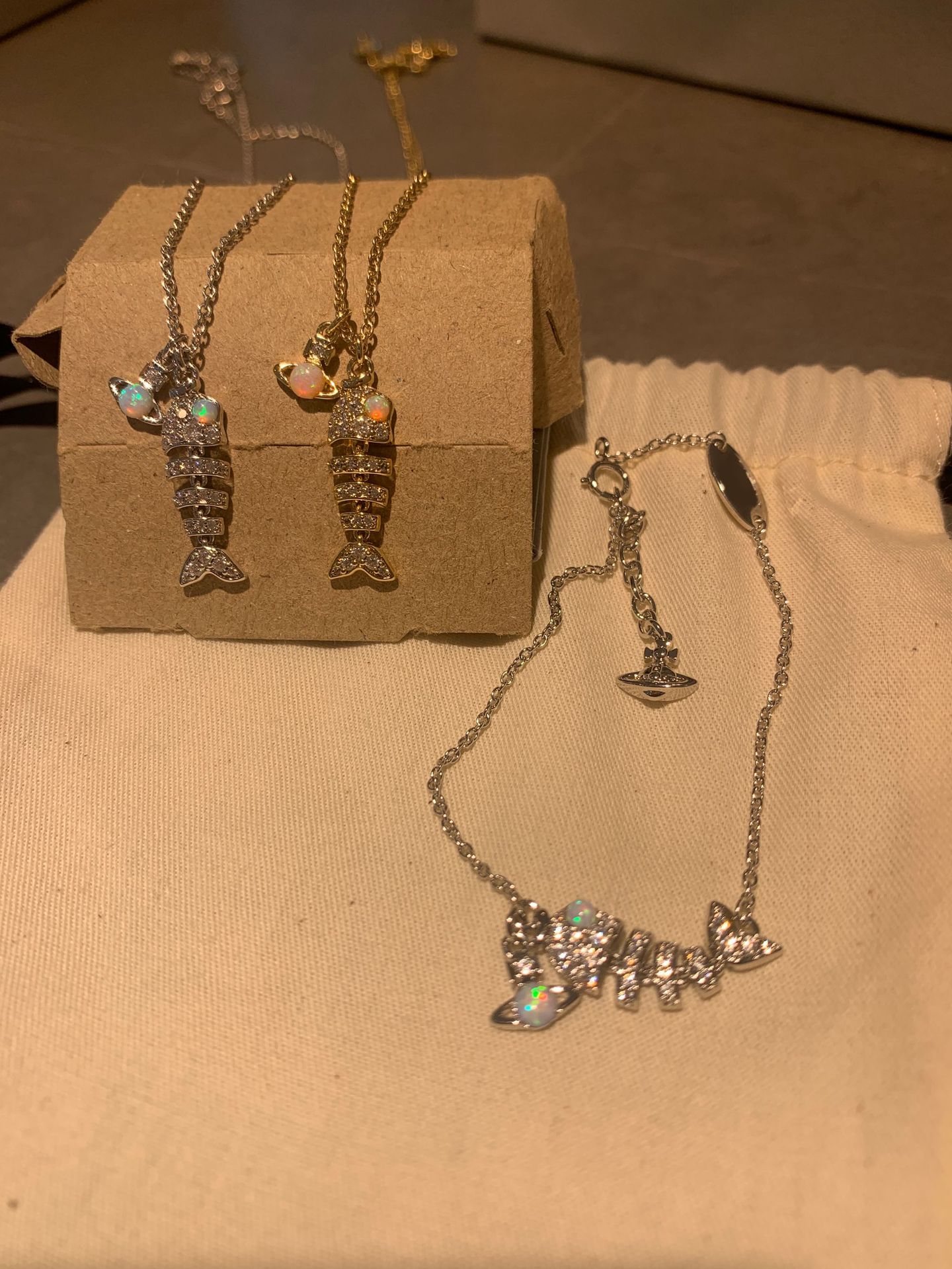 Seiko West Queen Mother Fishbone Saturn Necklace Full of Diamonds Smart Small Fish Bone Opal Stone Clavicle Chain New Necklace