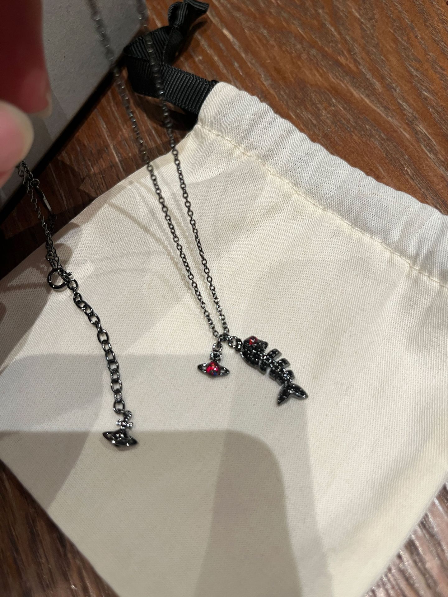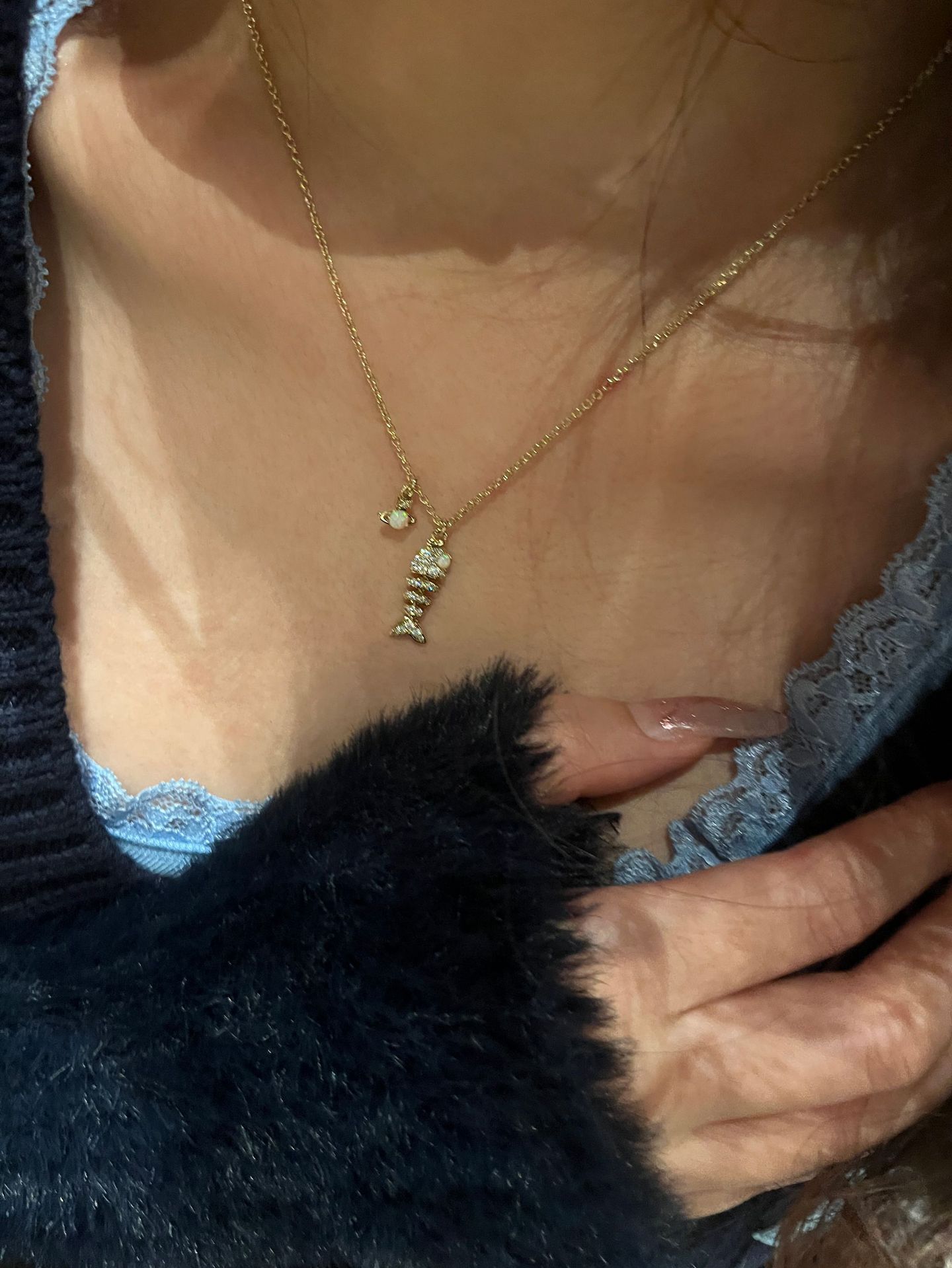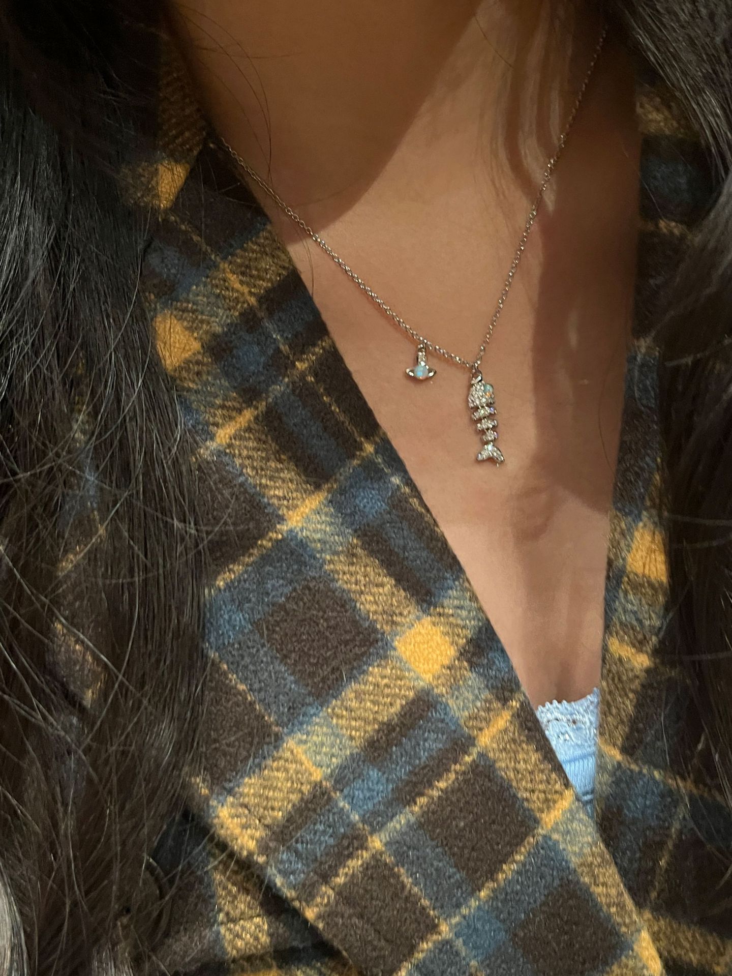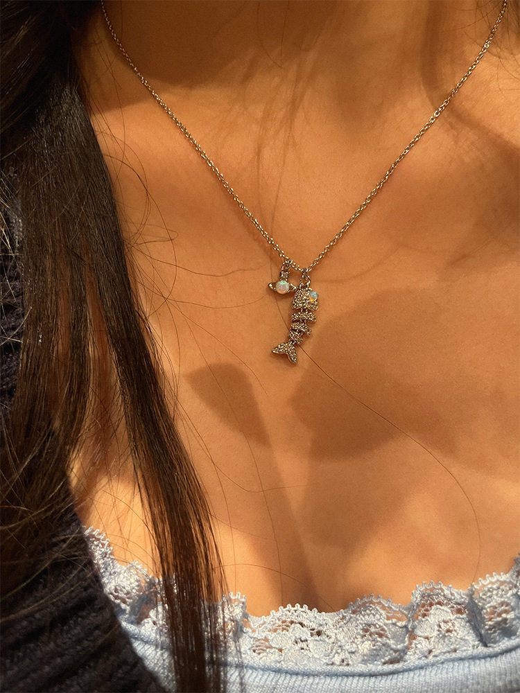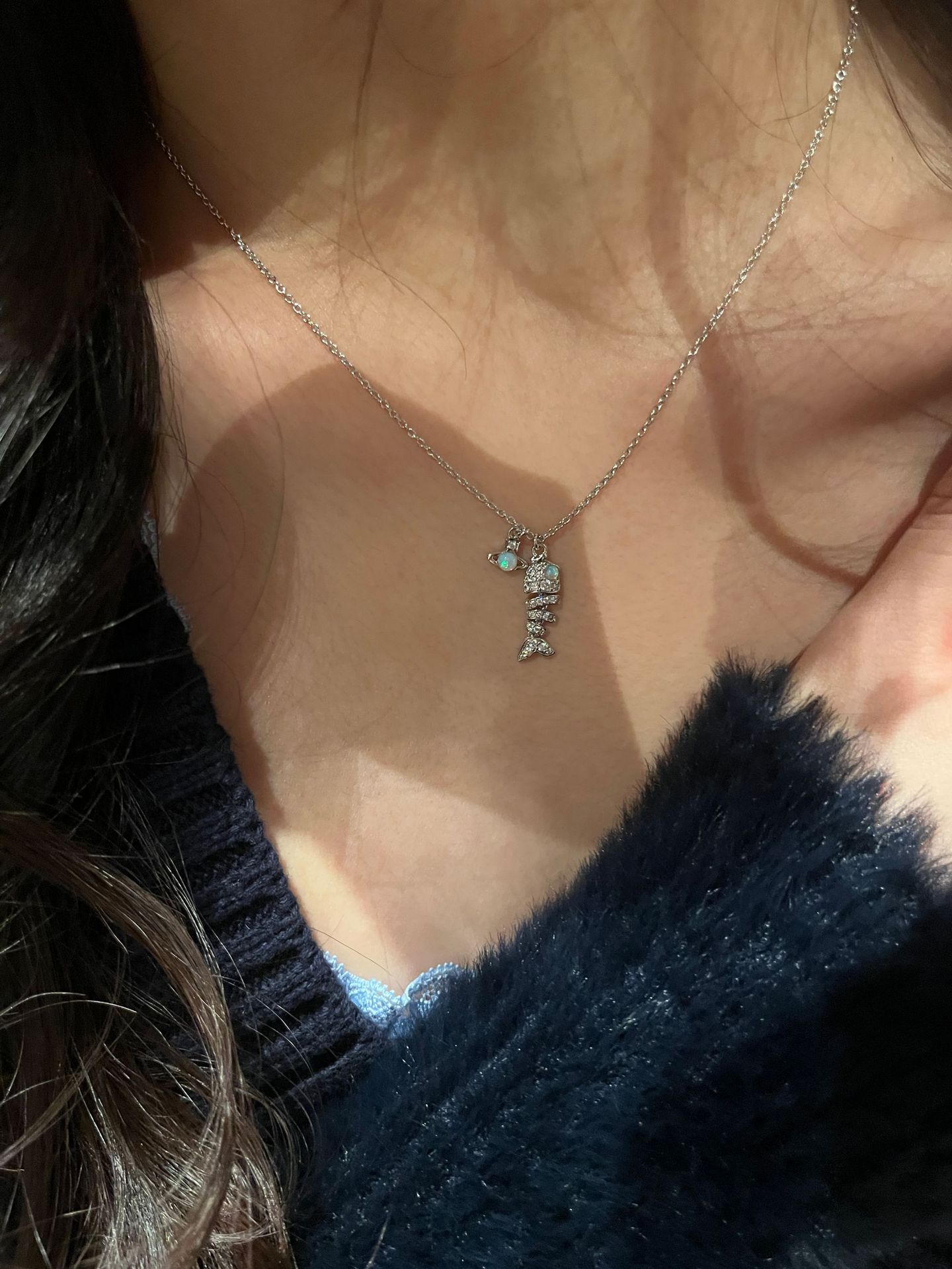 Seiko West Queen Mother Fishbone Saturn Necklace Full of Diamonds Smart Small Fish Bone Opal Stone Clavicle Chain New Necklace