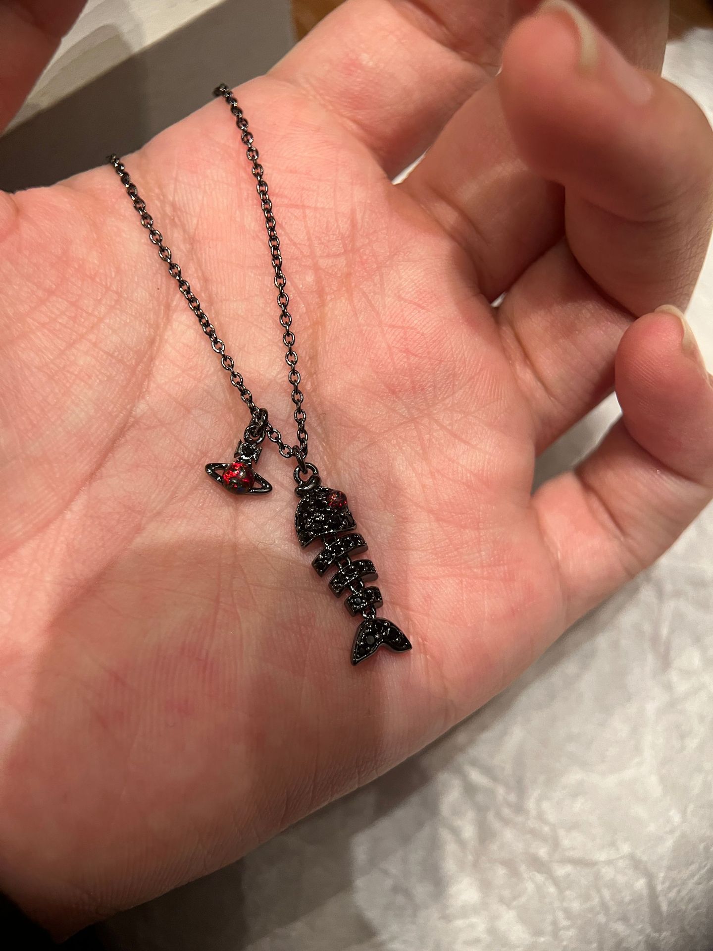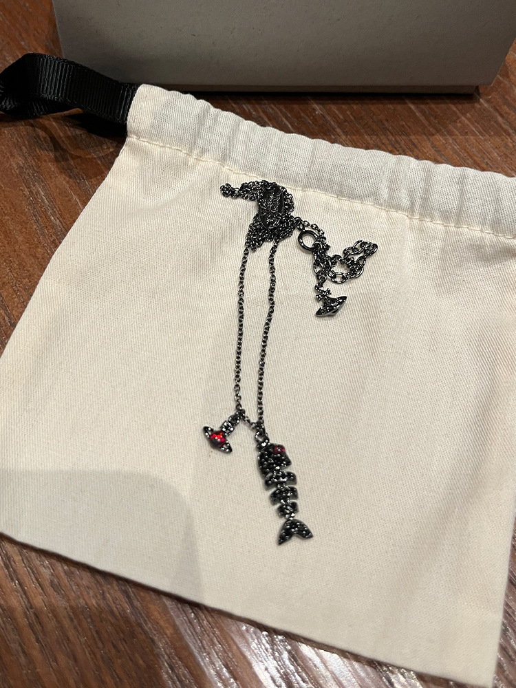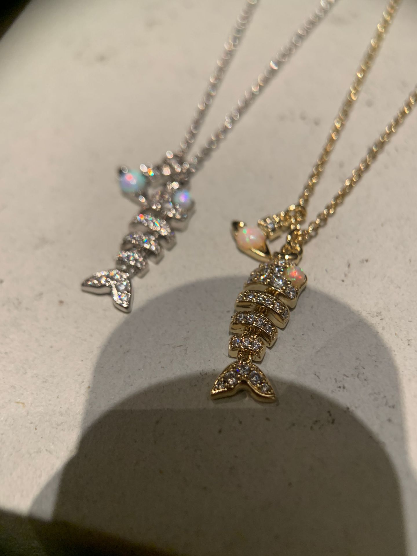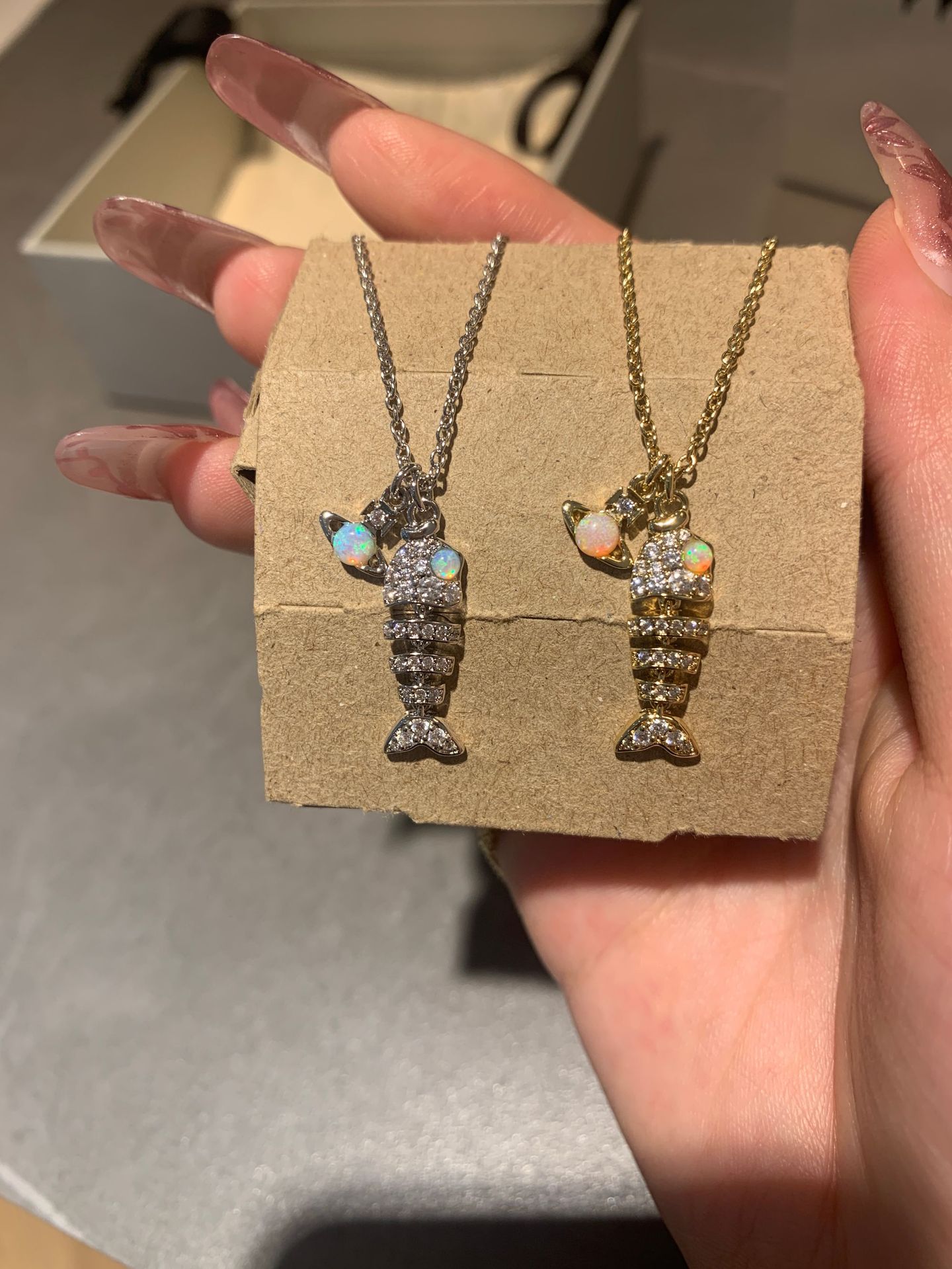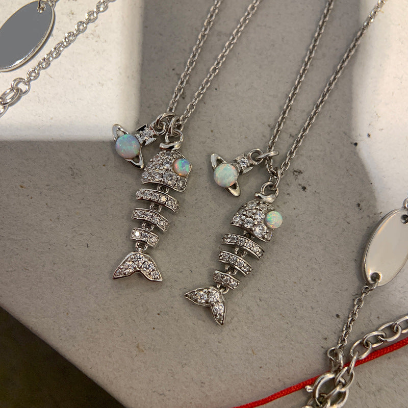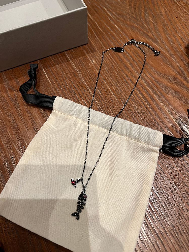 Seiko West Queen Mother Fishbone Saturn Necklace Full of Diamonds Smart Small Fish Bone Opal Stone Clavicle Chain New Necklace