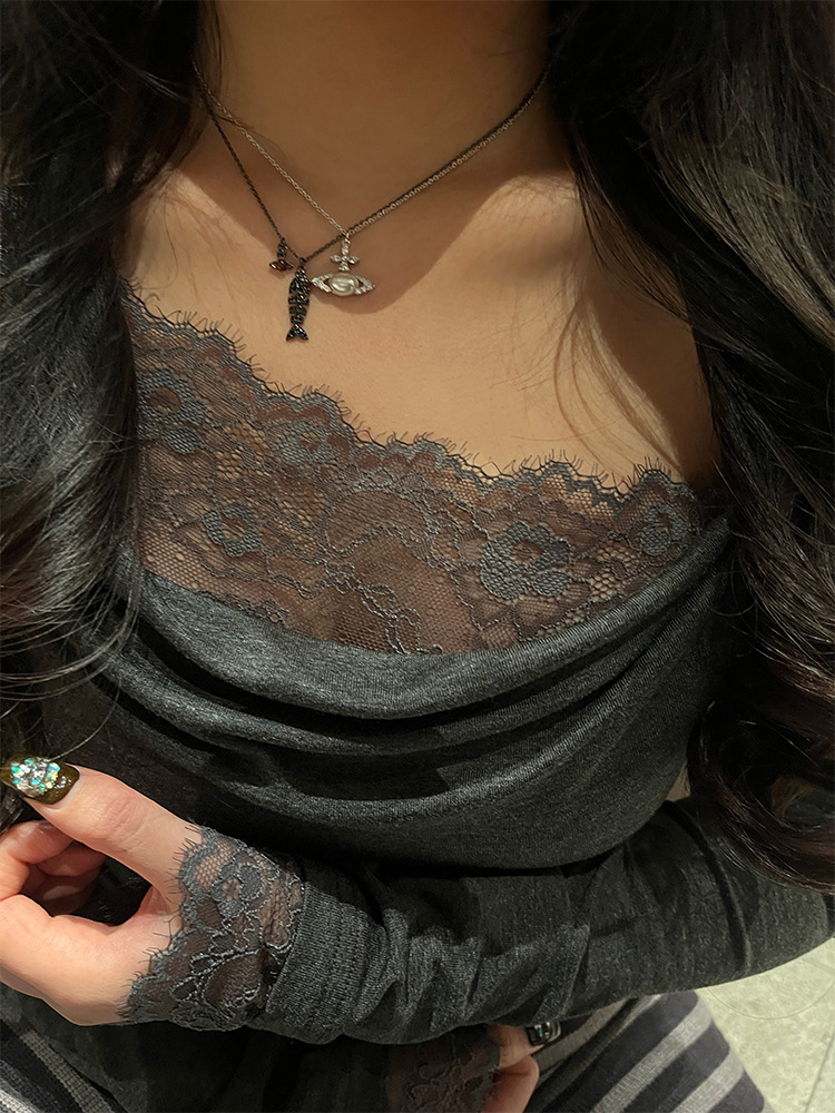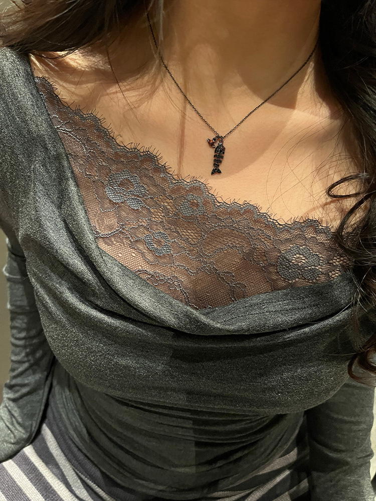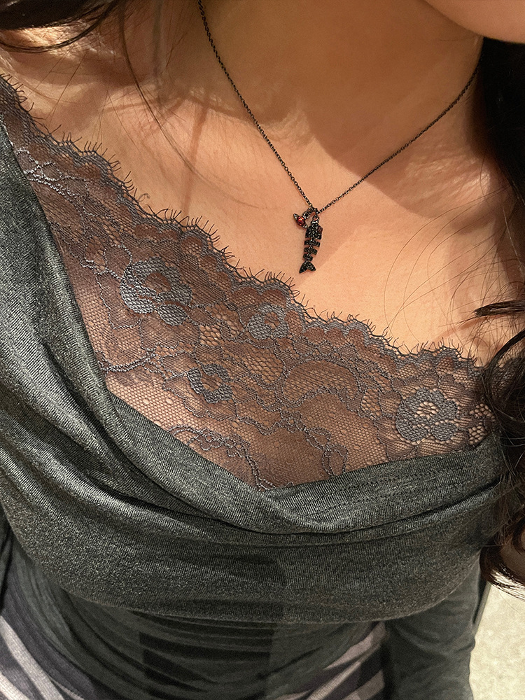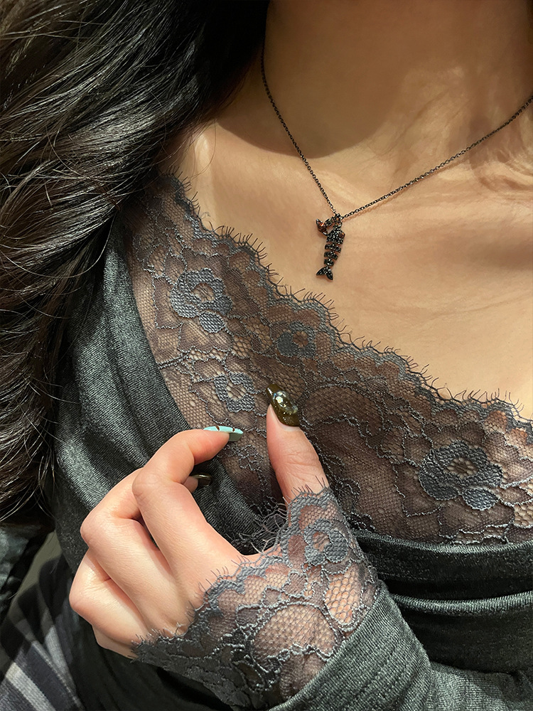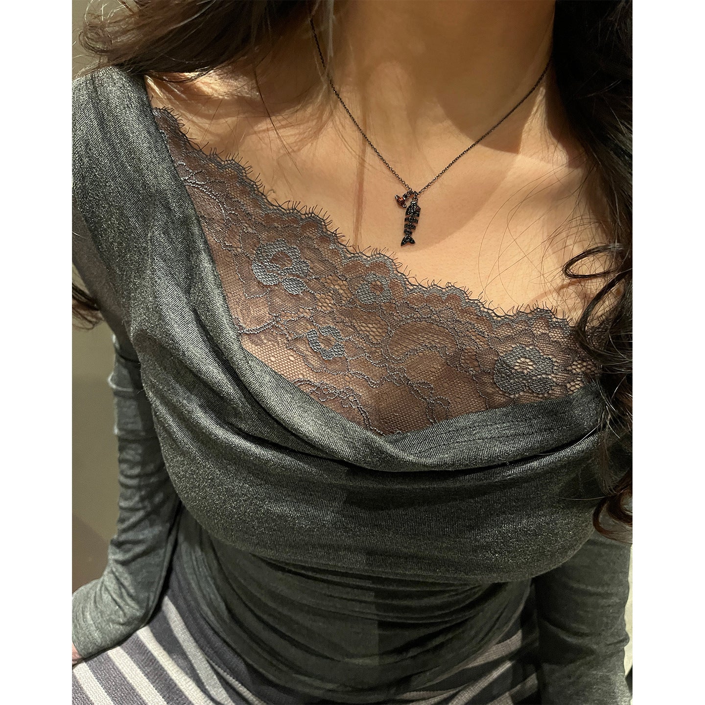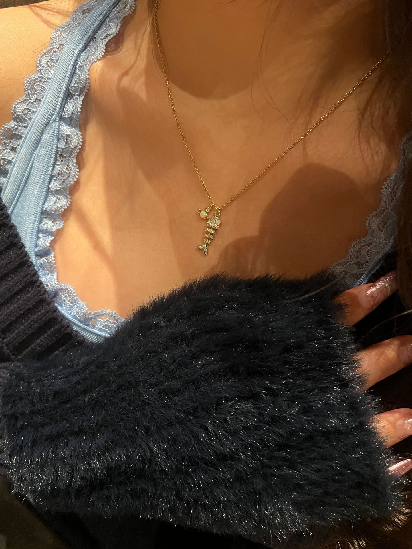 Seiko West Queen Mother Fishbone Saturn Necklace Full of Diamonds Smart Small Fish Bone Opal Stone Clavicle Chain New Necklace
