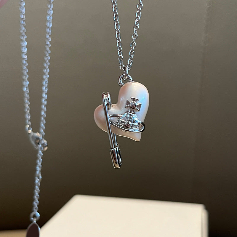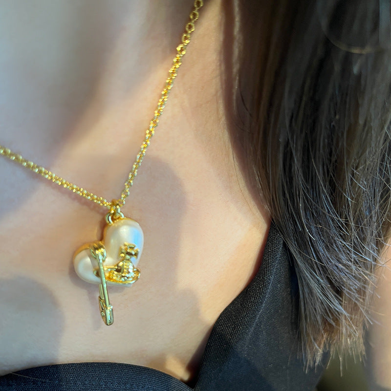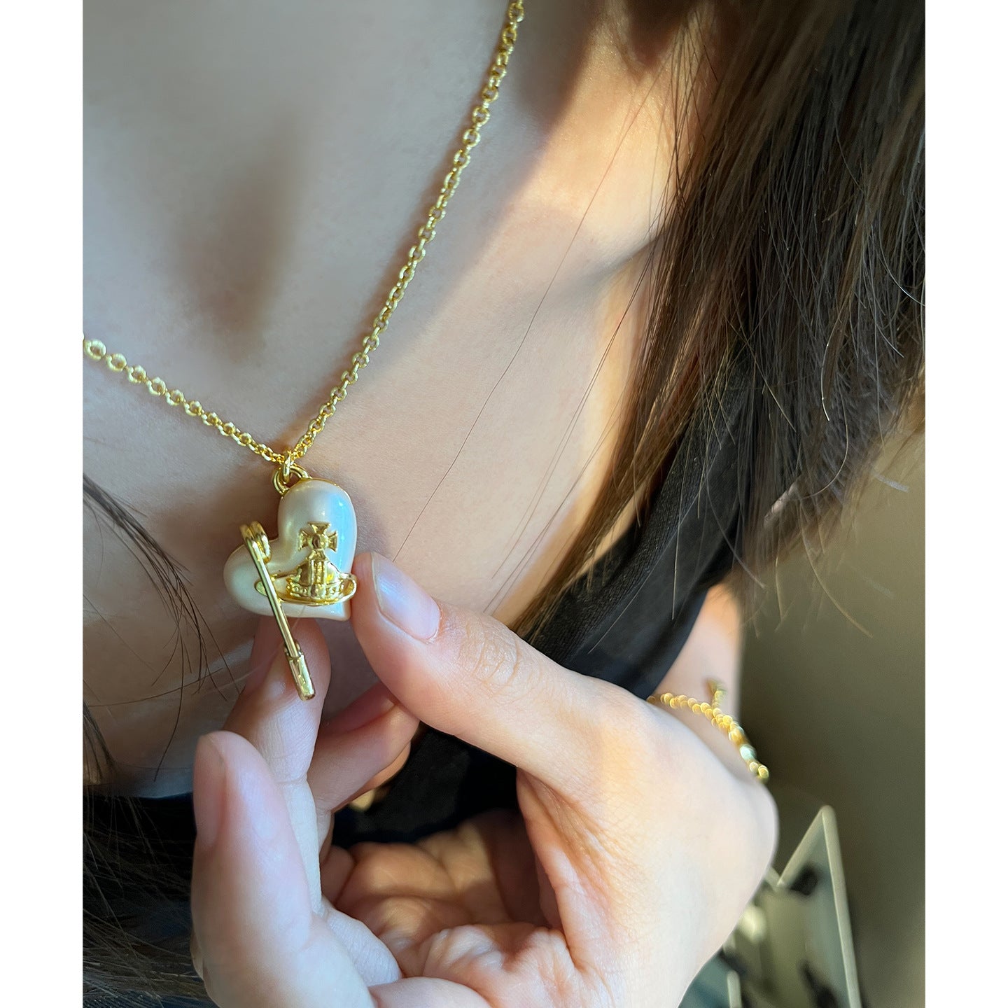 Seiko West Queen Mother love pin necklace gold silver heavy feel niche fashionable jewelry