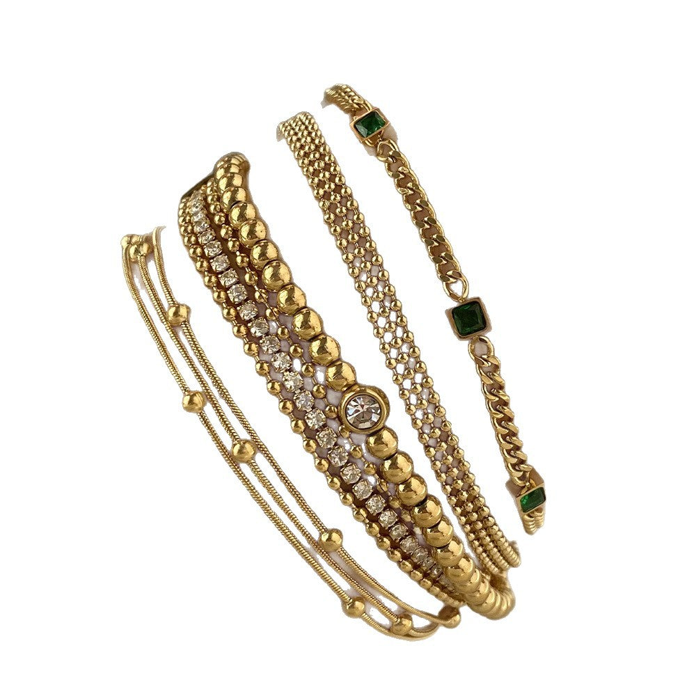 Stainless steel stacked bracelet PVD electroplated small gold bead gold chain bracelet bracelet female Dongguan Titanium Steel Jewelry Factory