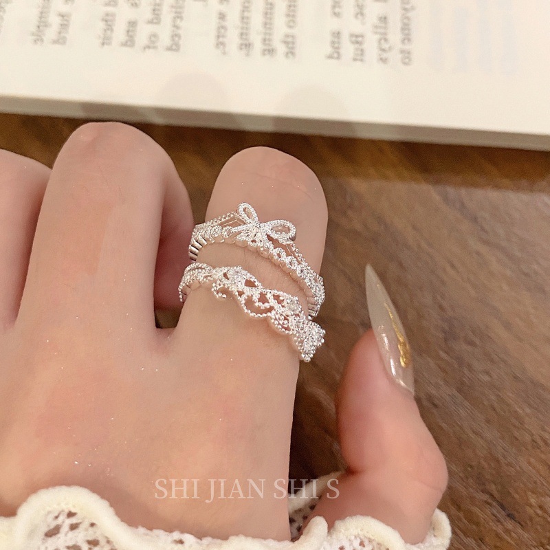"Summer Love" French Bow Lace Braided Open Ring Niche Simple Design Stacked Ring