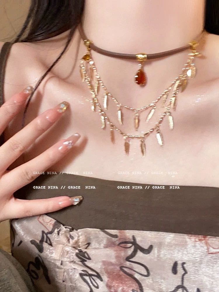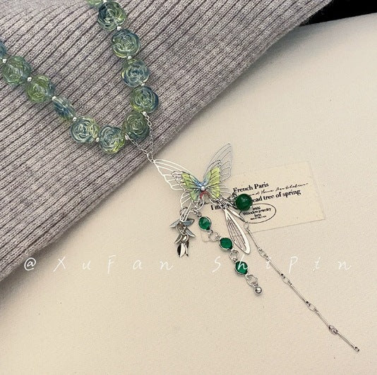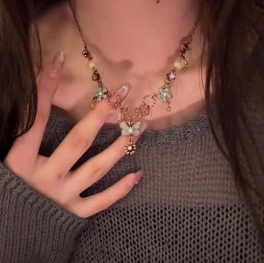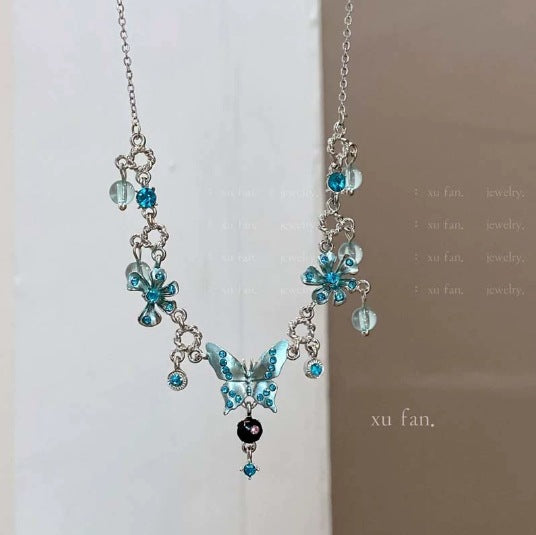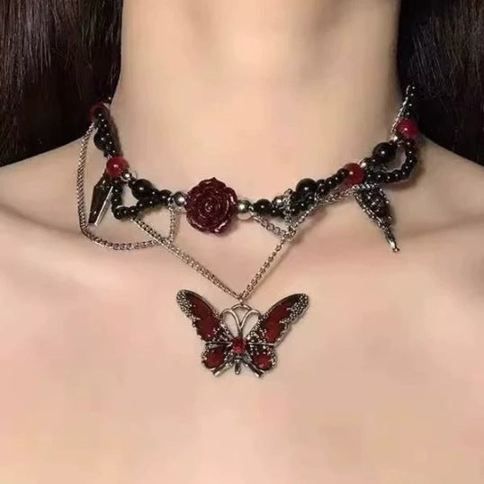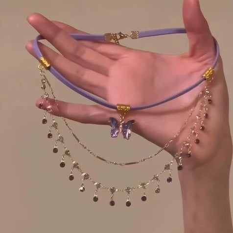 Sweet cool babes chocker butterfly pendant necklace female explosion tide heavy industry fringed retro neck chain collarbone chain