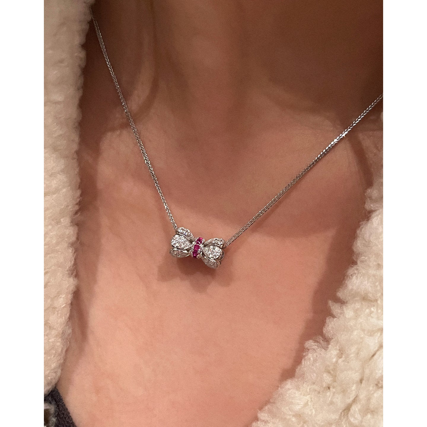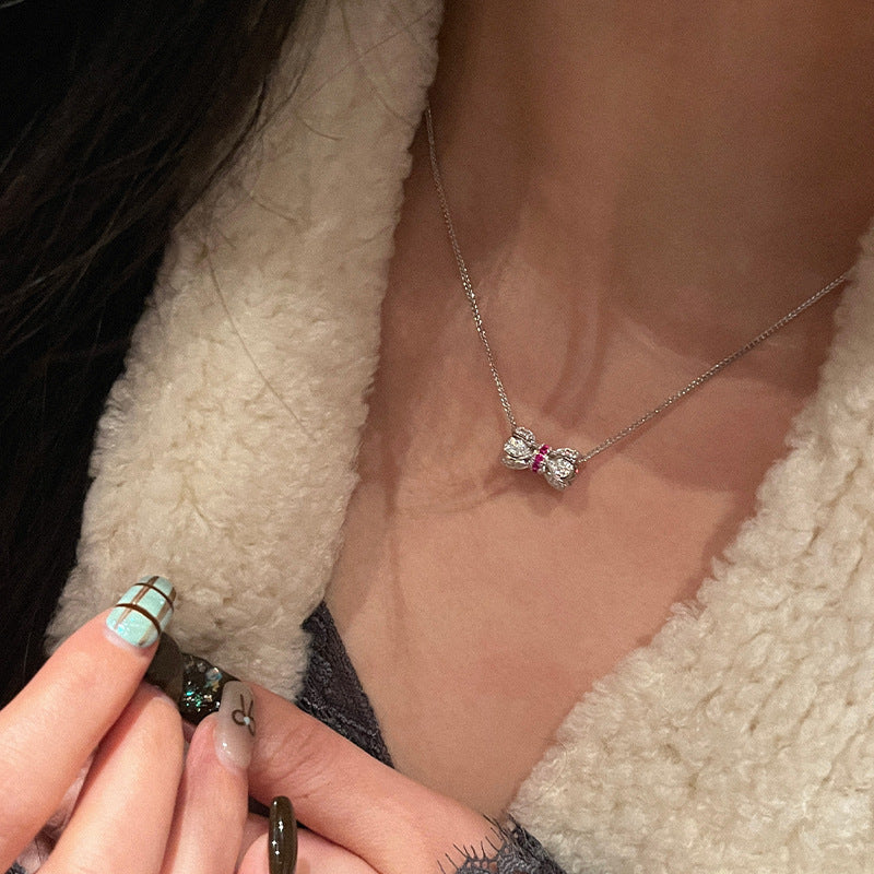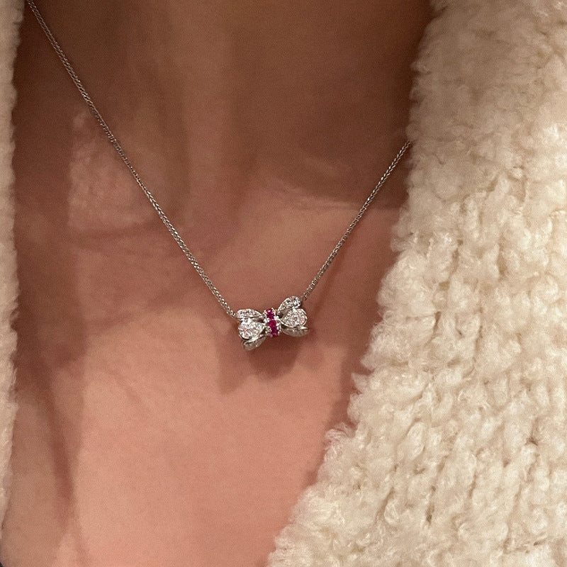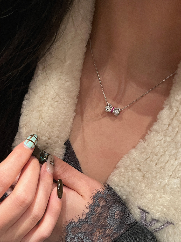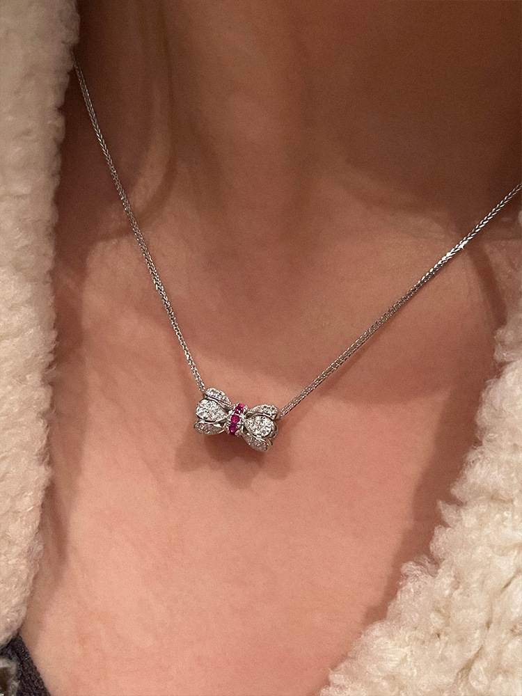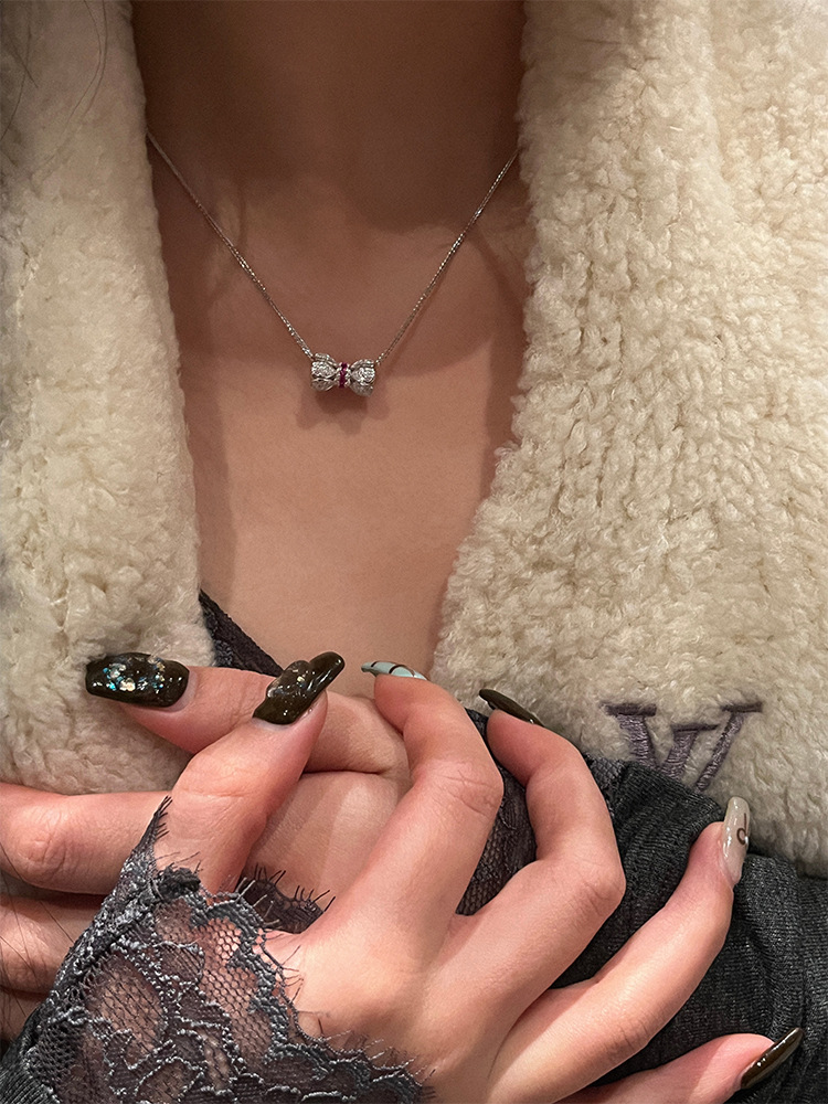 The 925 silver ruby Xiaoman waist necklace is exquisitely inlaid with diamonds, lotus buckle pendant, clavicle chain, live broadcast