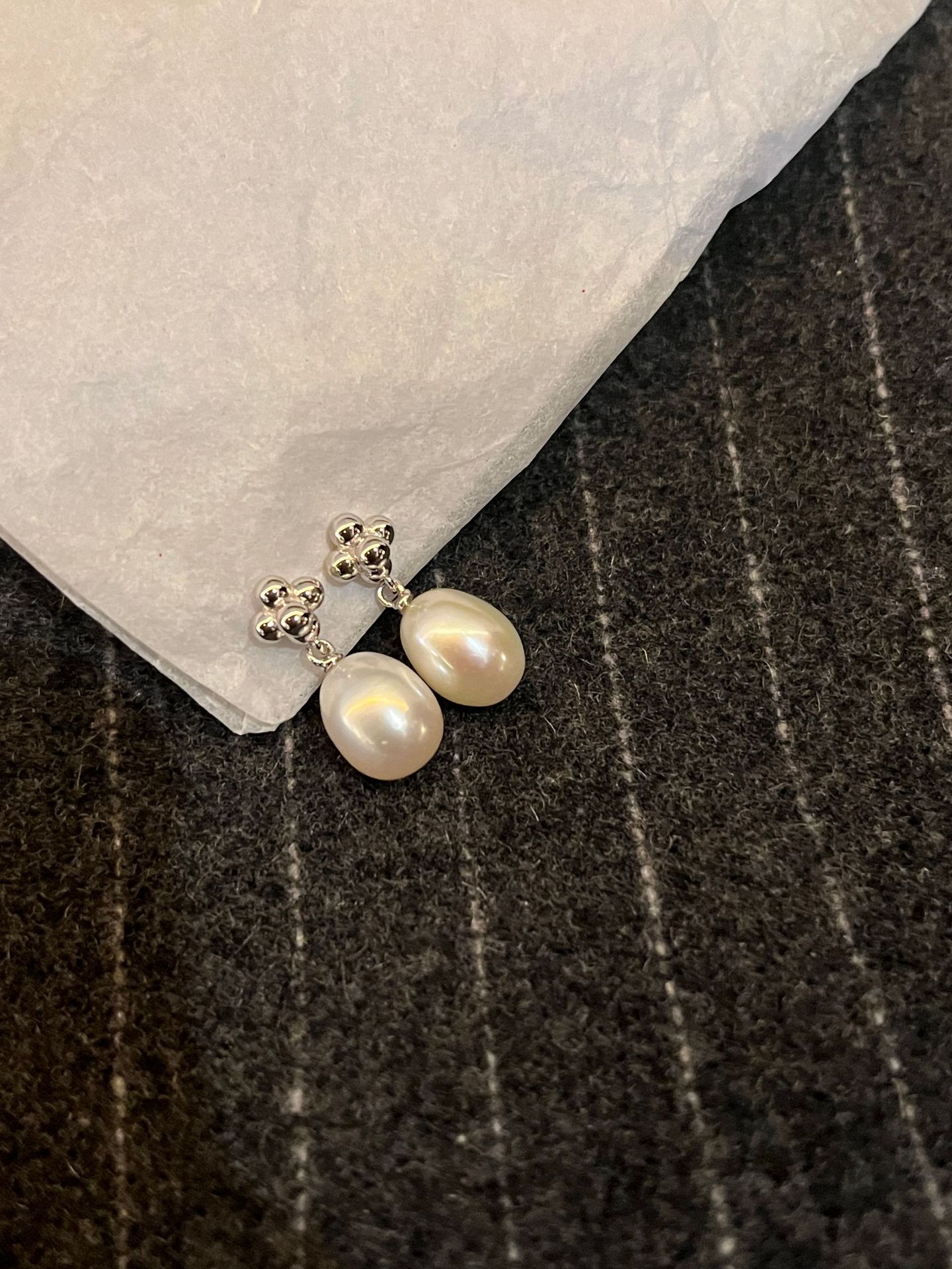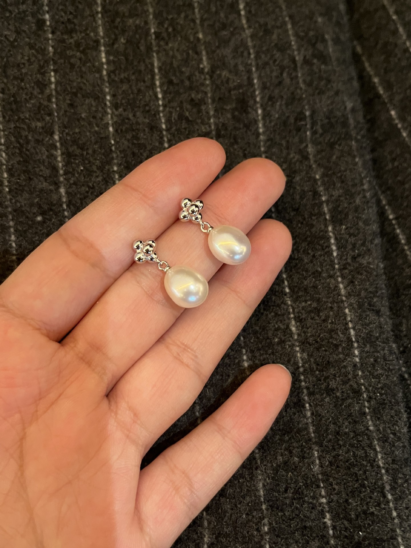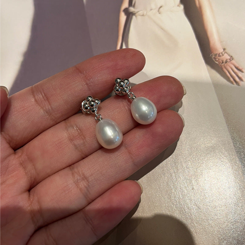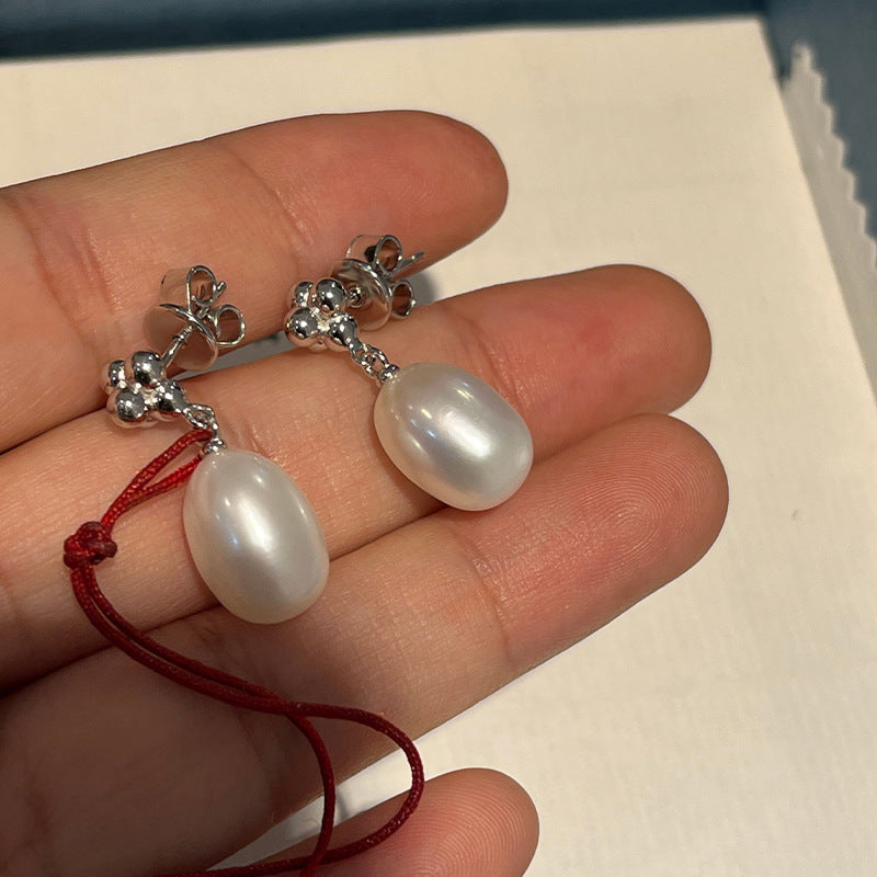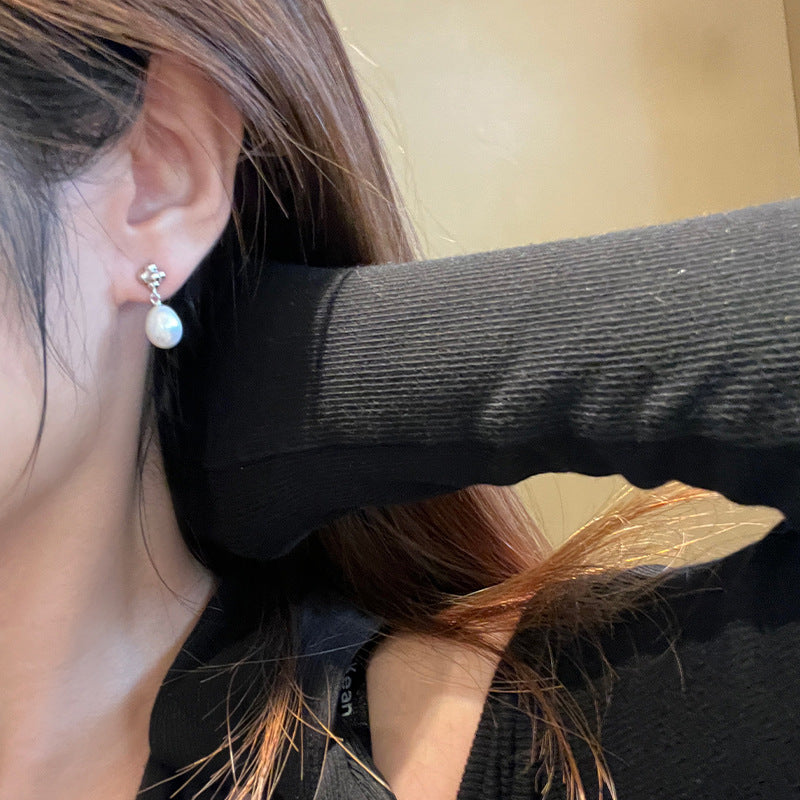 The classic 925 sterling silver natural freshwater pearl earrings French retro style versatile earrings