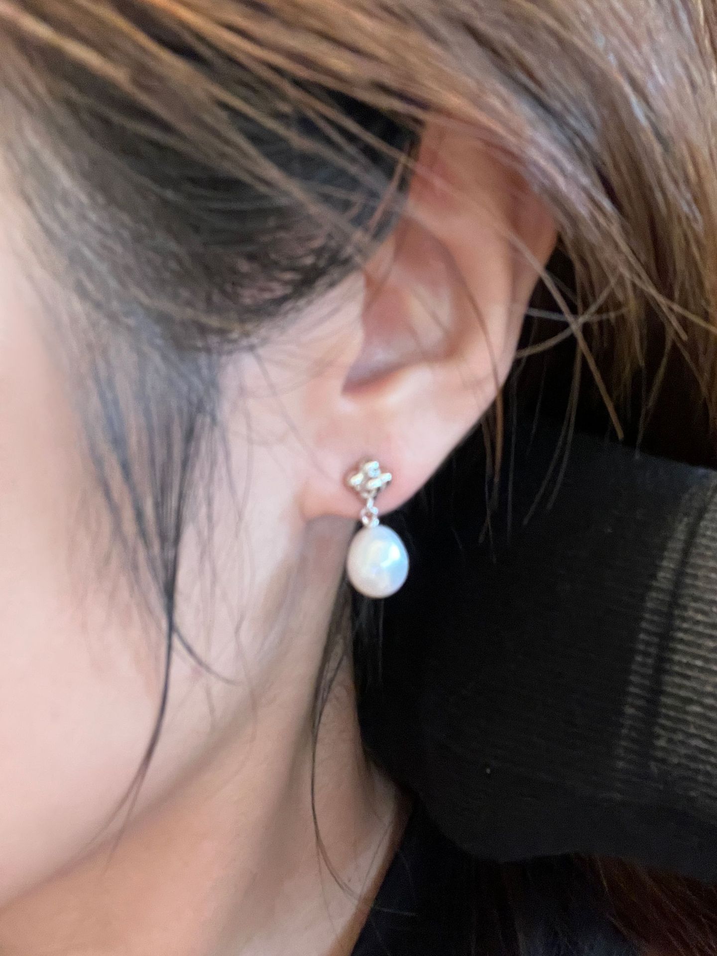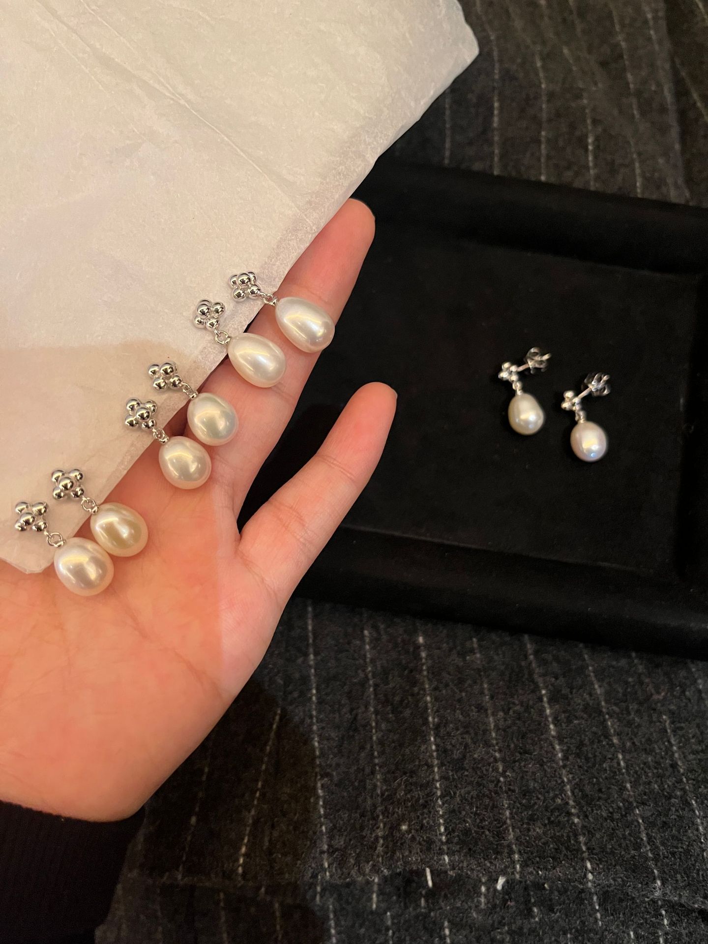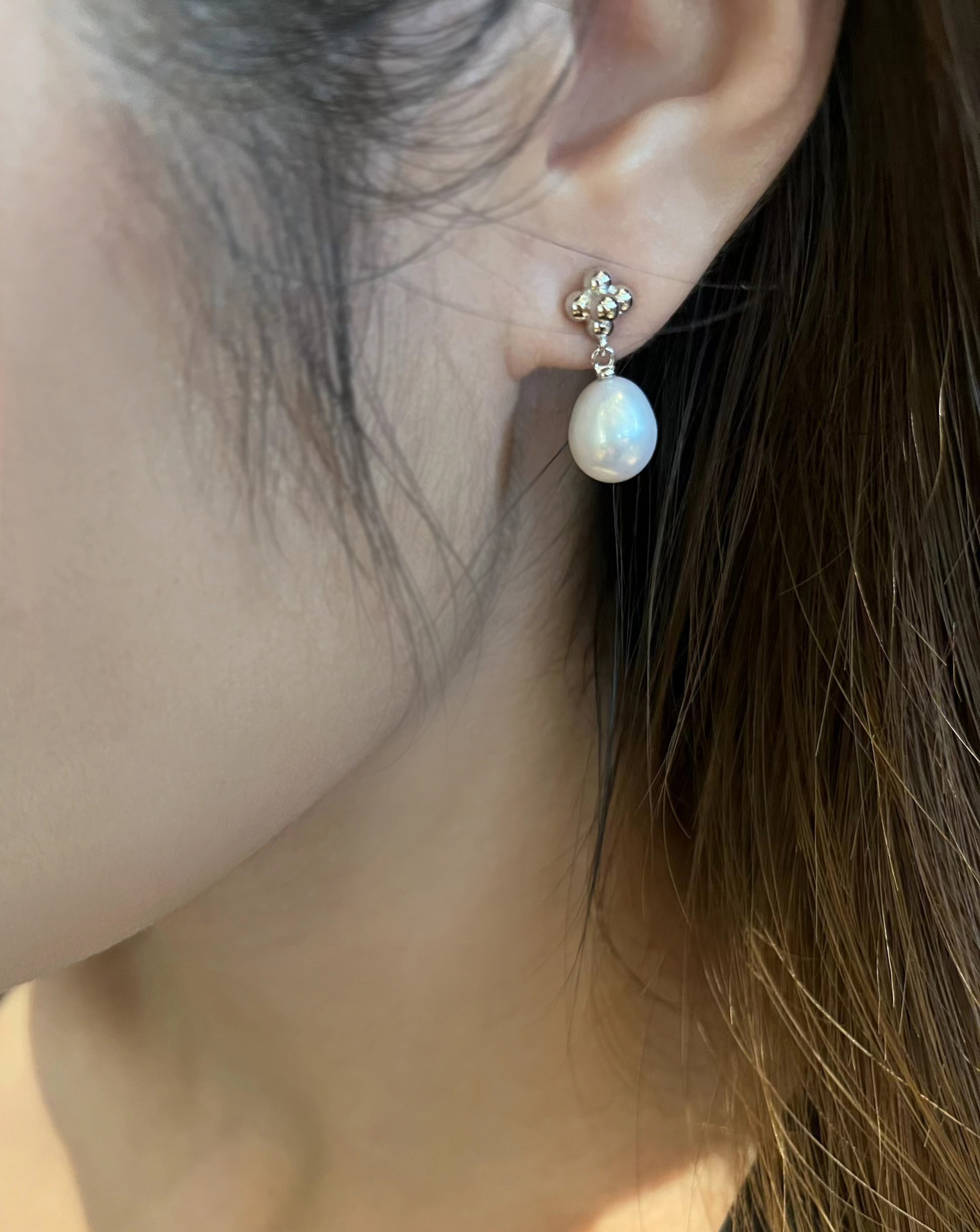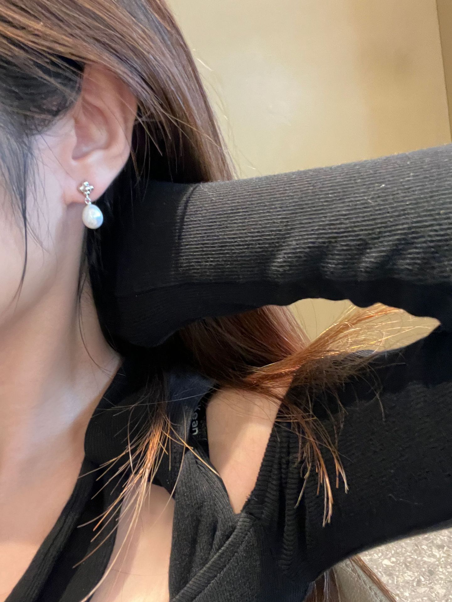 The classic 925 sterling silver natural freshwater pearl earrings French retro style versatile earrings