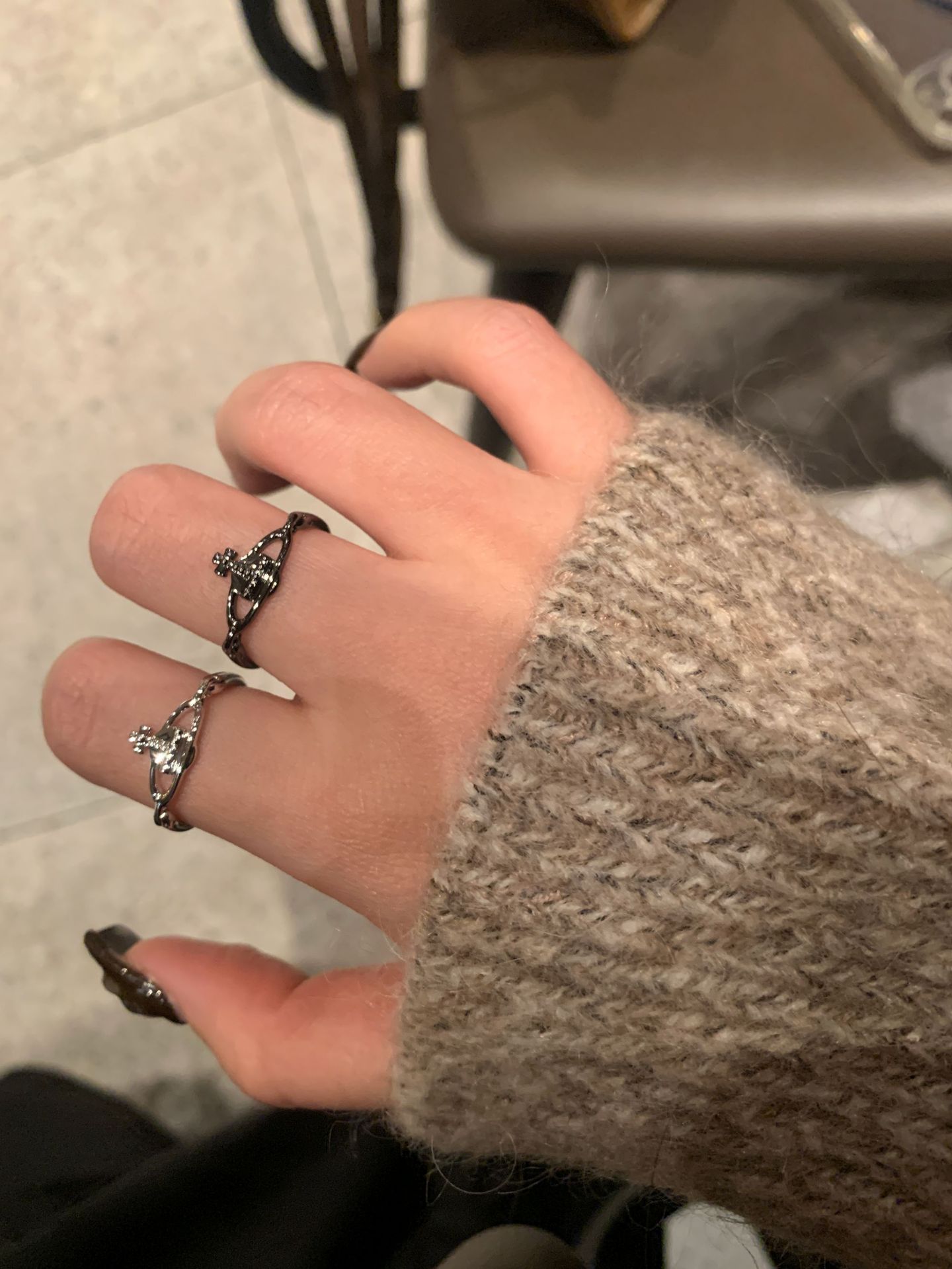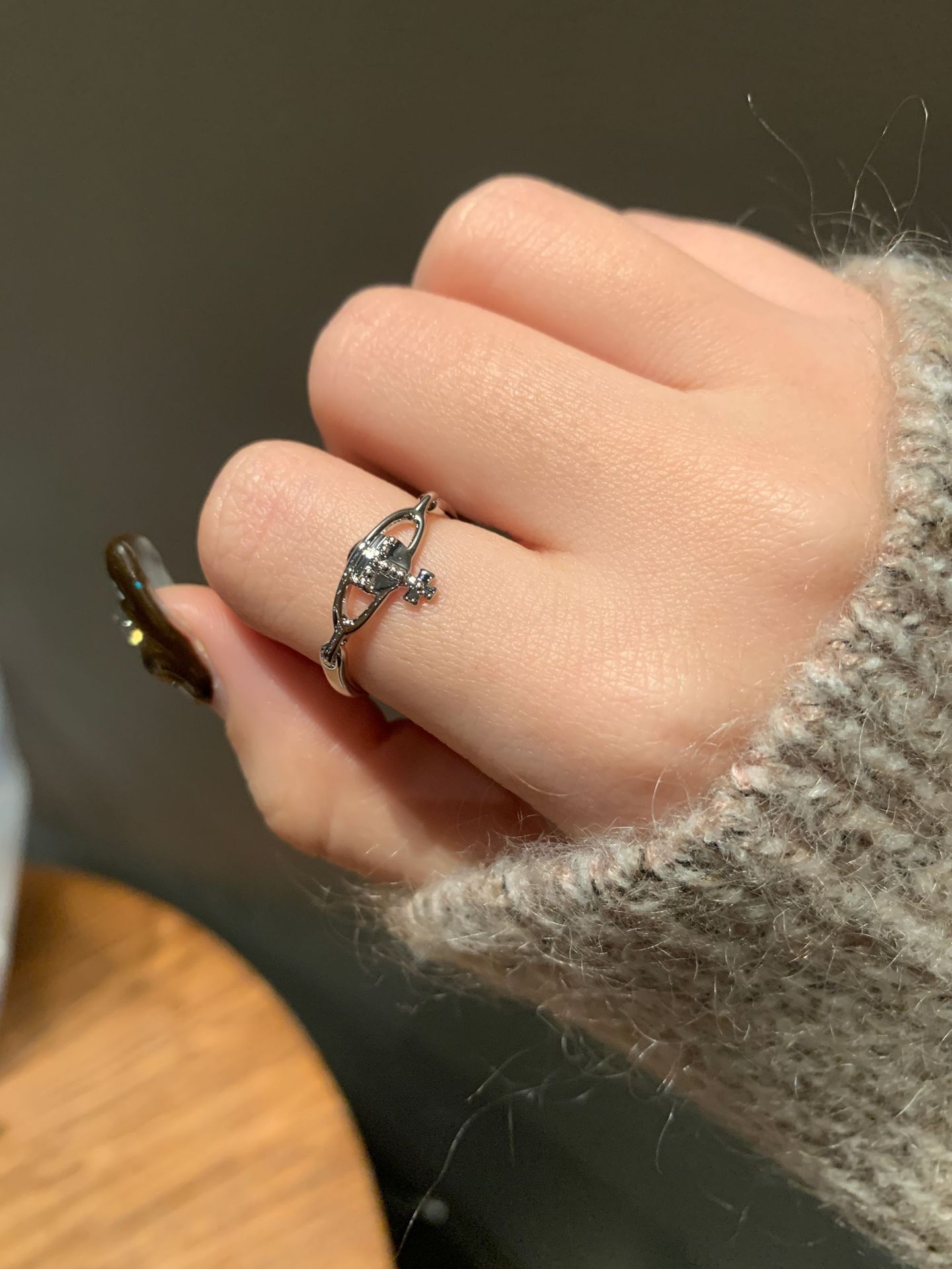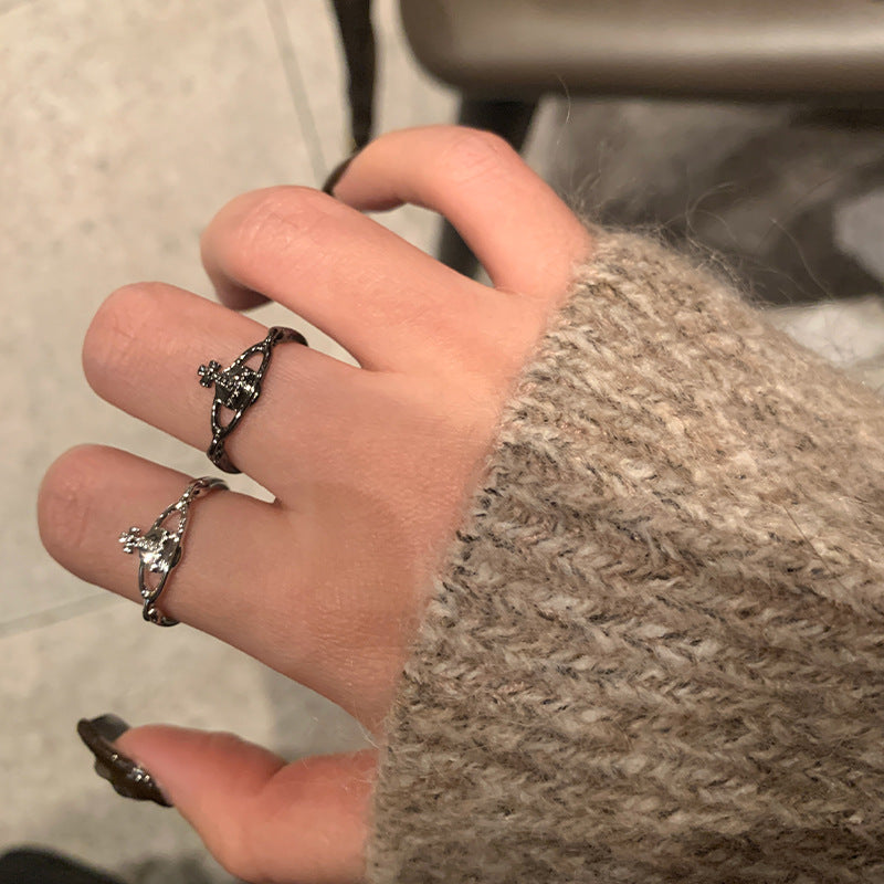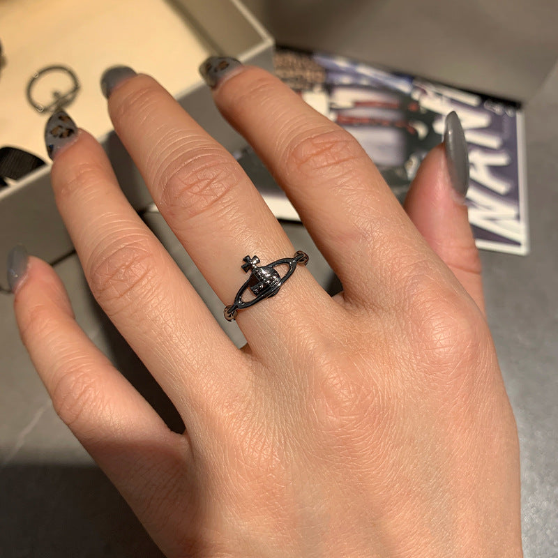 The high version of the Queen Mother of the West can shake the Saturn ring, simple glossy hollow planet, stacked index finger ring hand ornament