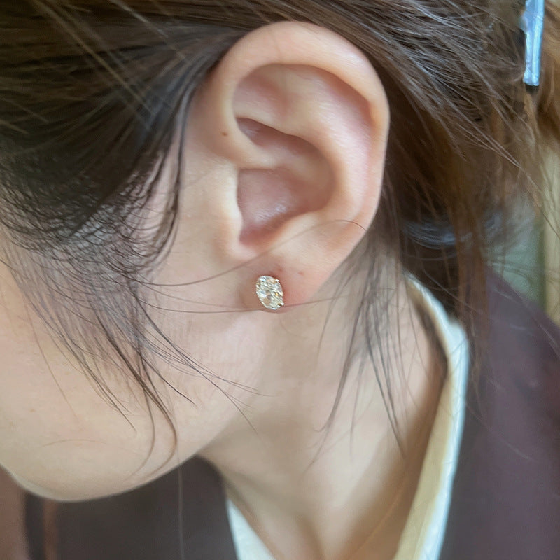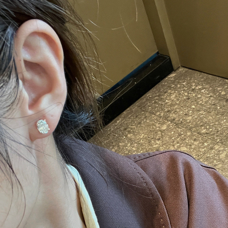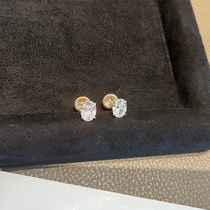 The live broadcast hit 925 silver oval diamond stud earrings, one carat small pigeon egg, single diamond earrings, minimalist style