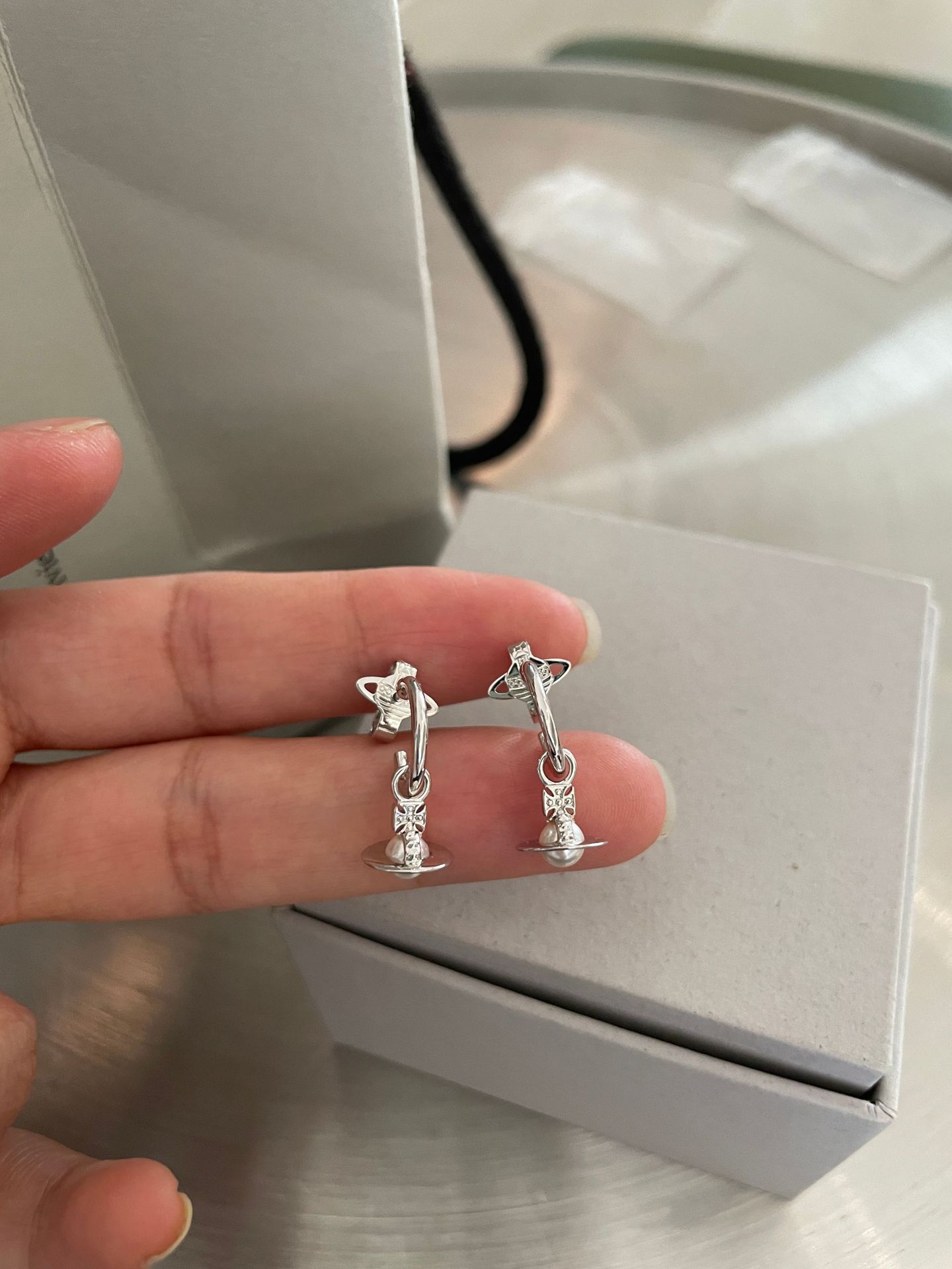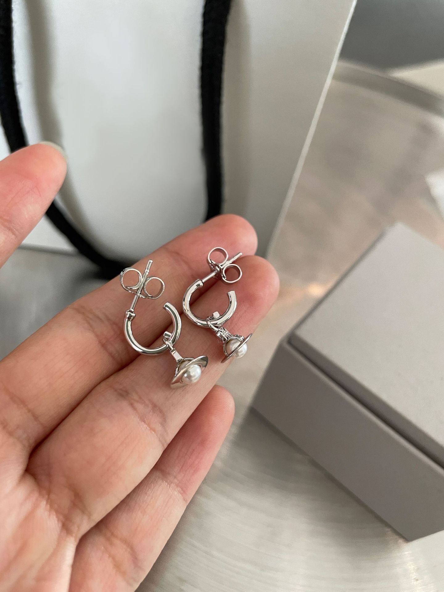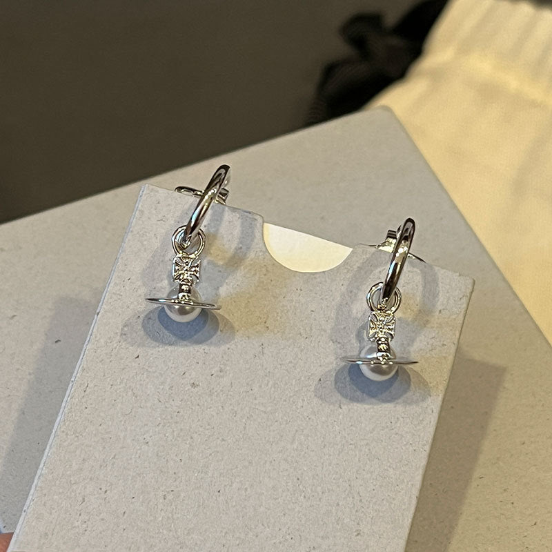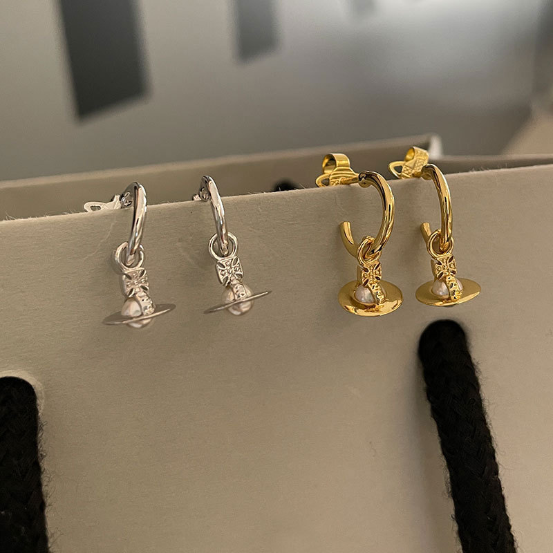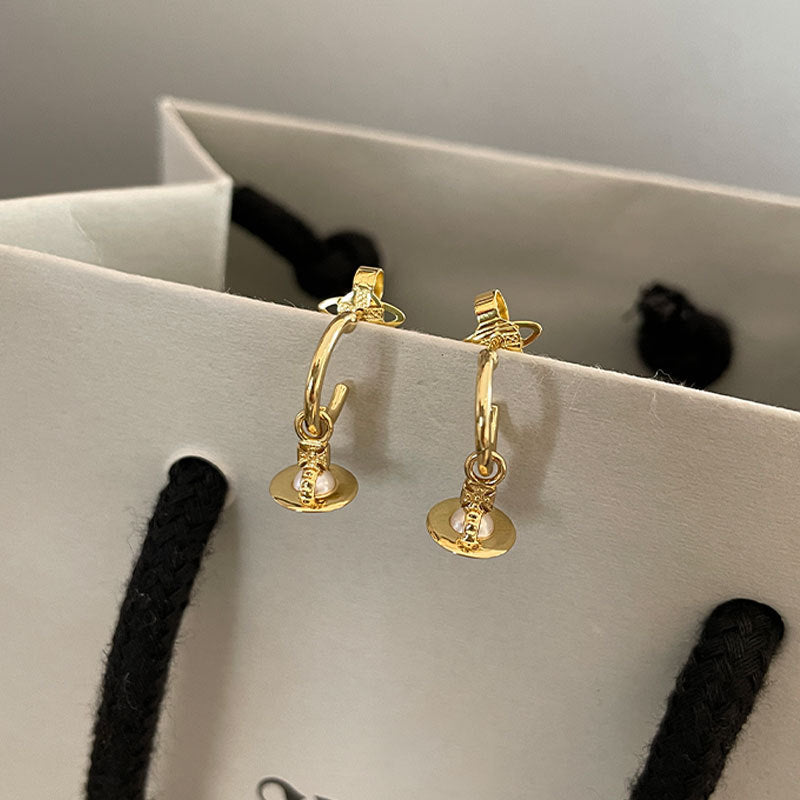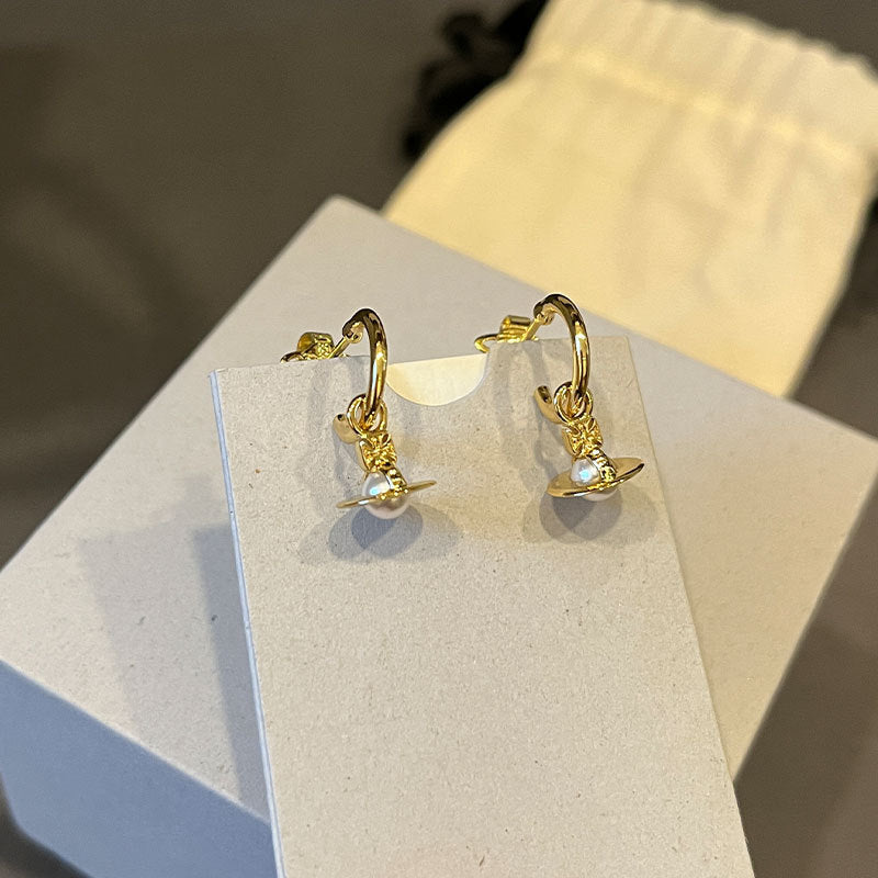 The new Queen Mother layla pearl mini earrings three-dimensional Saturn earrings for daily commuting