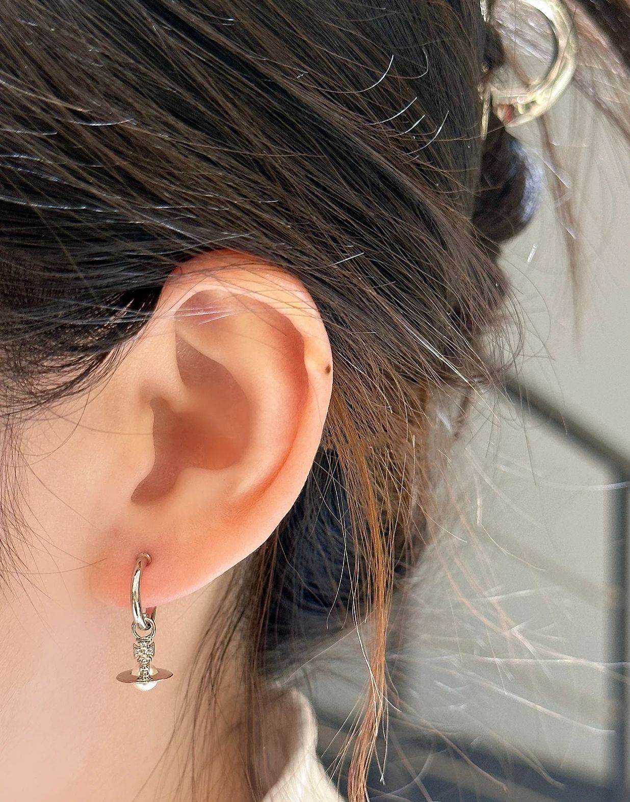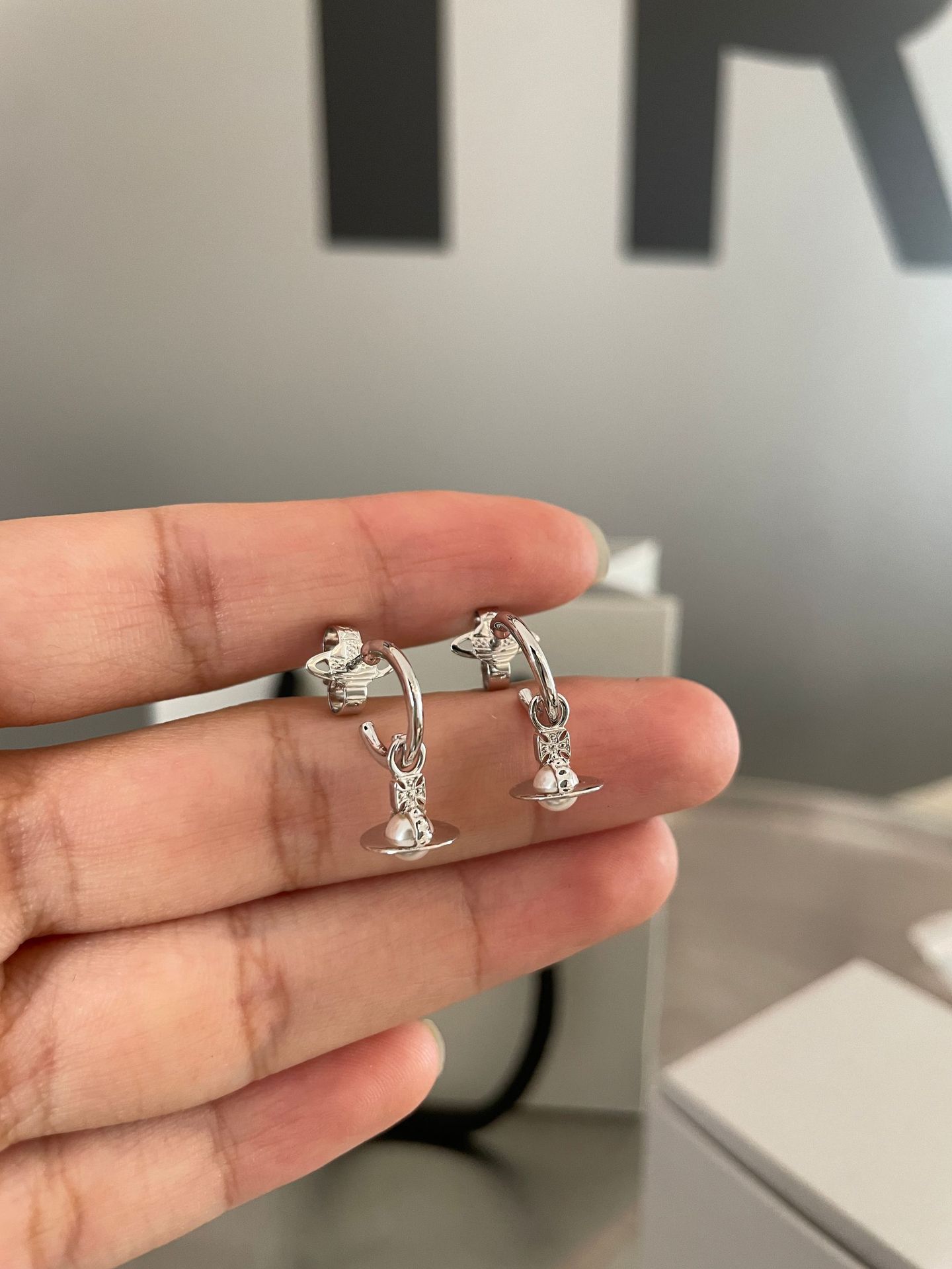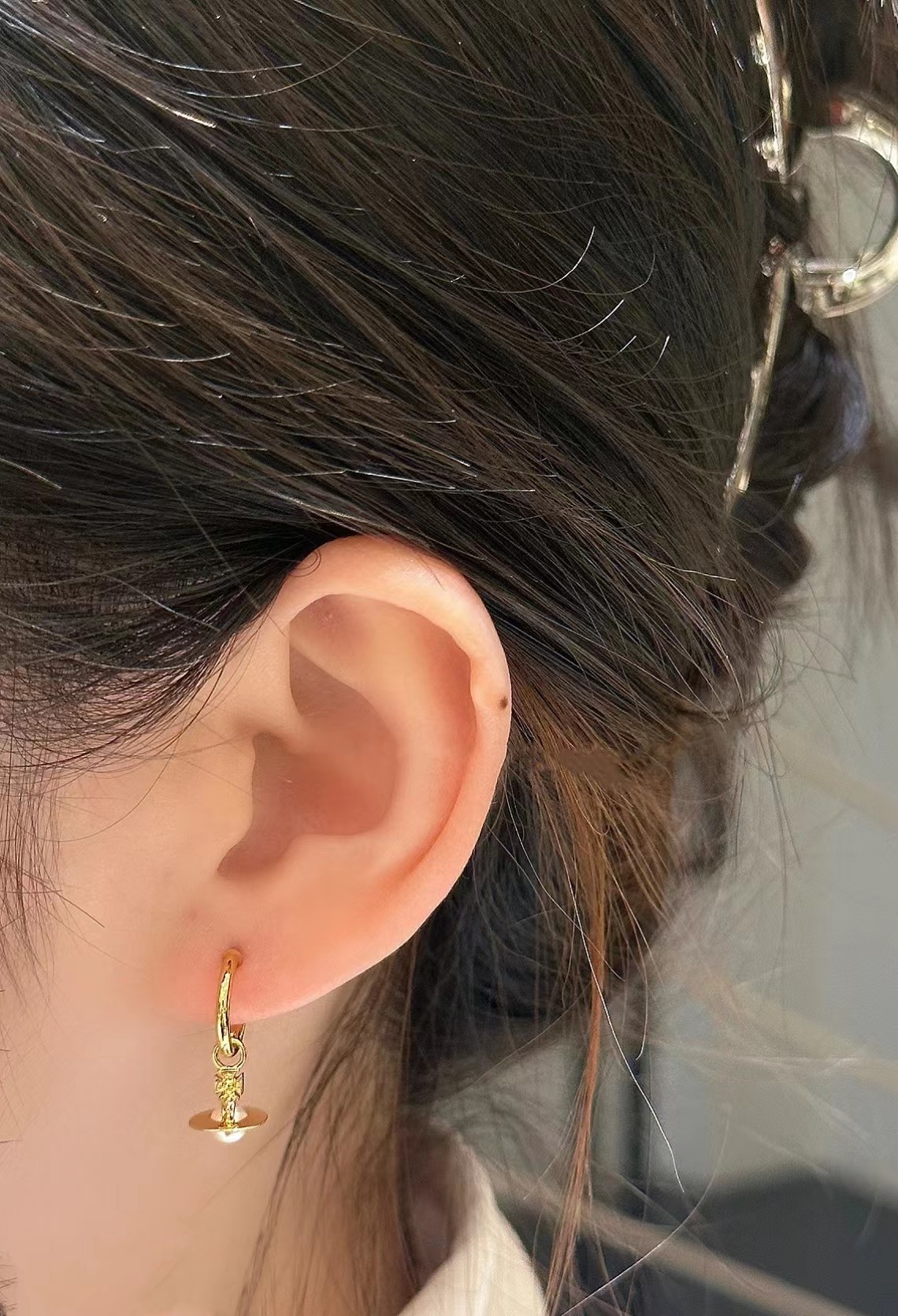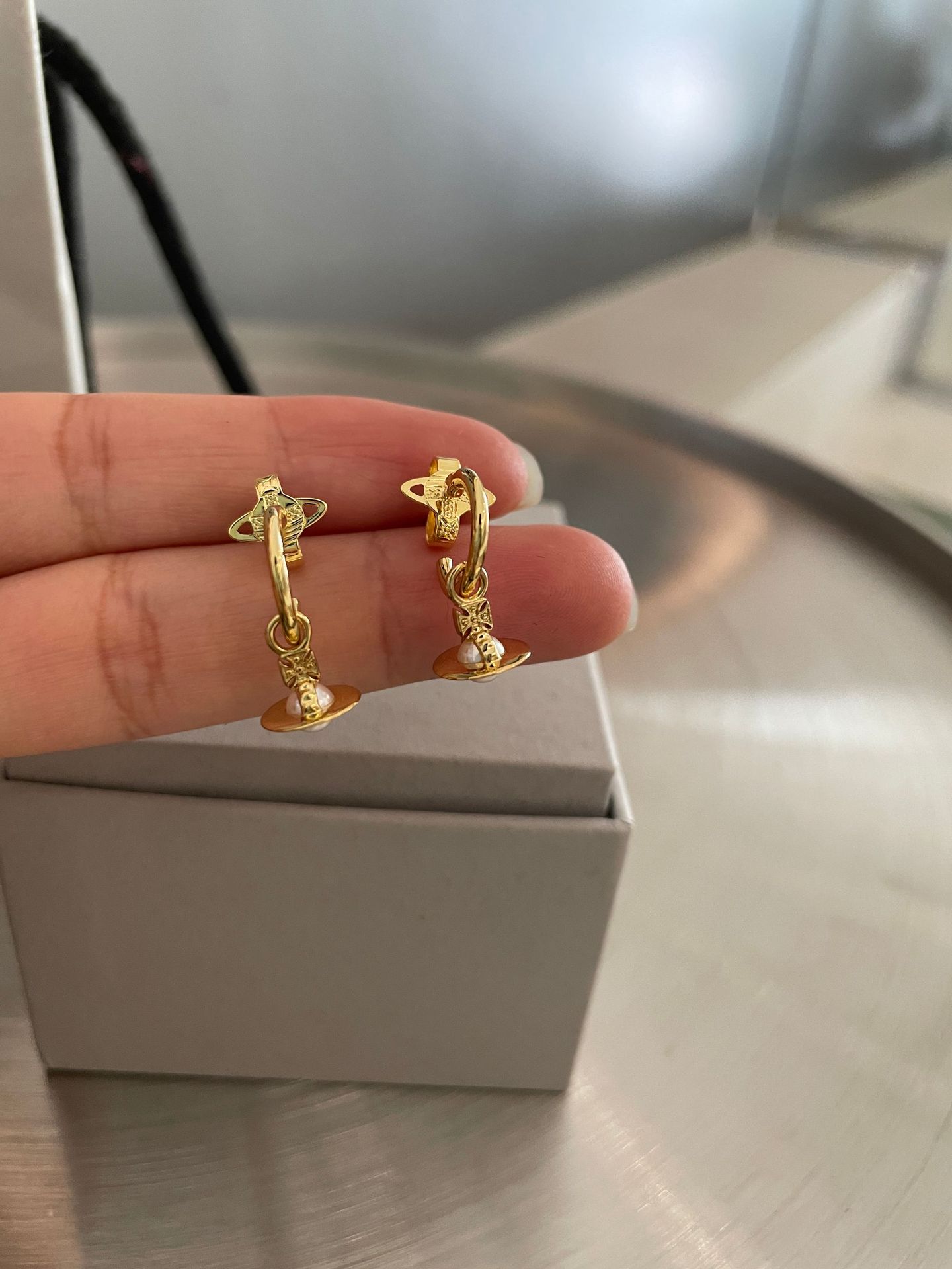 The new Queen Mother layla pearl mini earrings three-dimensional Saturn earrings for daily commuting