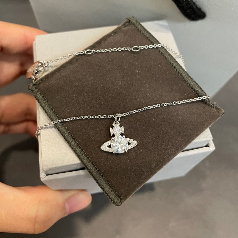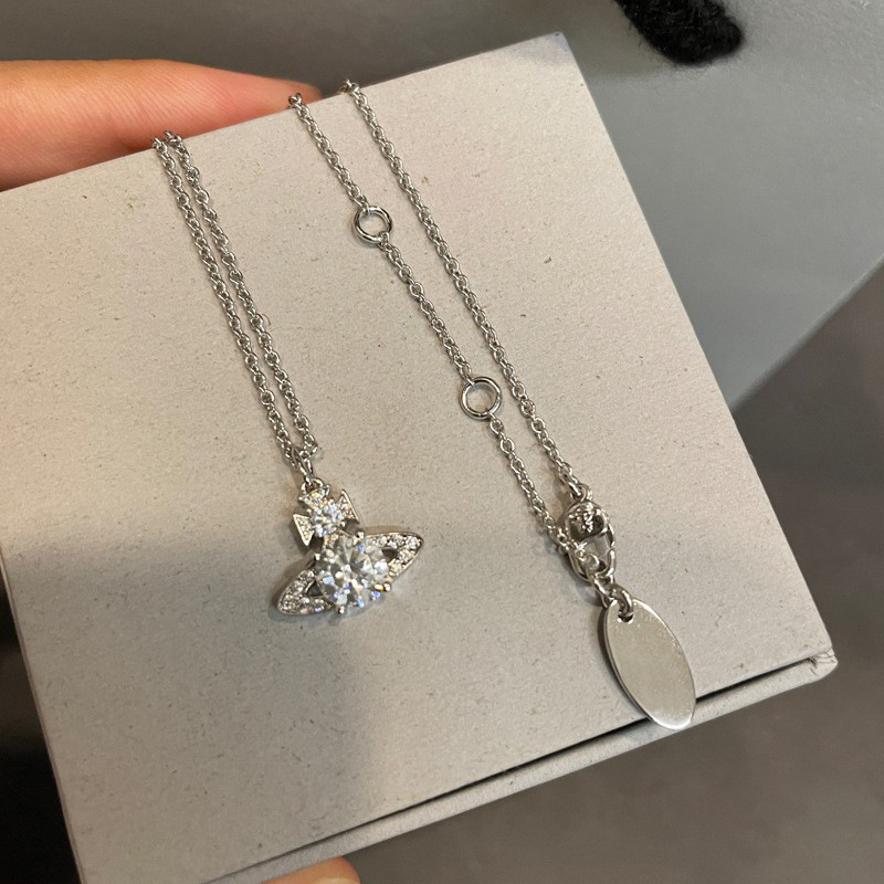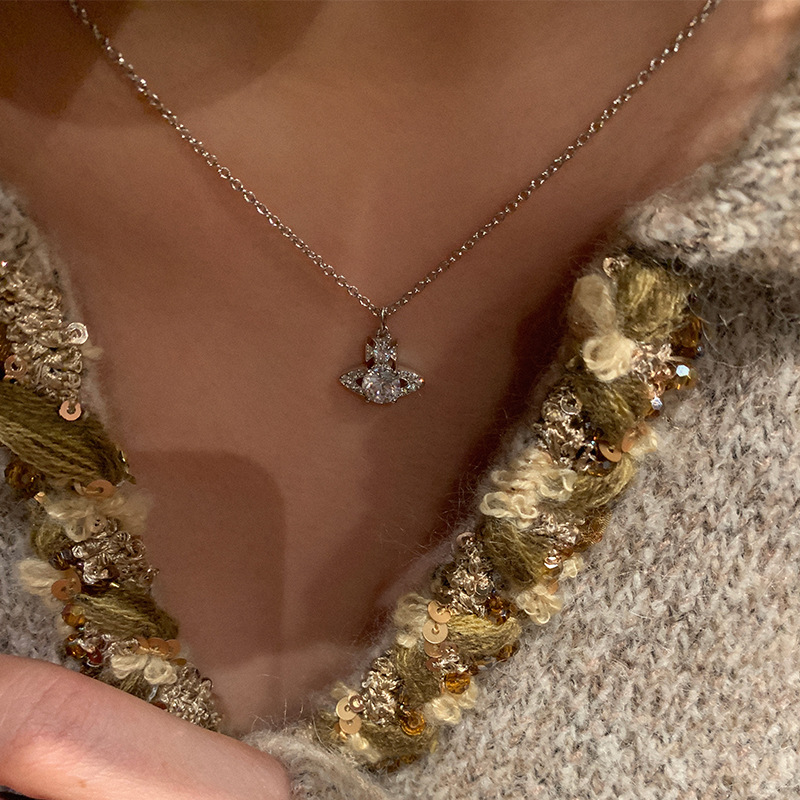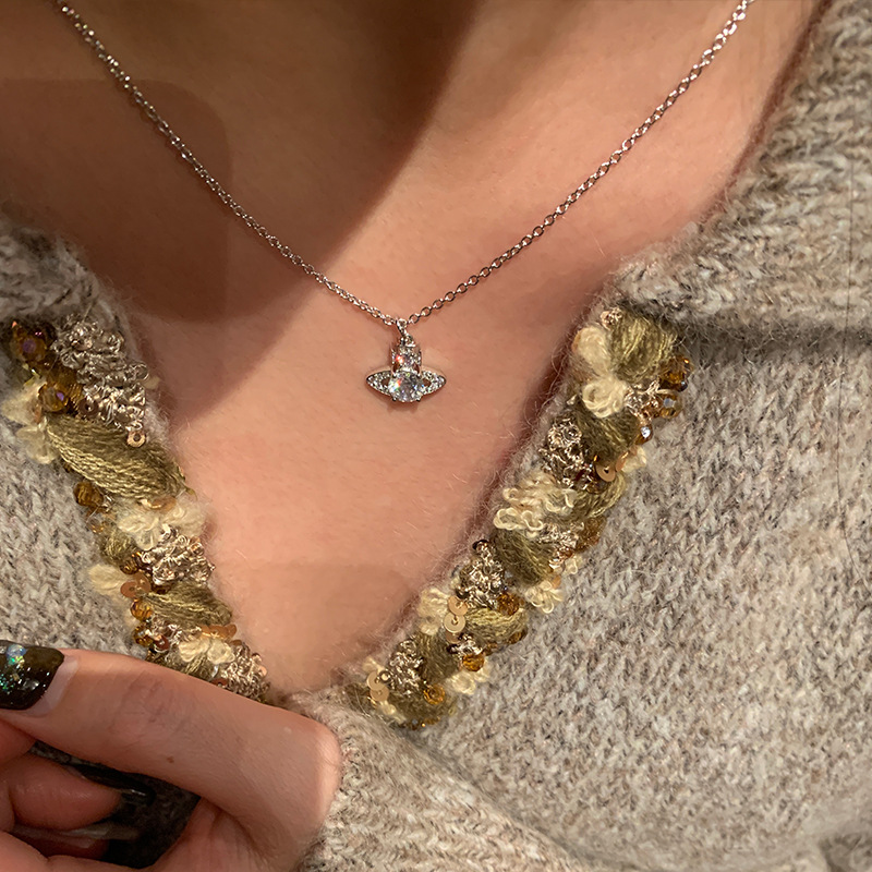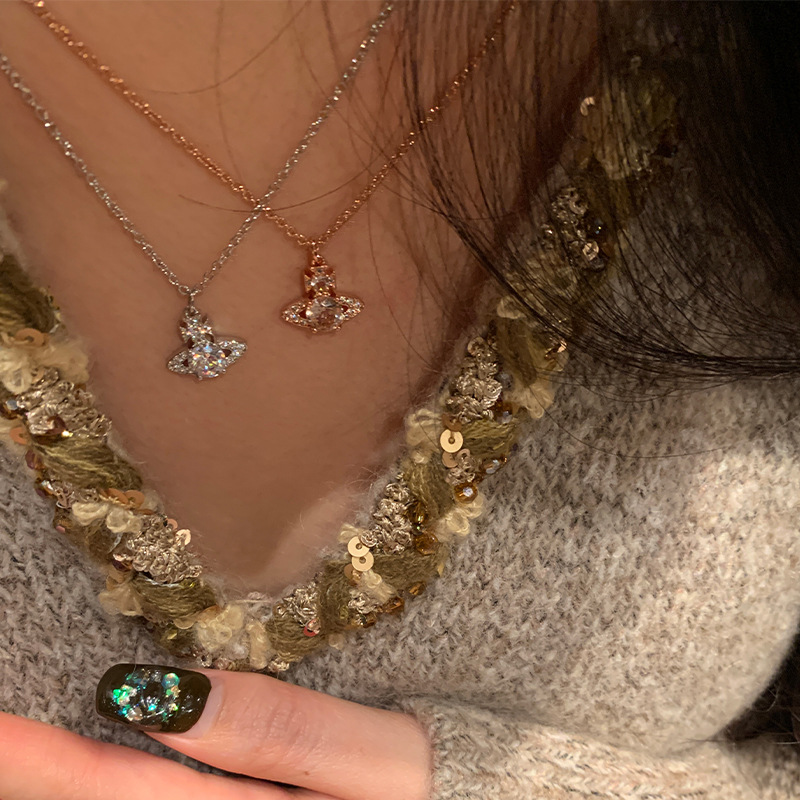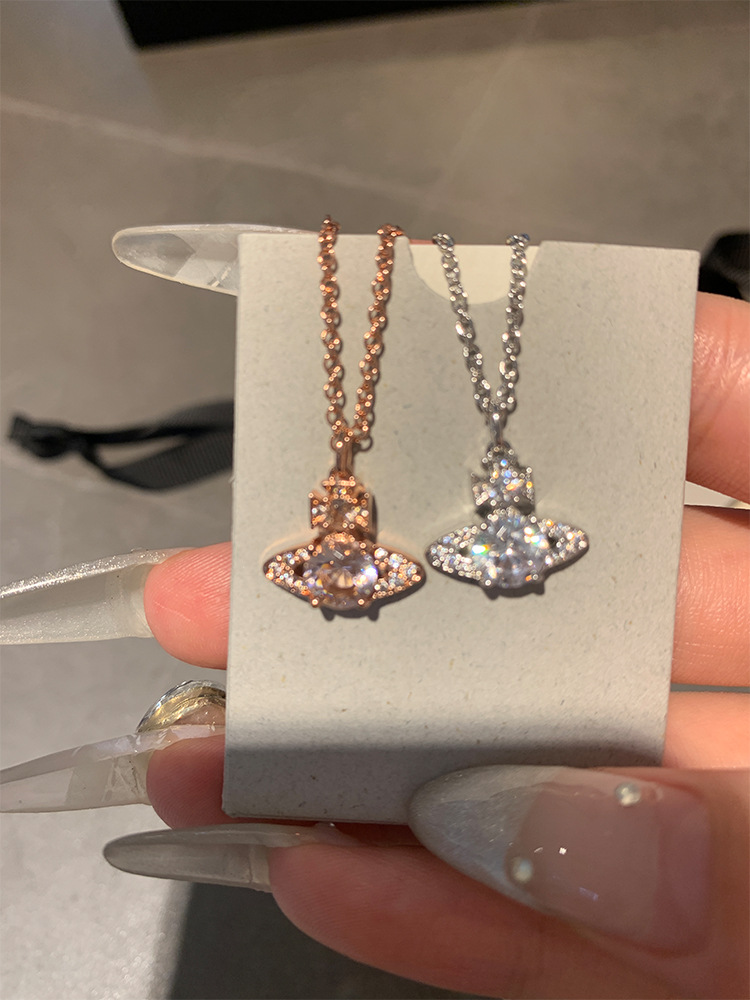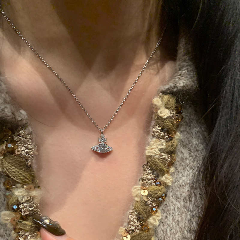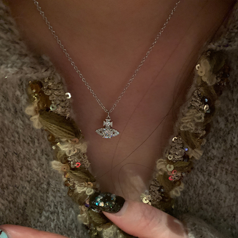 The new Queen Mother of the West single diamond full diamond small Saturn necklace round diamond planet collarbone chain women's model can be stacked