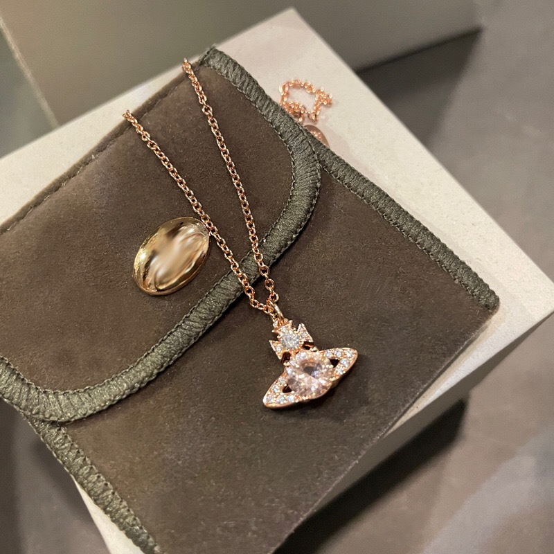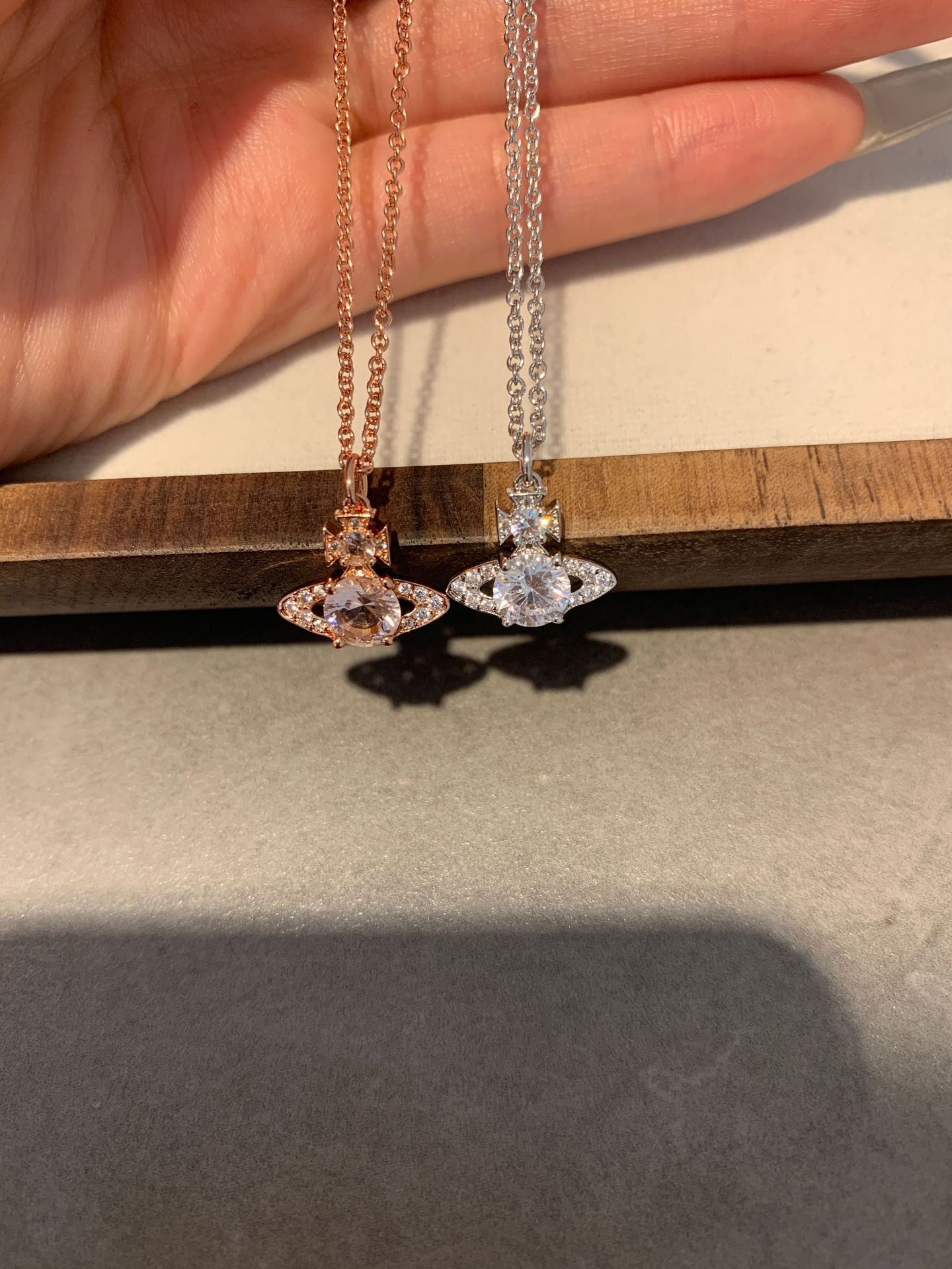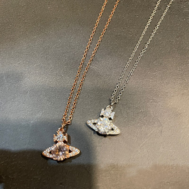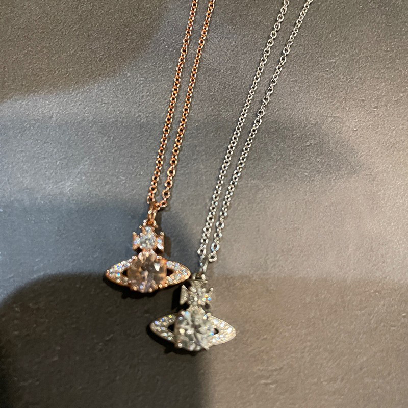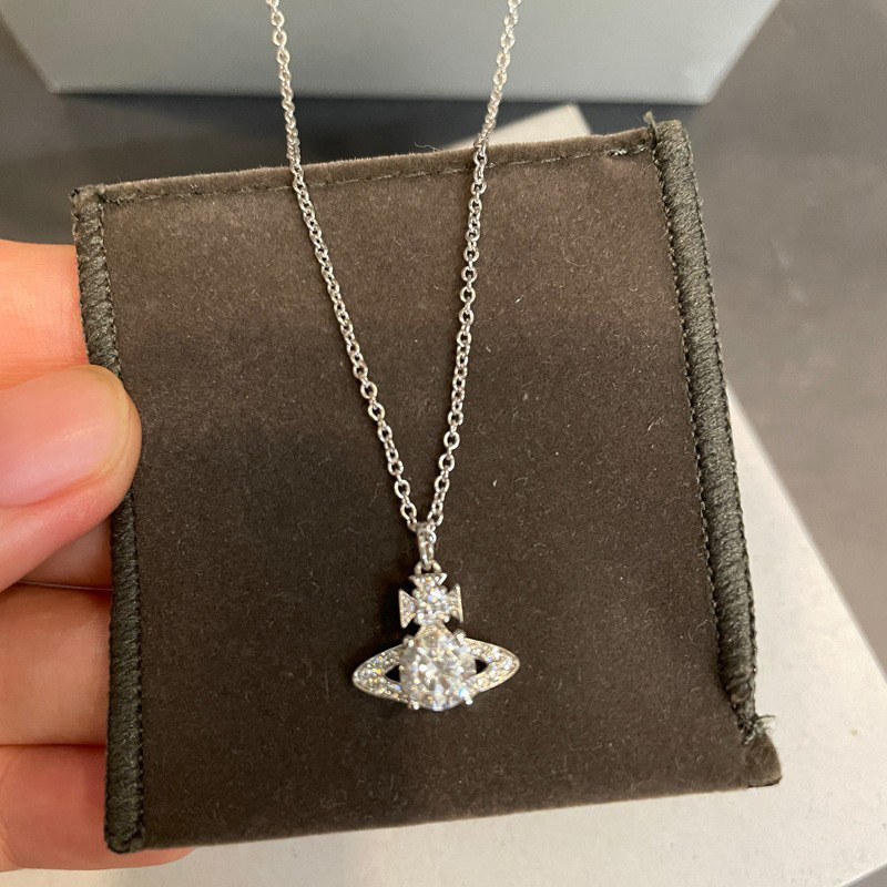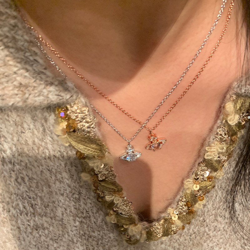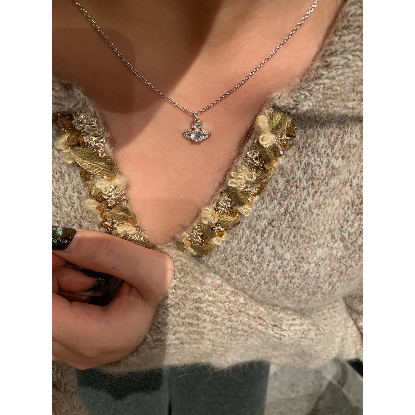 The new Queen Mother of the West single diamond full diamond small Saturn necklace round diamond planet collarbone chain women's model can be stacked