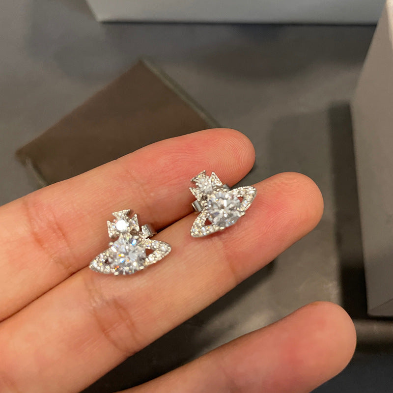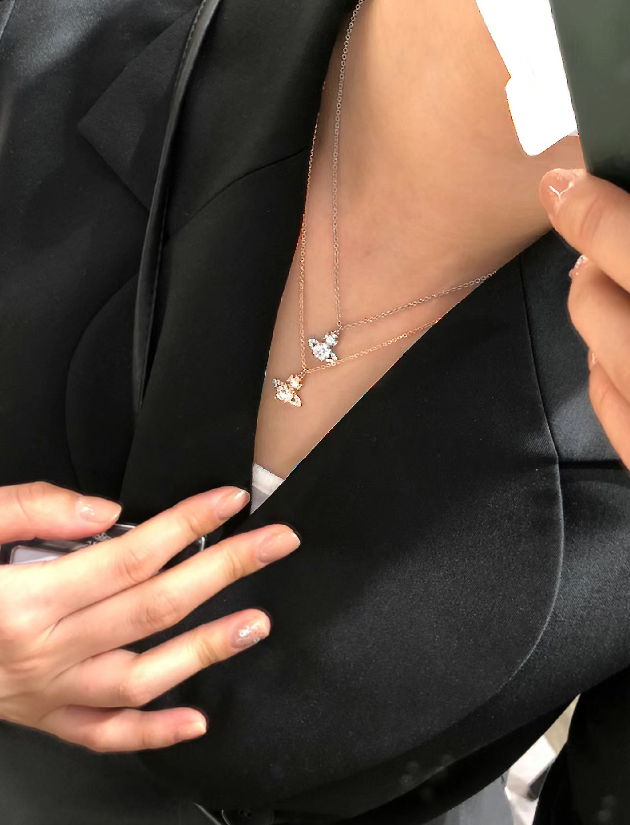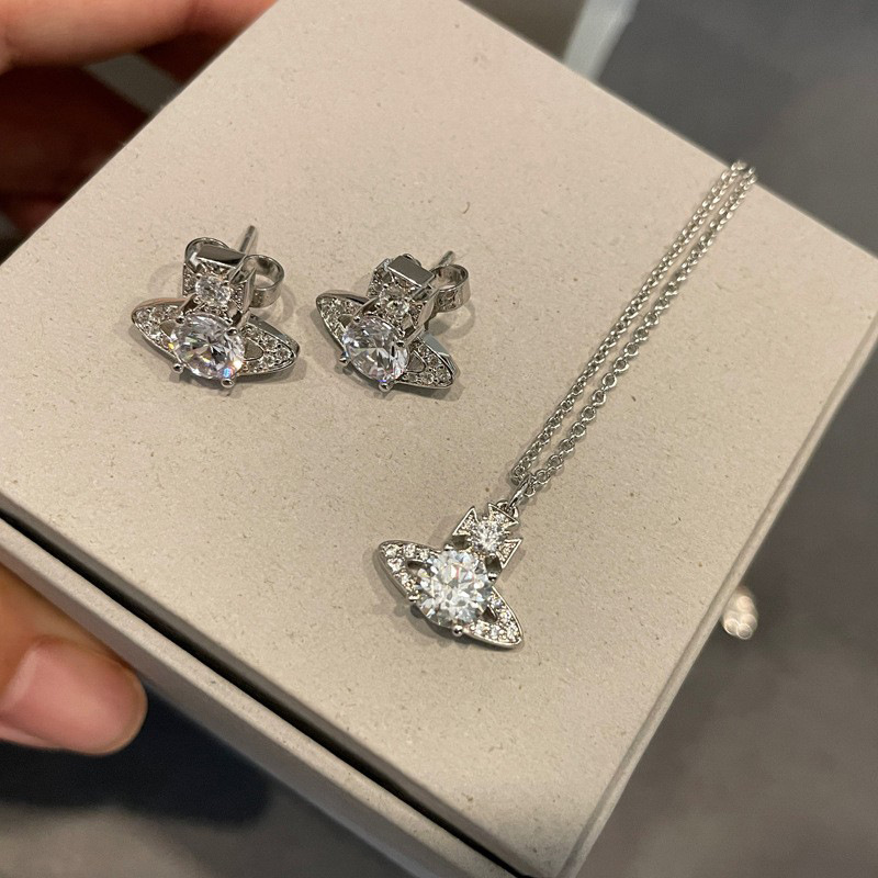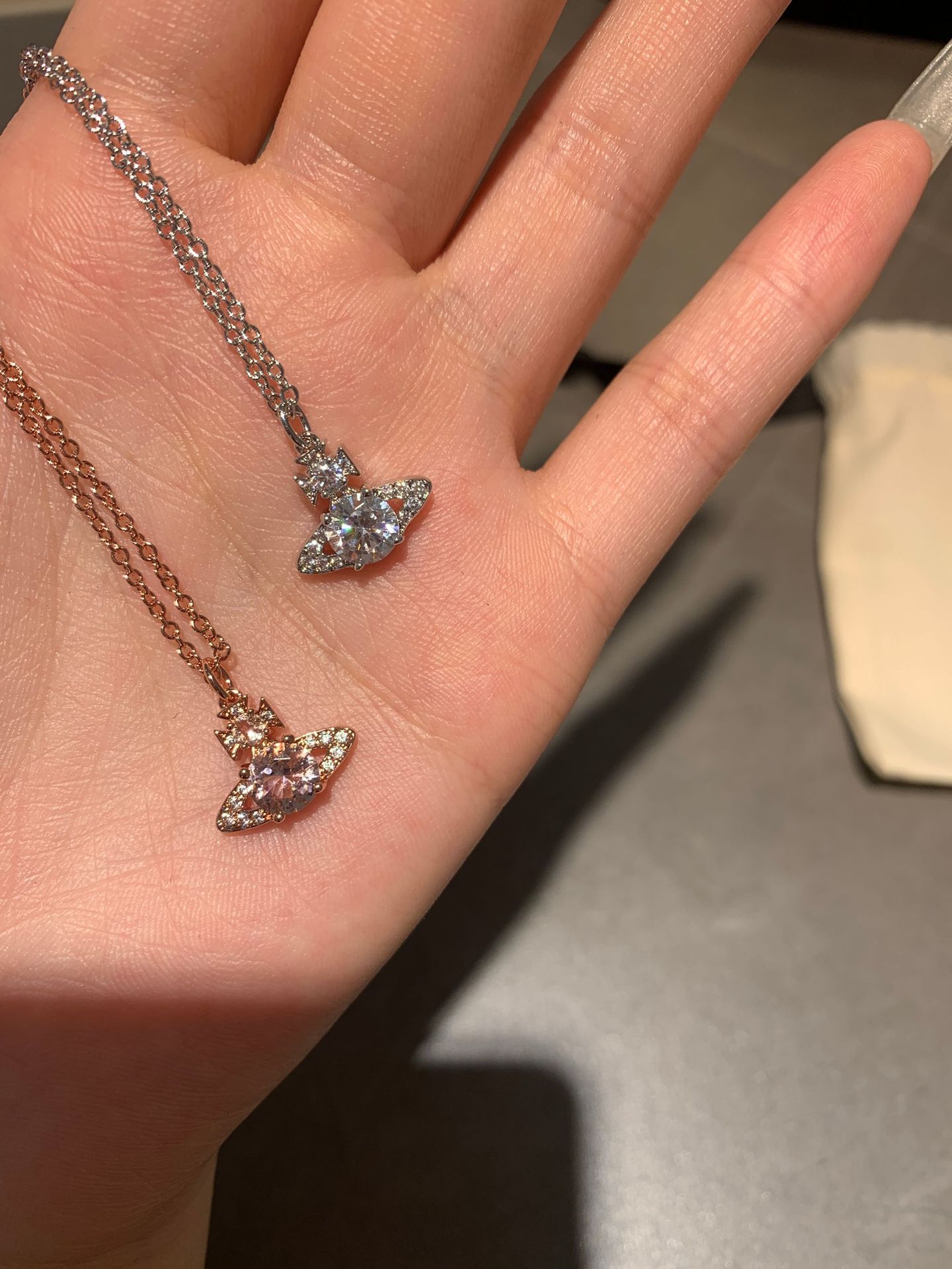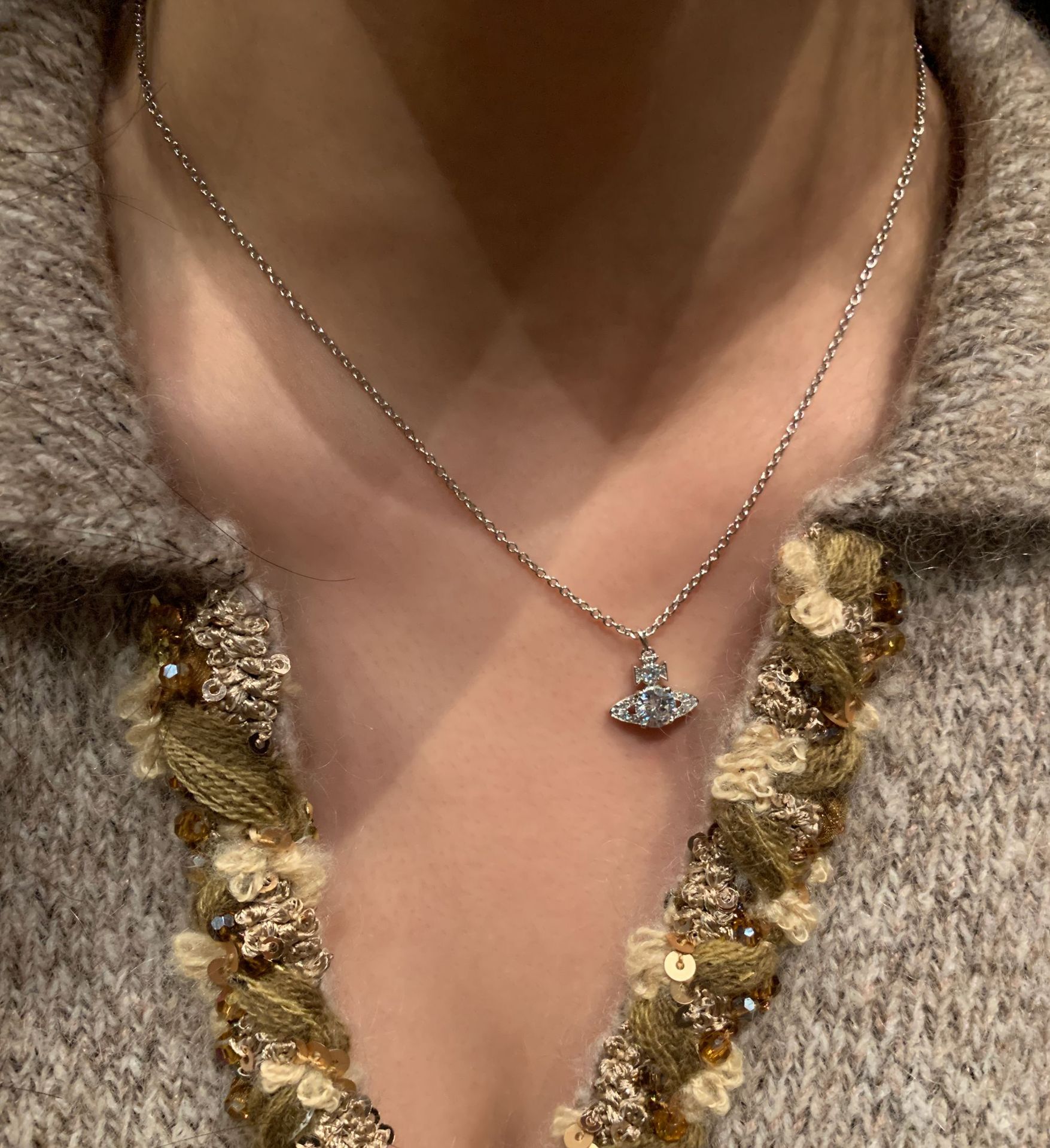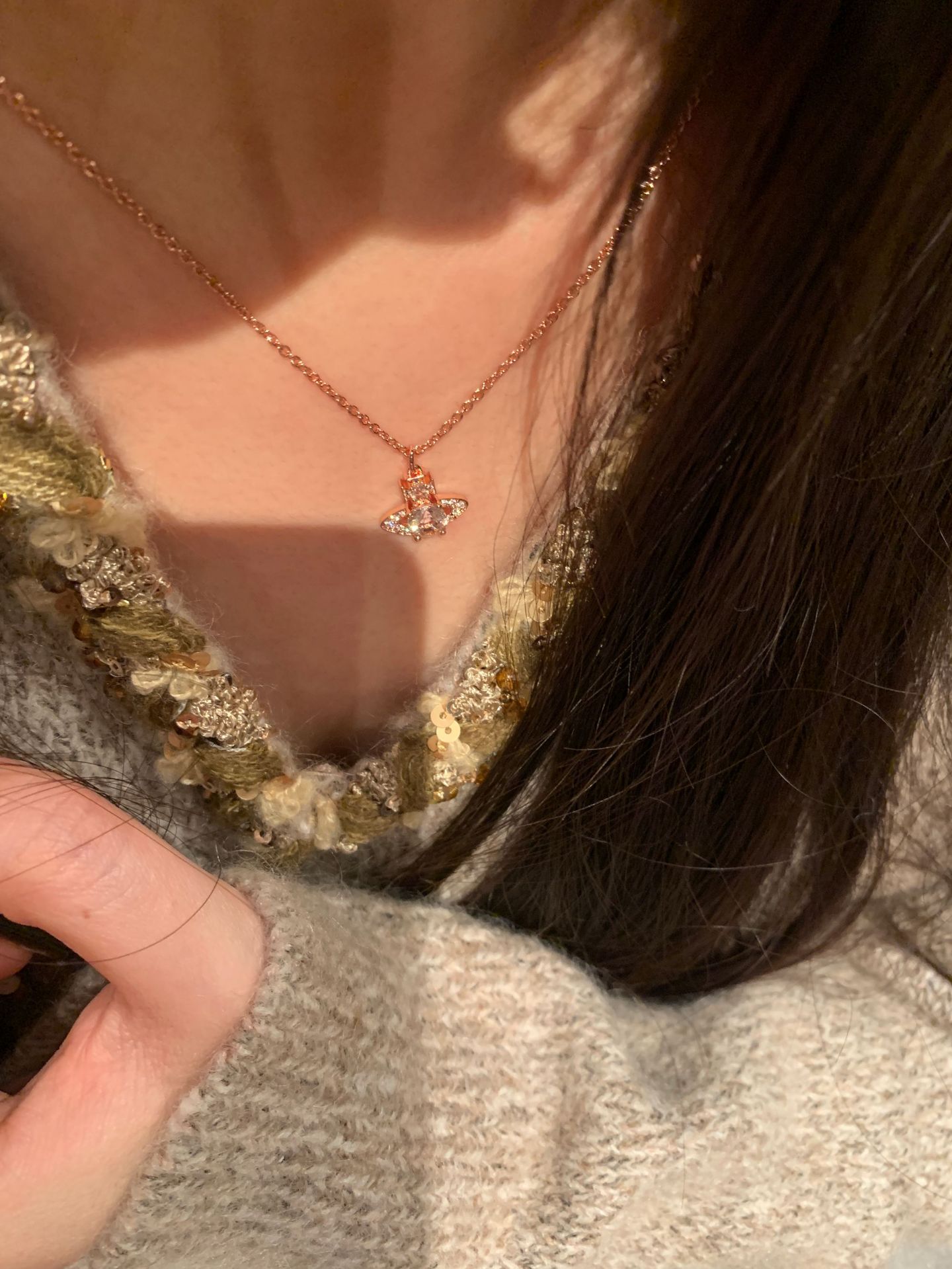 The new Queen Mother of the West single diamond full diamond small Saturn necklace round diamond planet collarbone chain women's model can be stacked