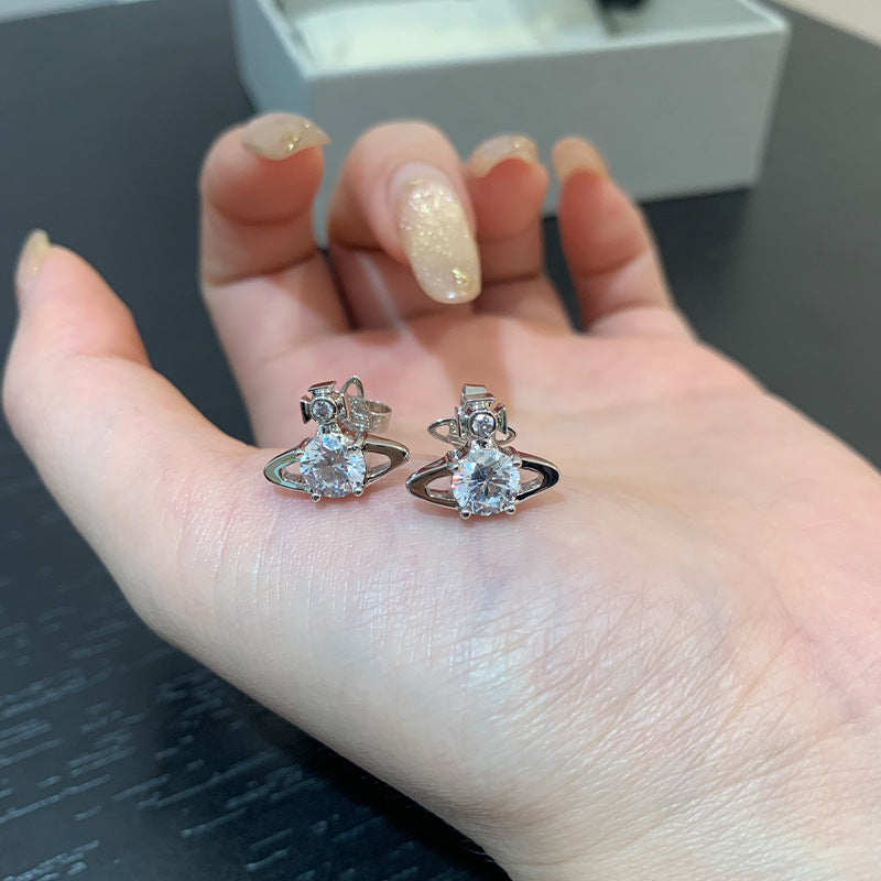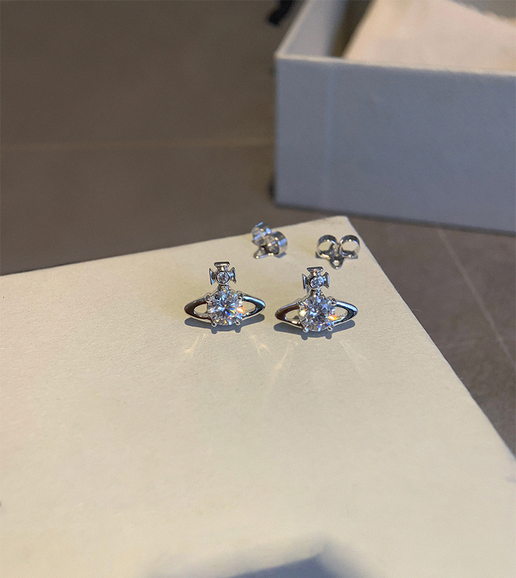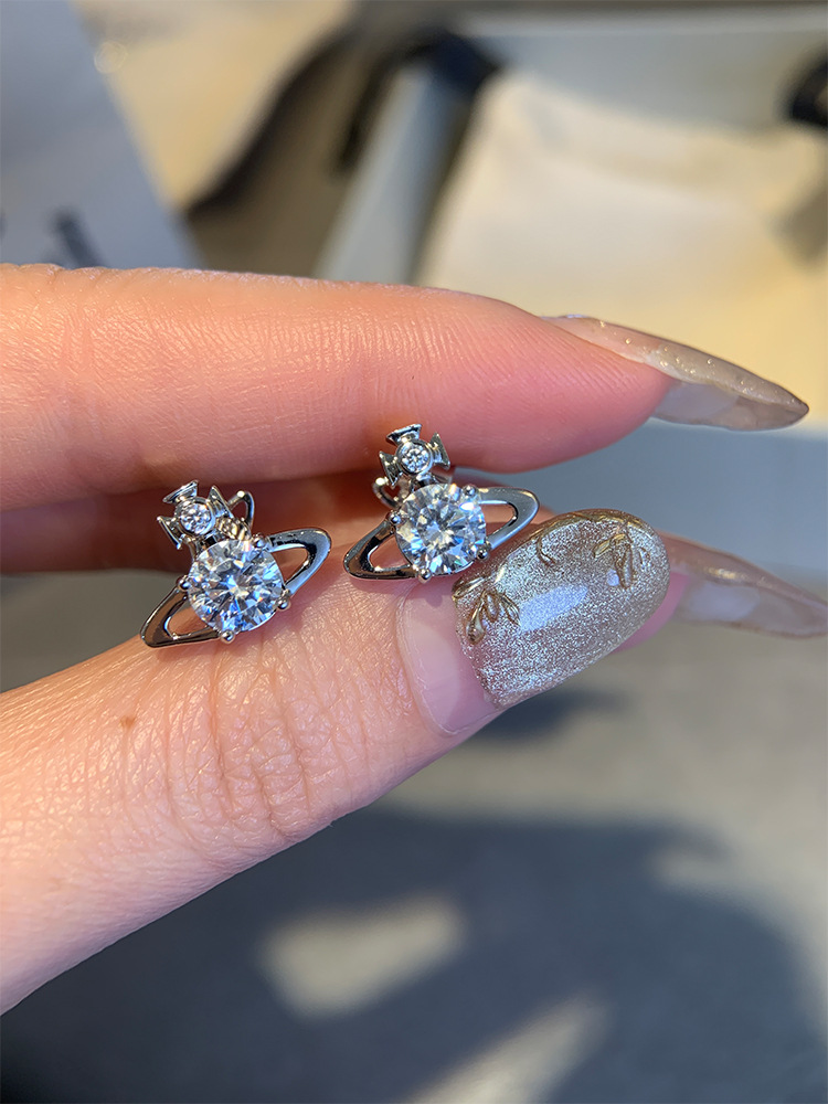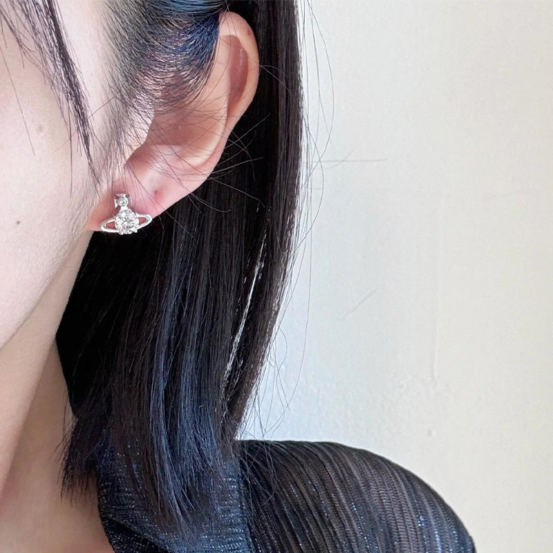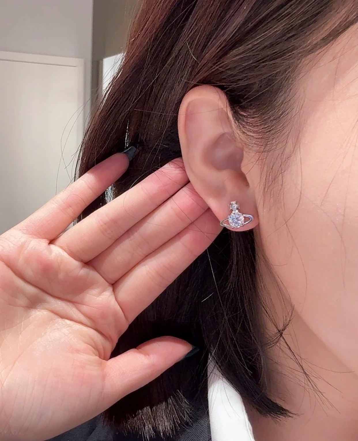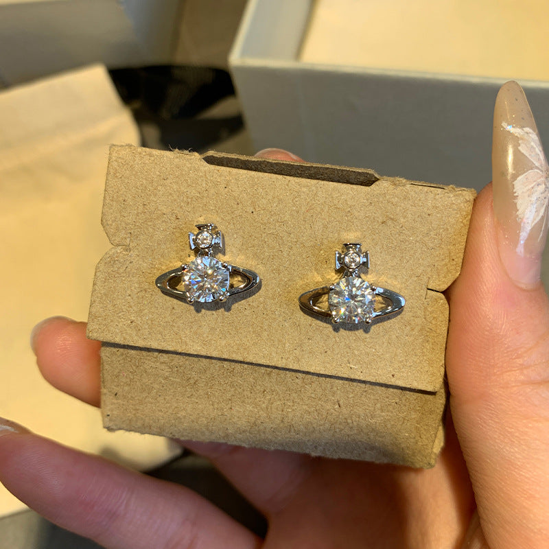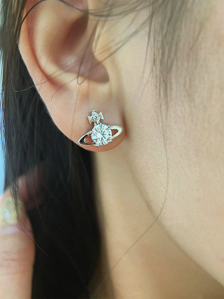 The new Queen Mother Reyna Saturn Stud Earrings are classic shiny solitaire star sparkle minimalist commuter style earrings