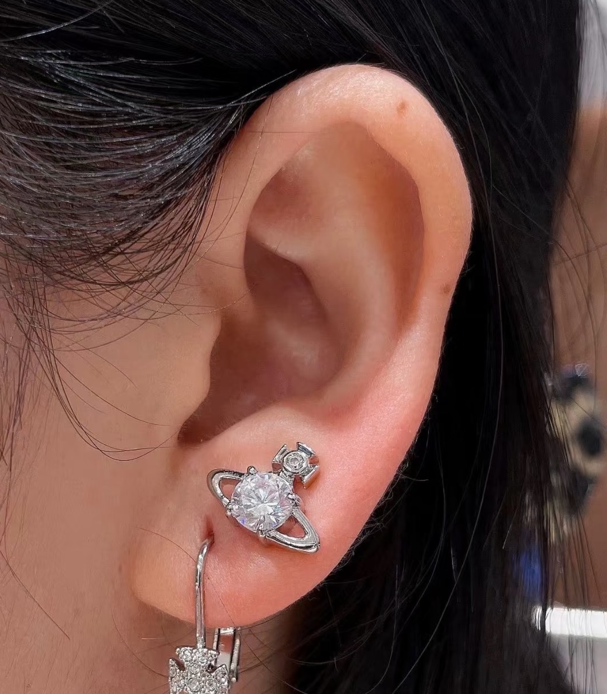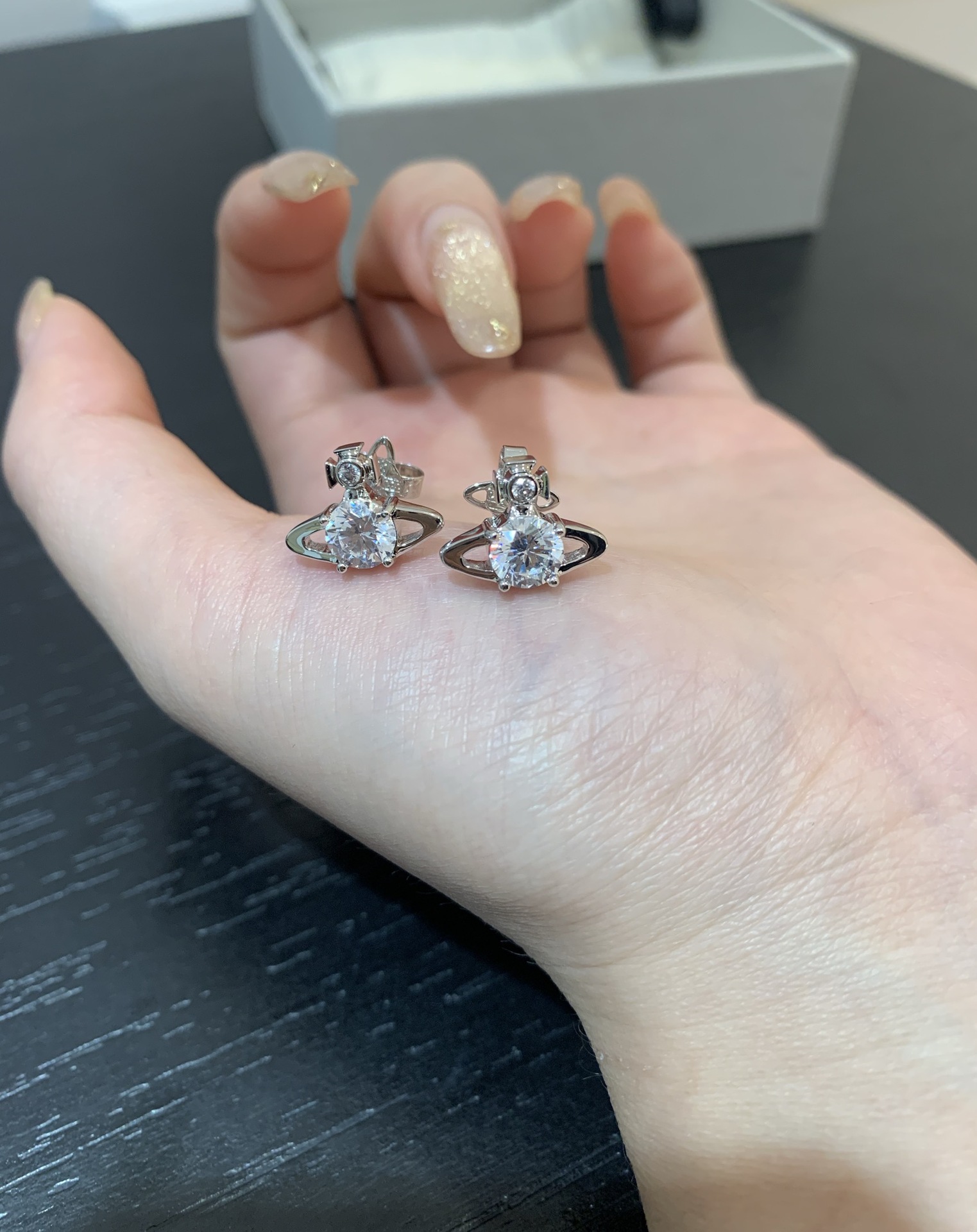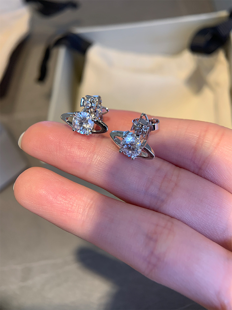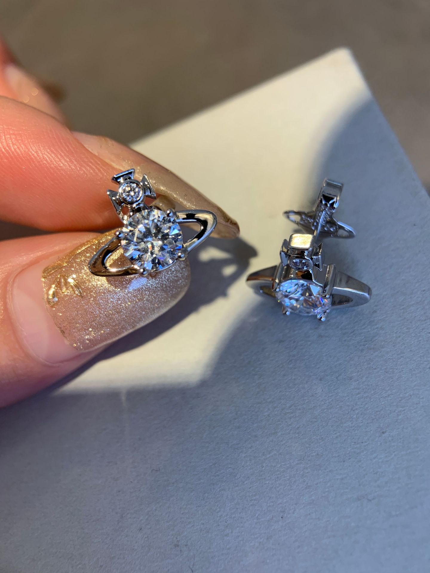 The new Queen Mother Reyna Saturn Stud Earrings are classic shiny solitaire star sparkle minimalist commuter style earrings