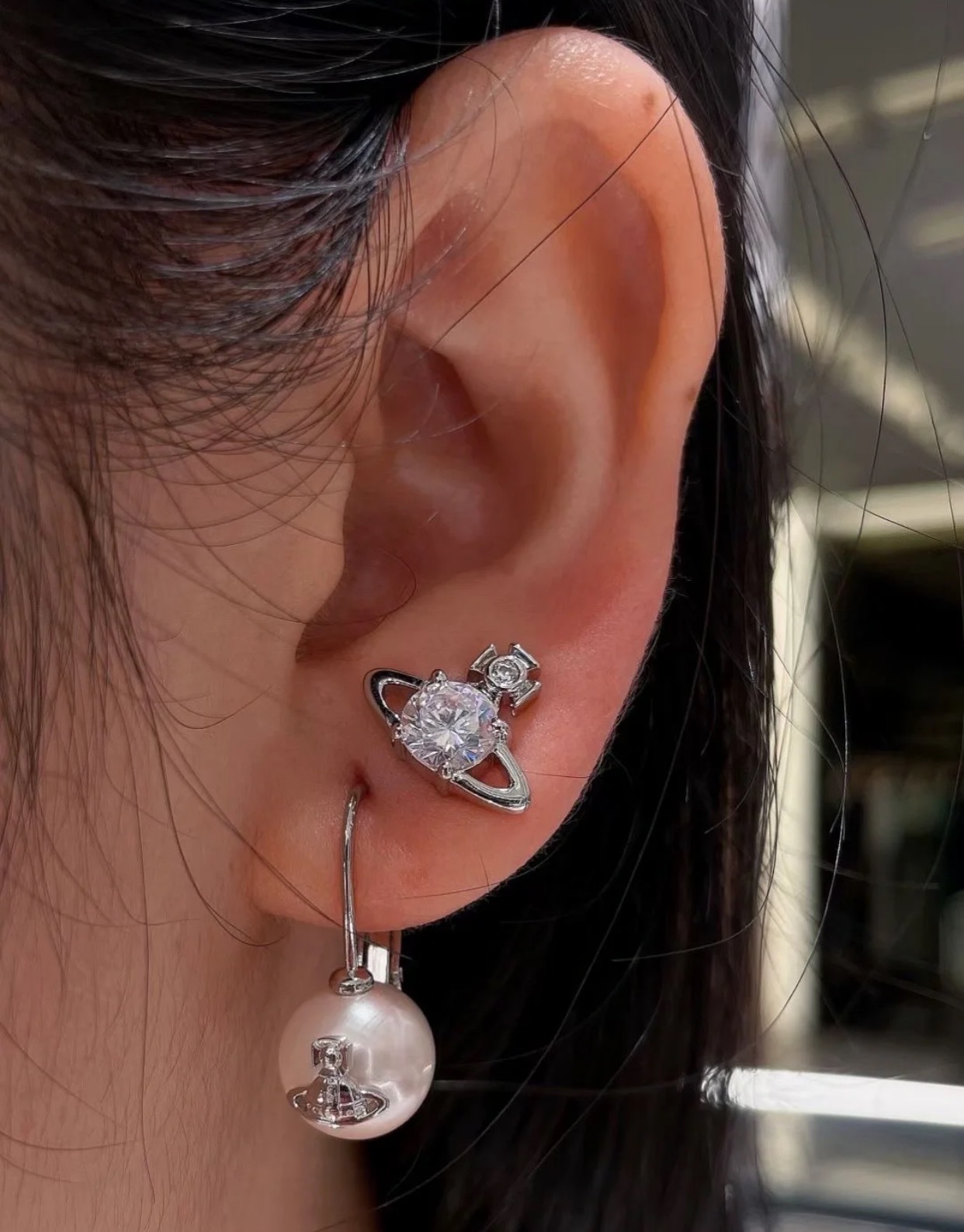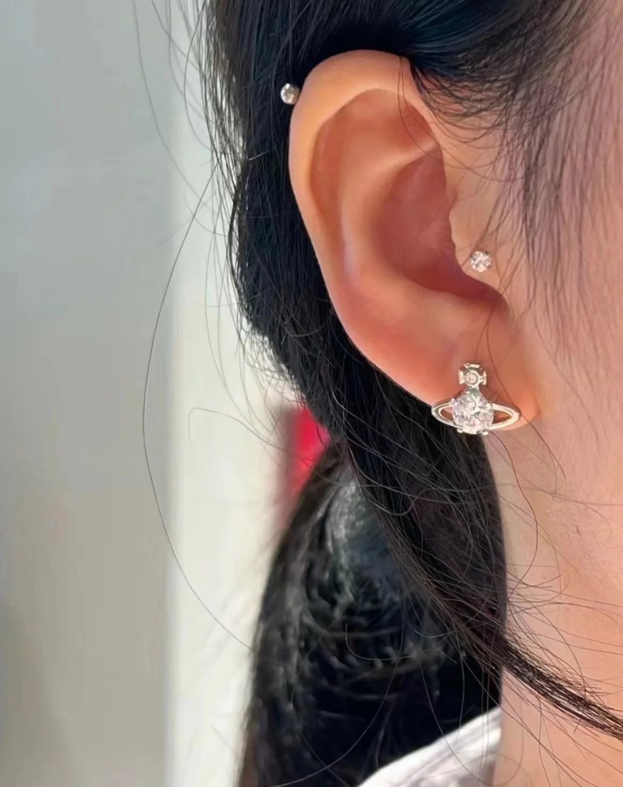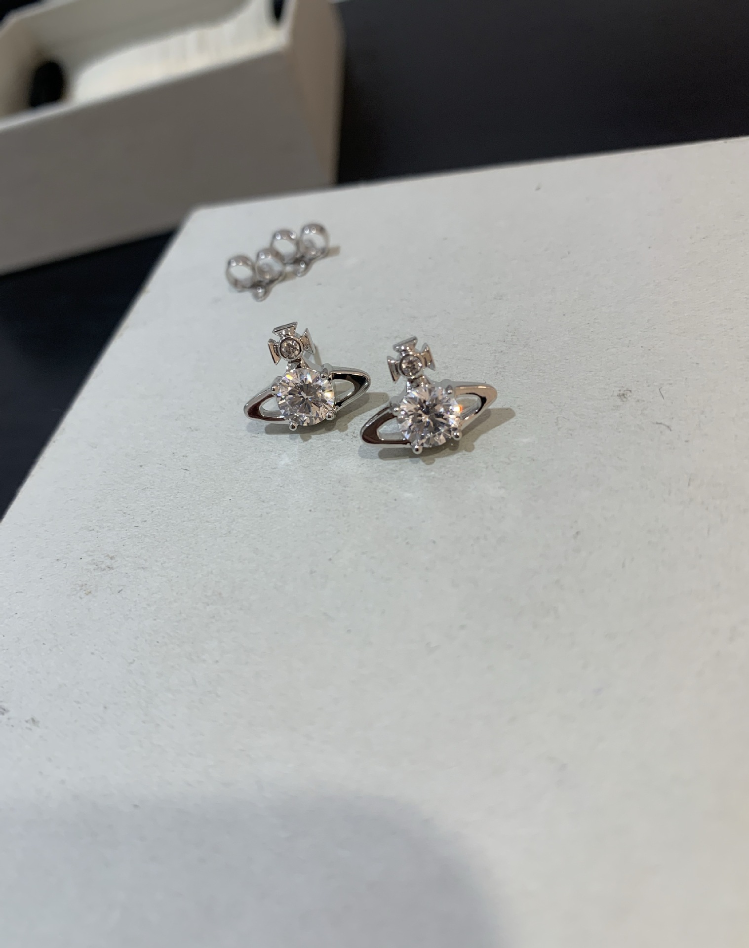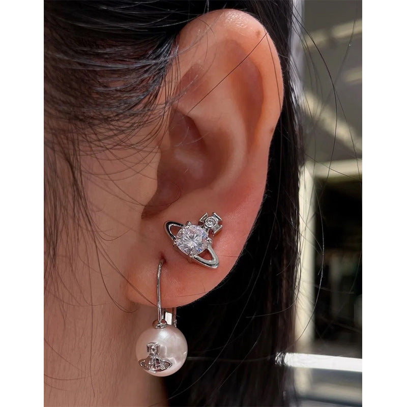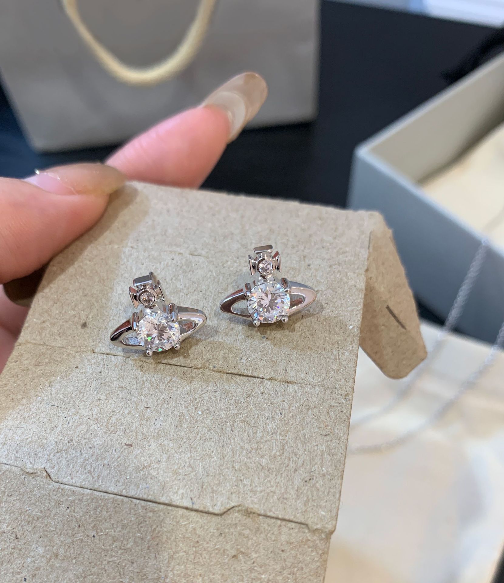 The new Queen Mother Reyna Saturn Stud Earrings are classic shiny solitaire star sparkle minimalist commuter style earrings