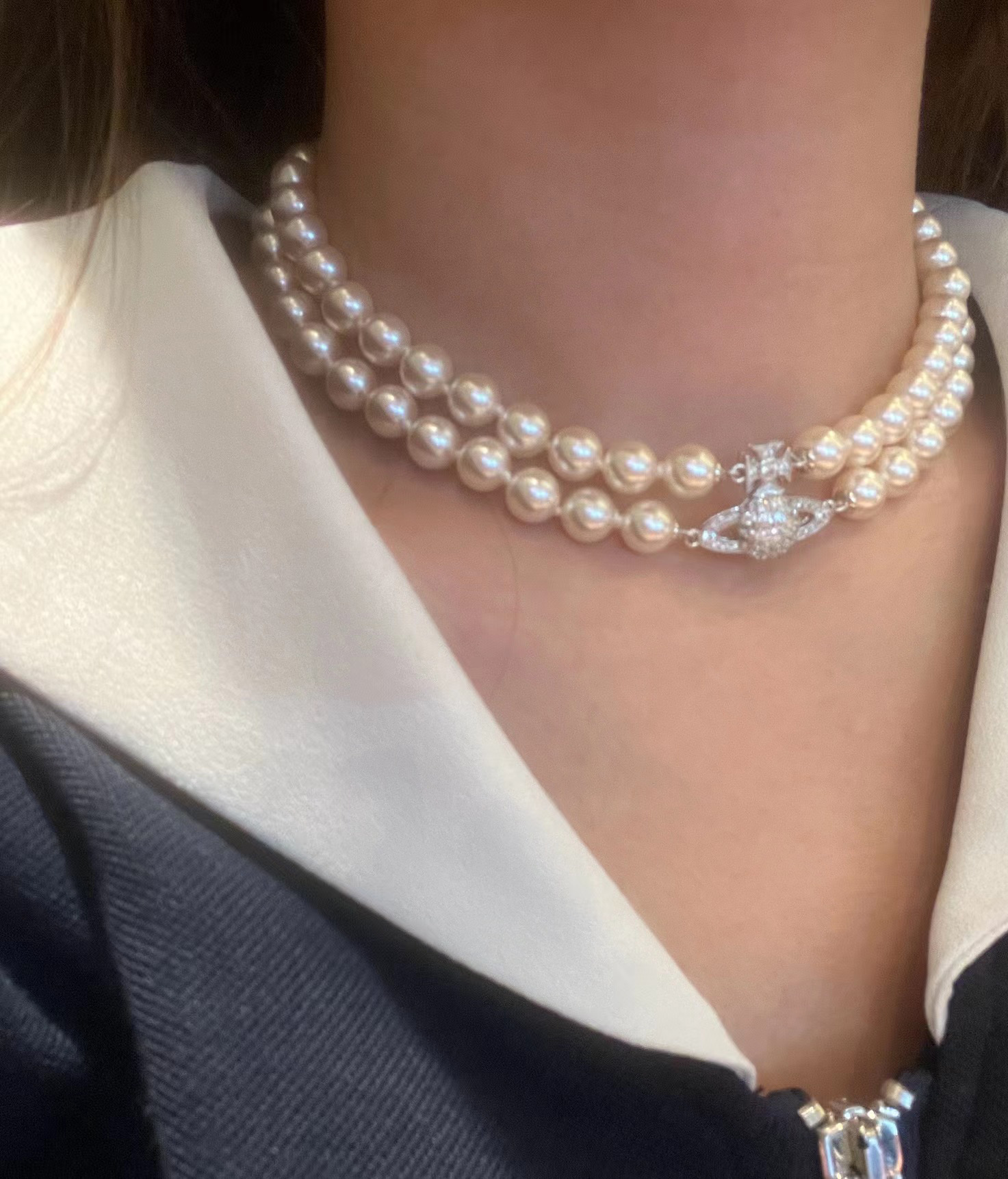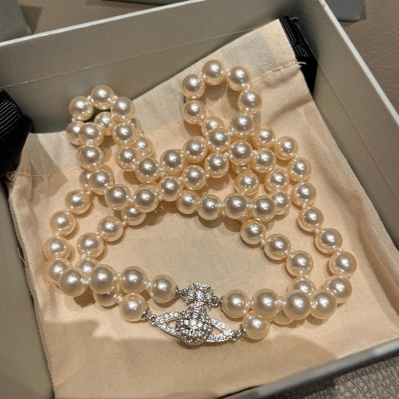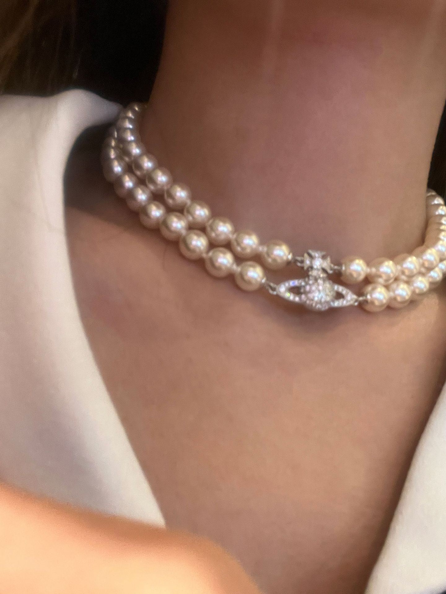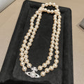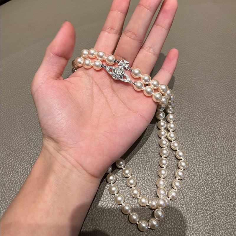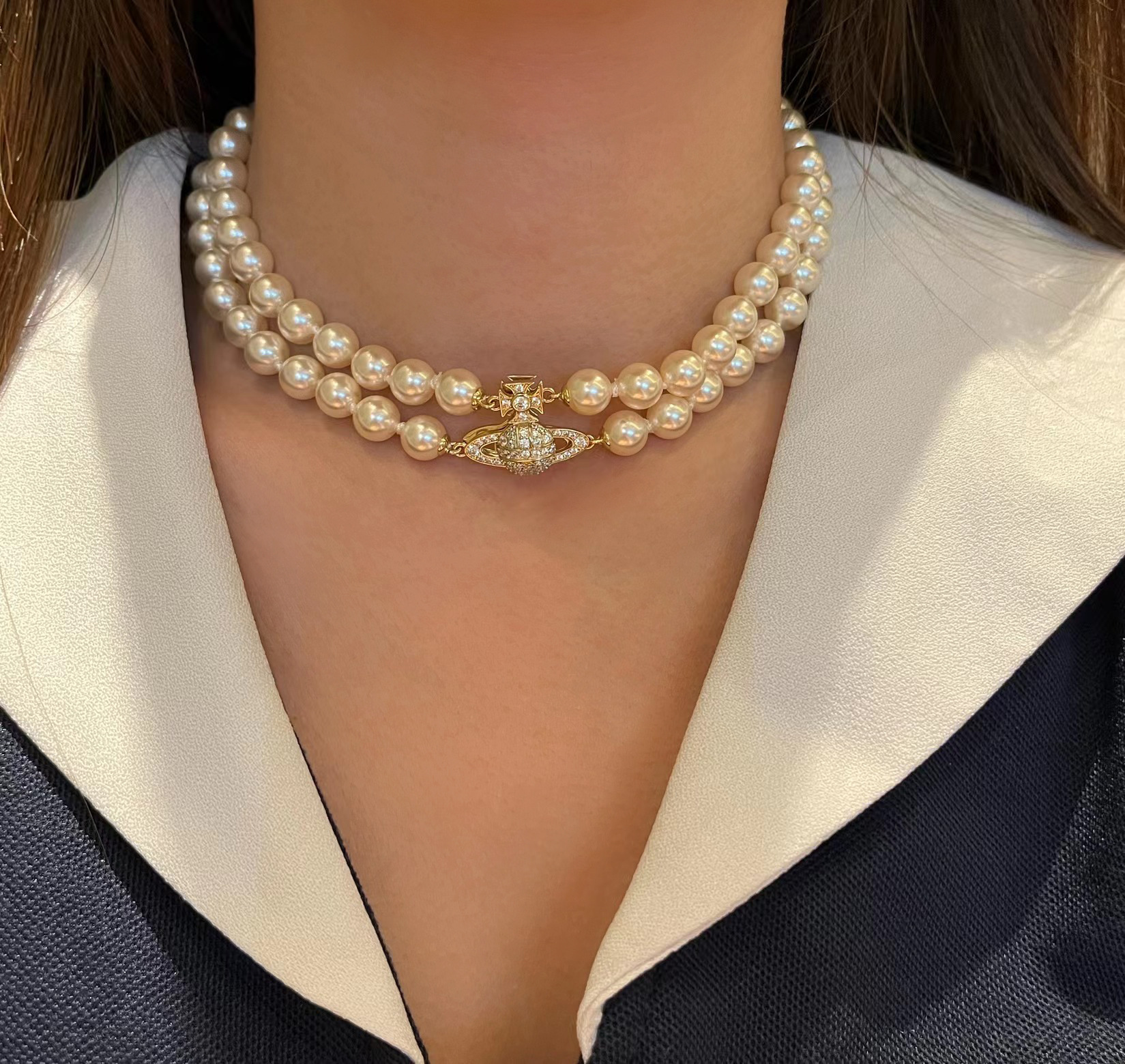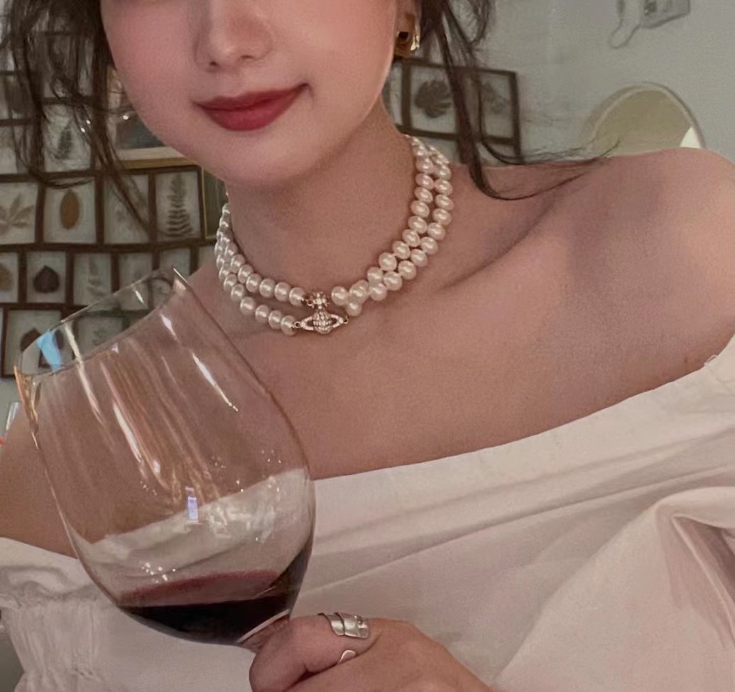 The Queen Mother of the West double-layer pearl retro vintage temperament inlaid with gold-plated diamond Saturn necklace choker