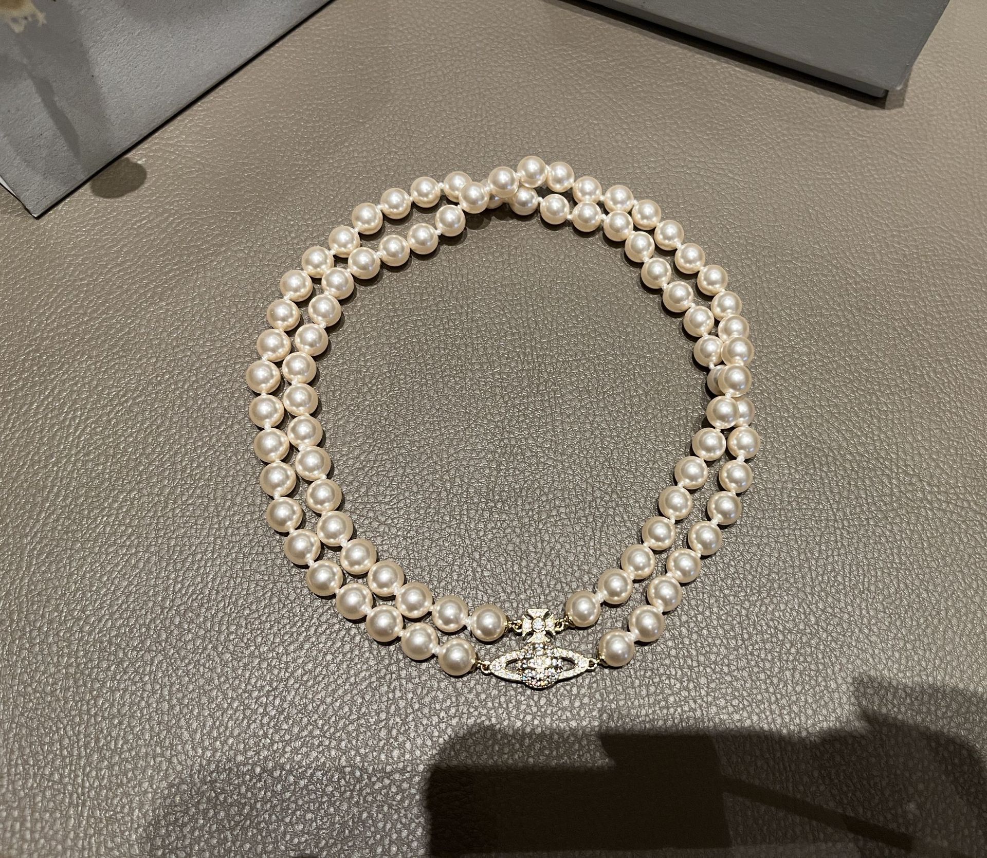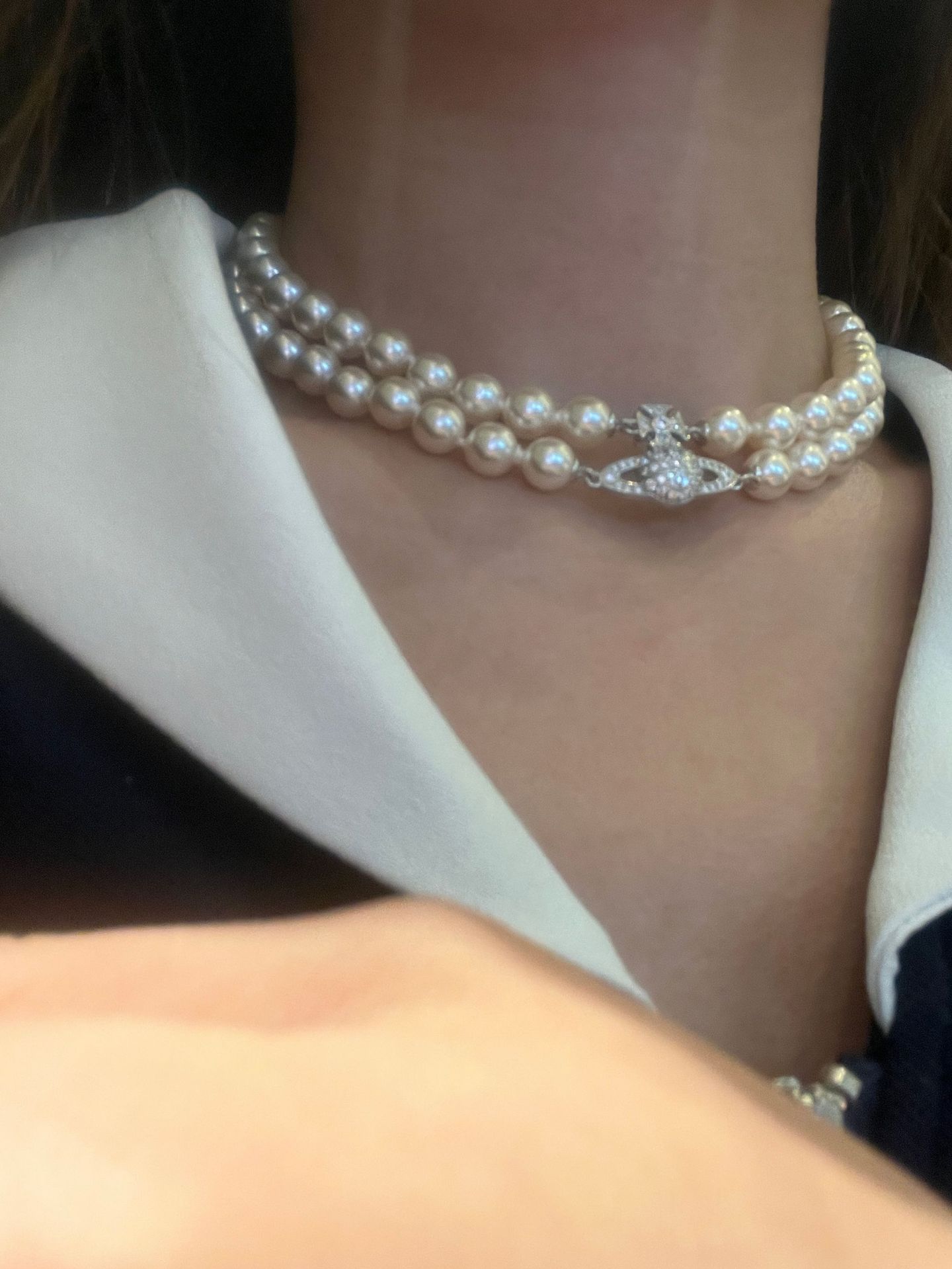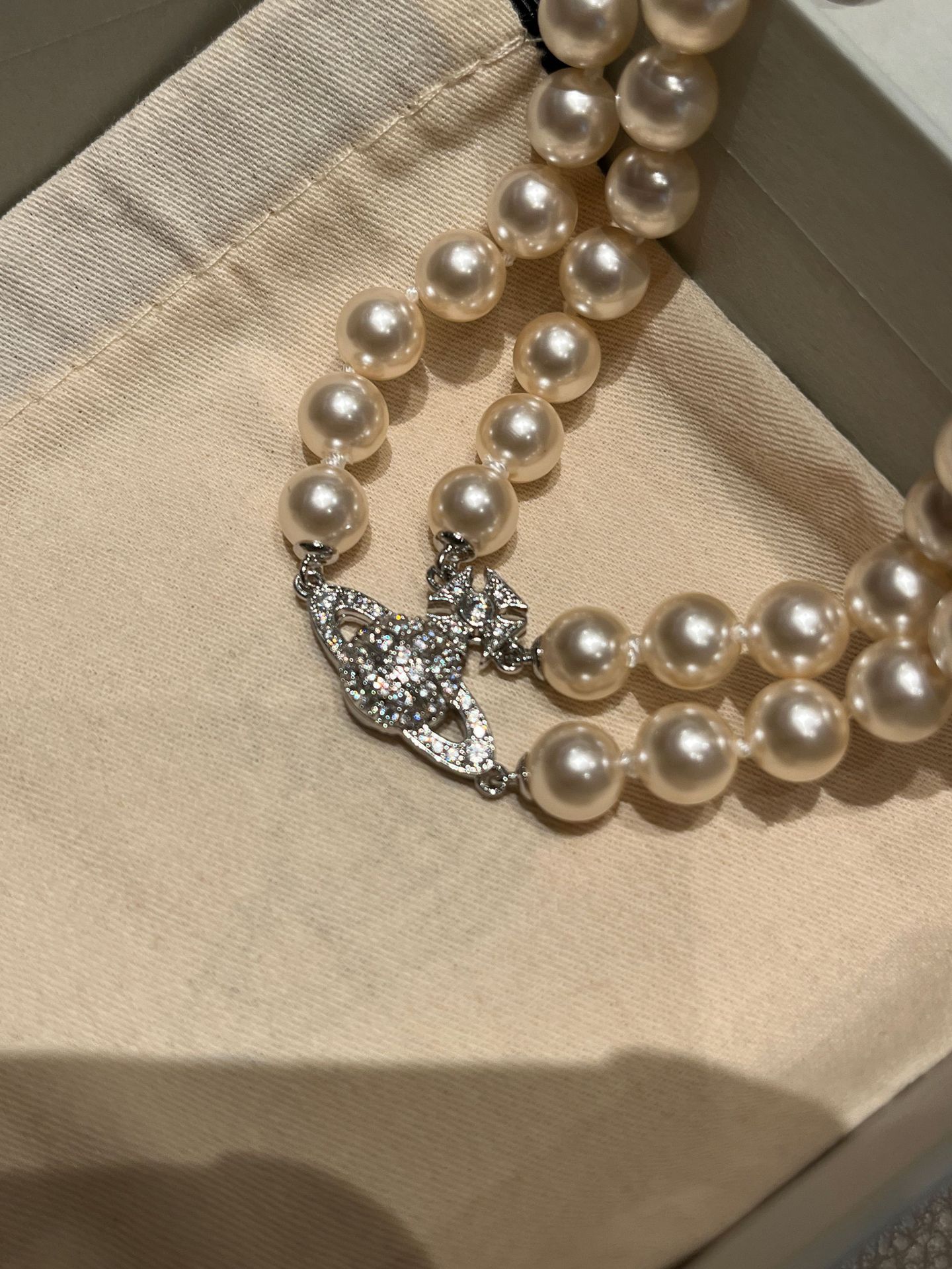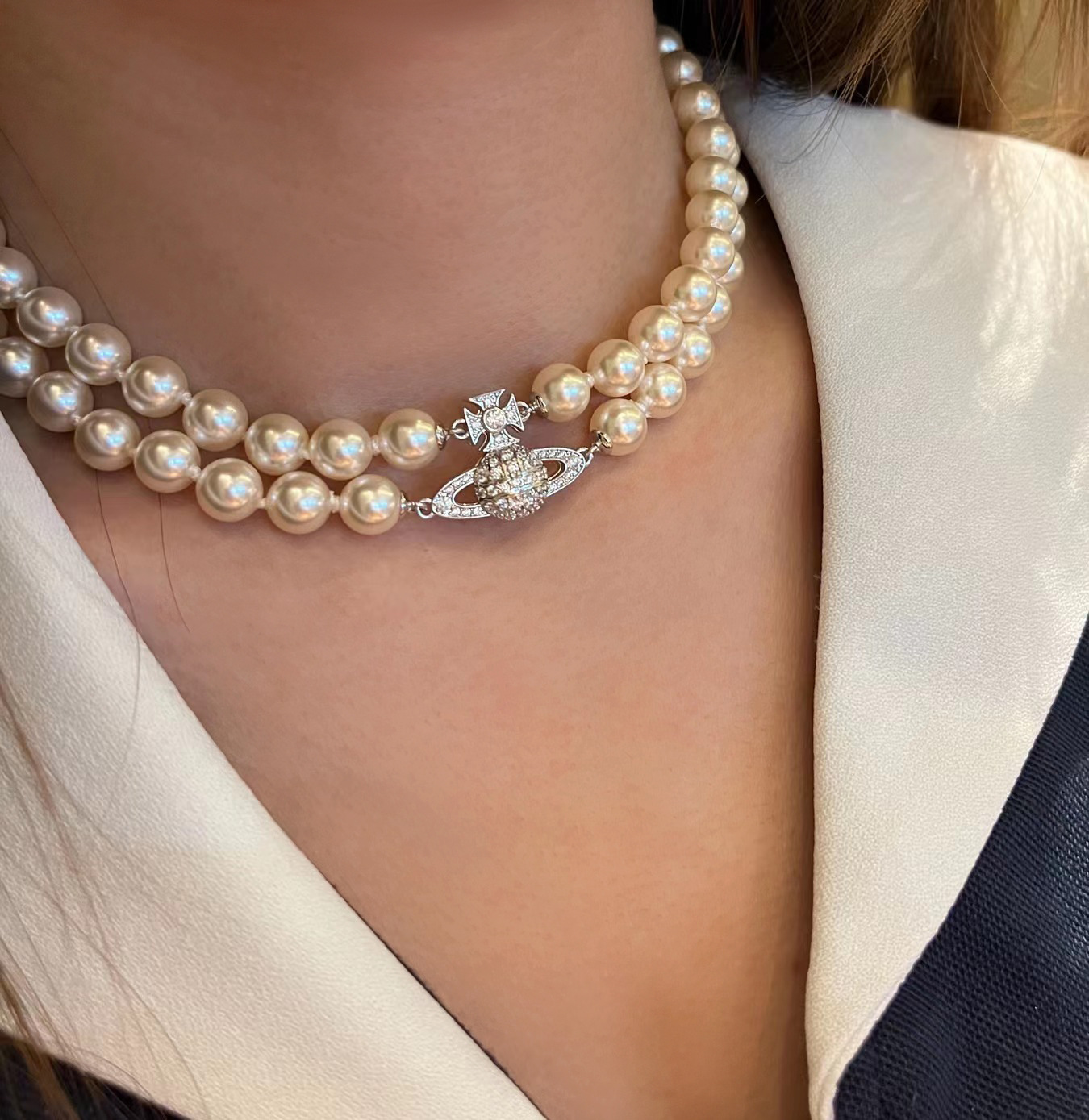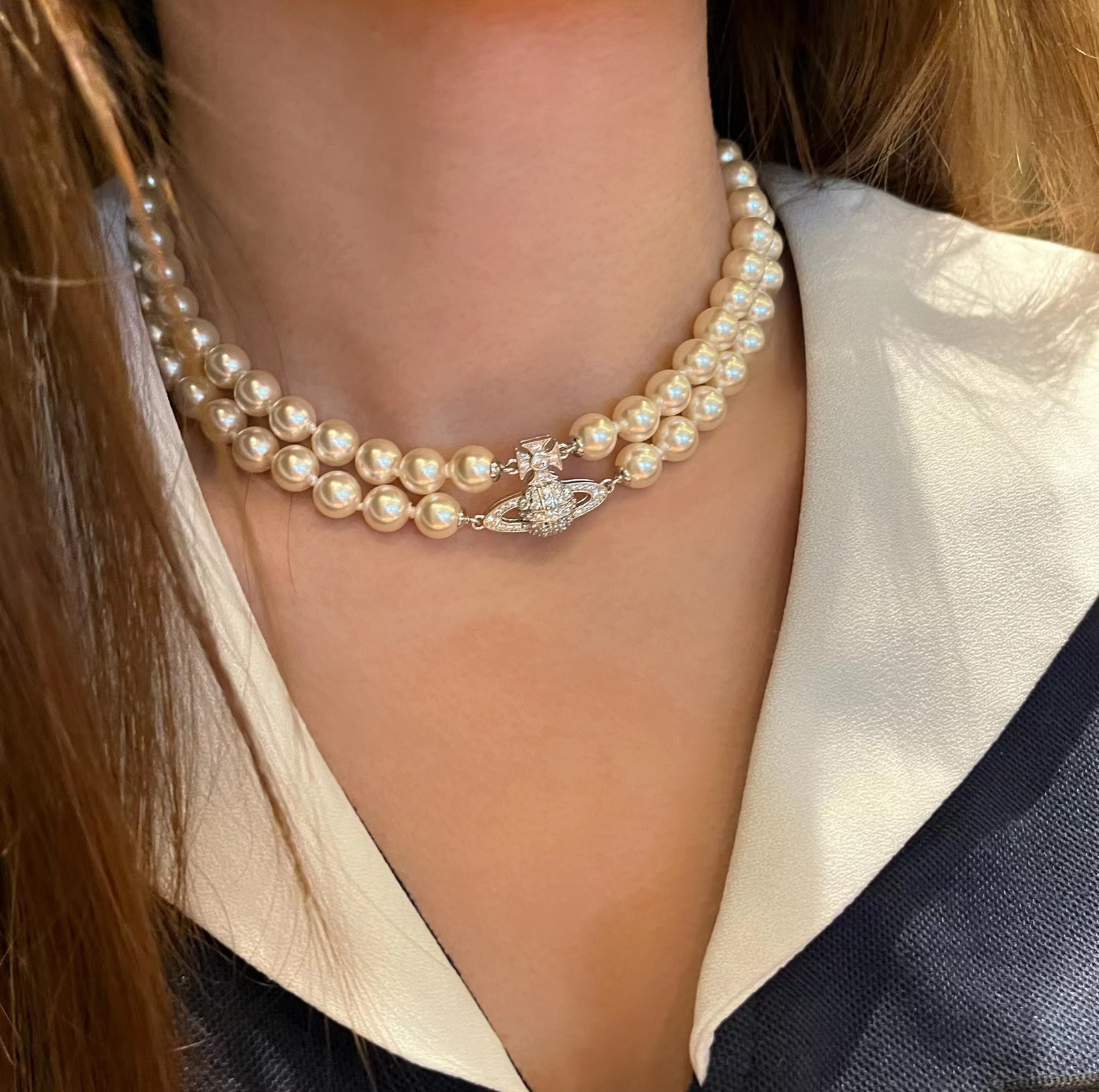 The Queen Mother of the West double-layer pearl retro vintage temperament inlaid with gold-plated diamond Saturn necklace choker