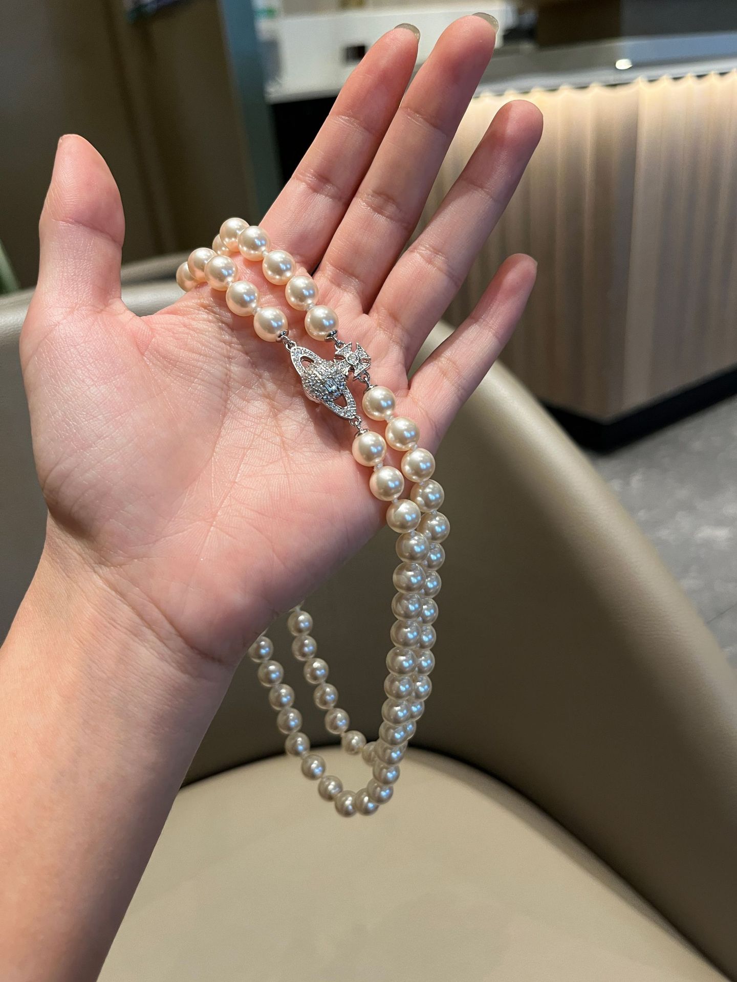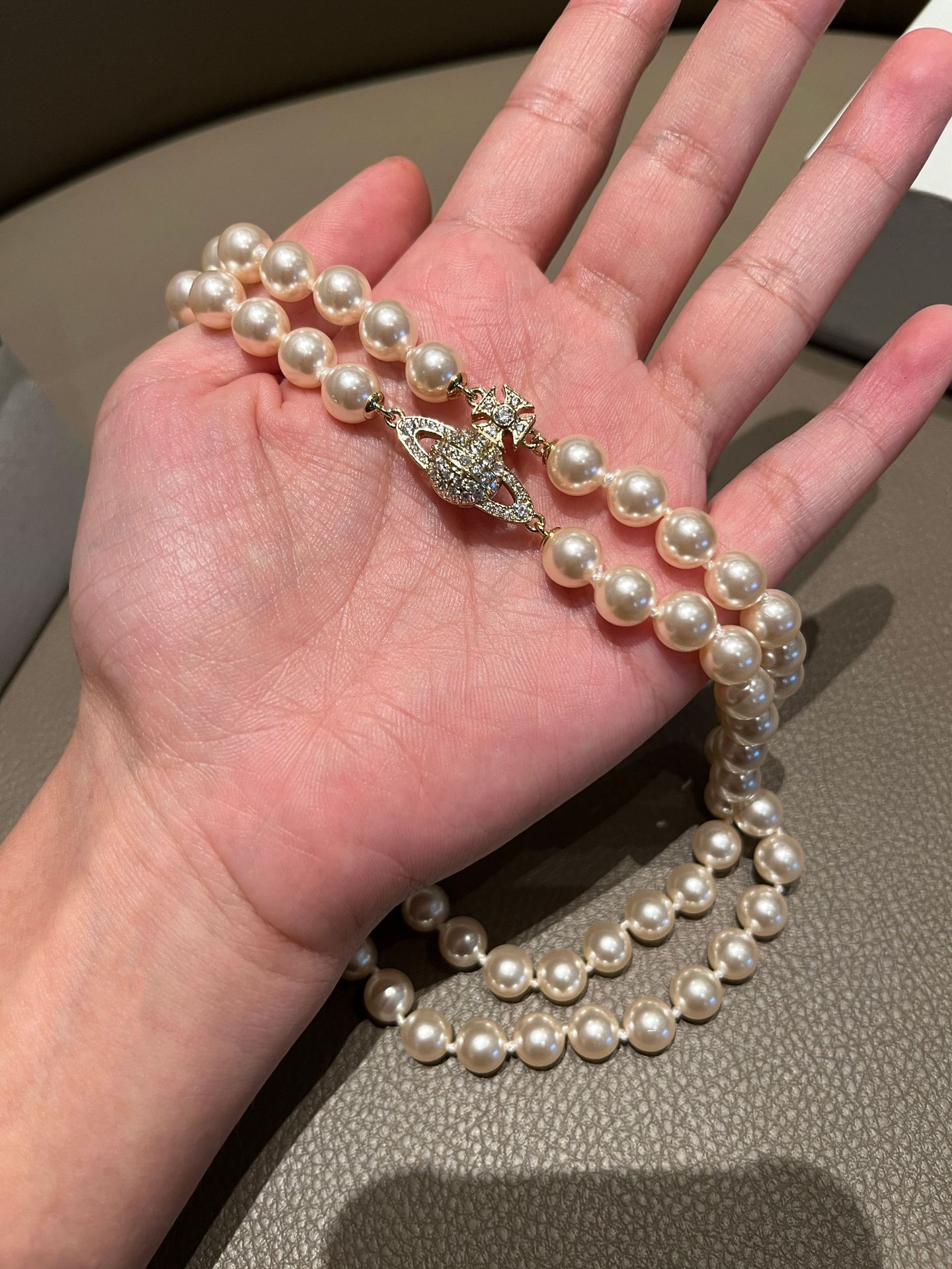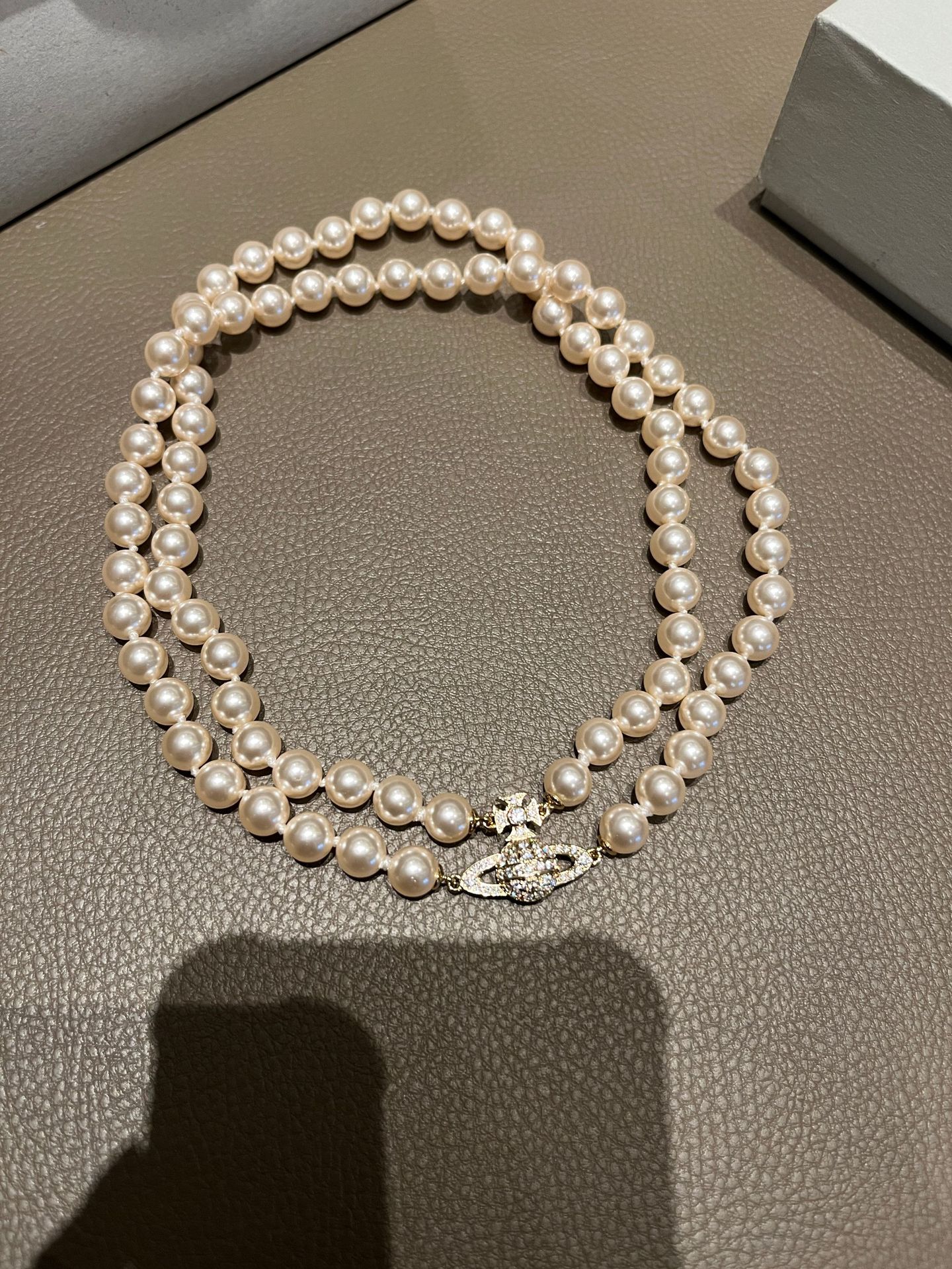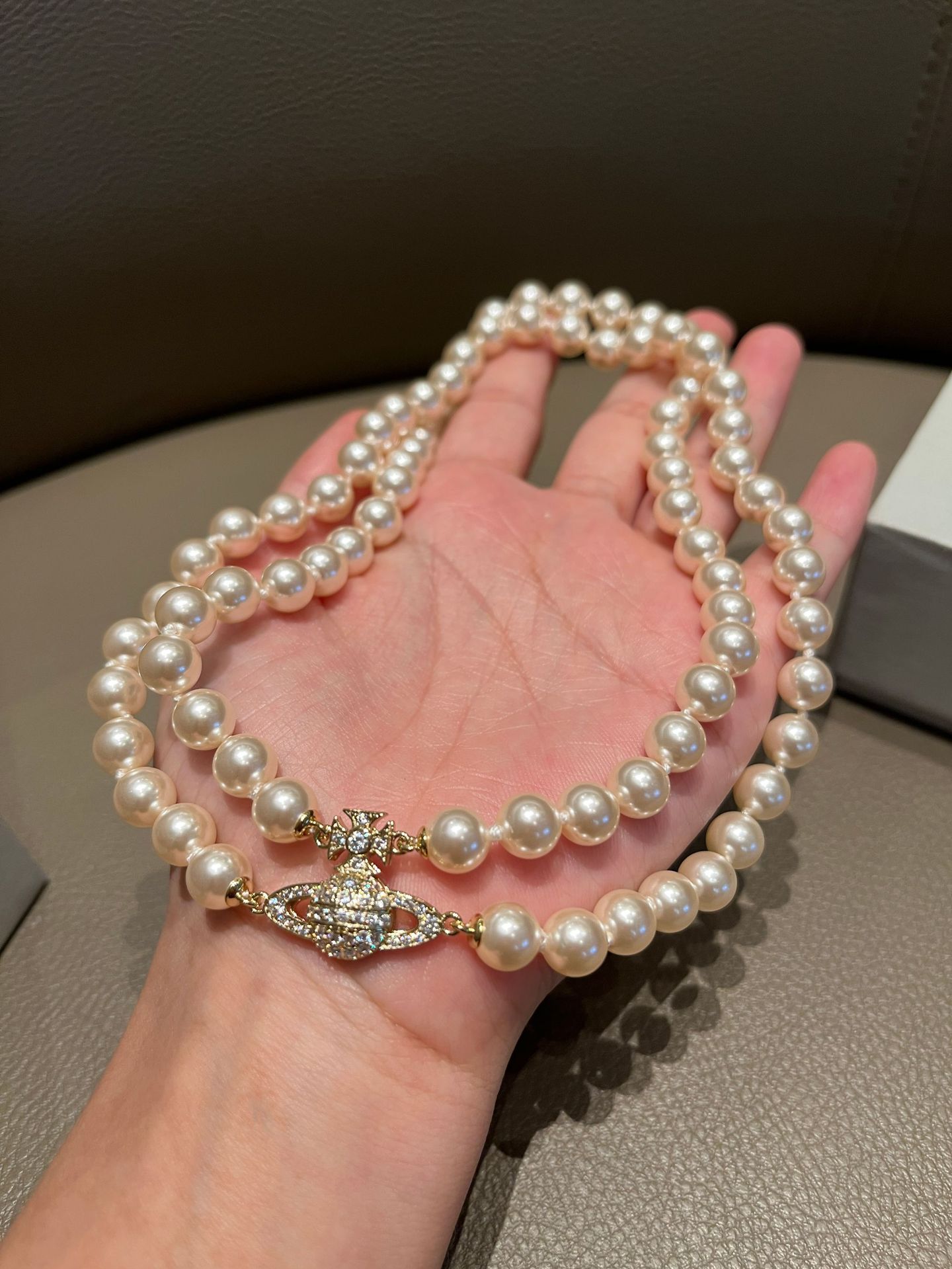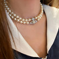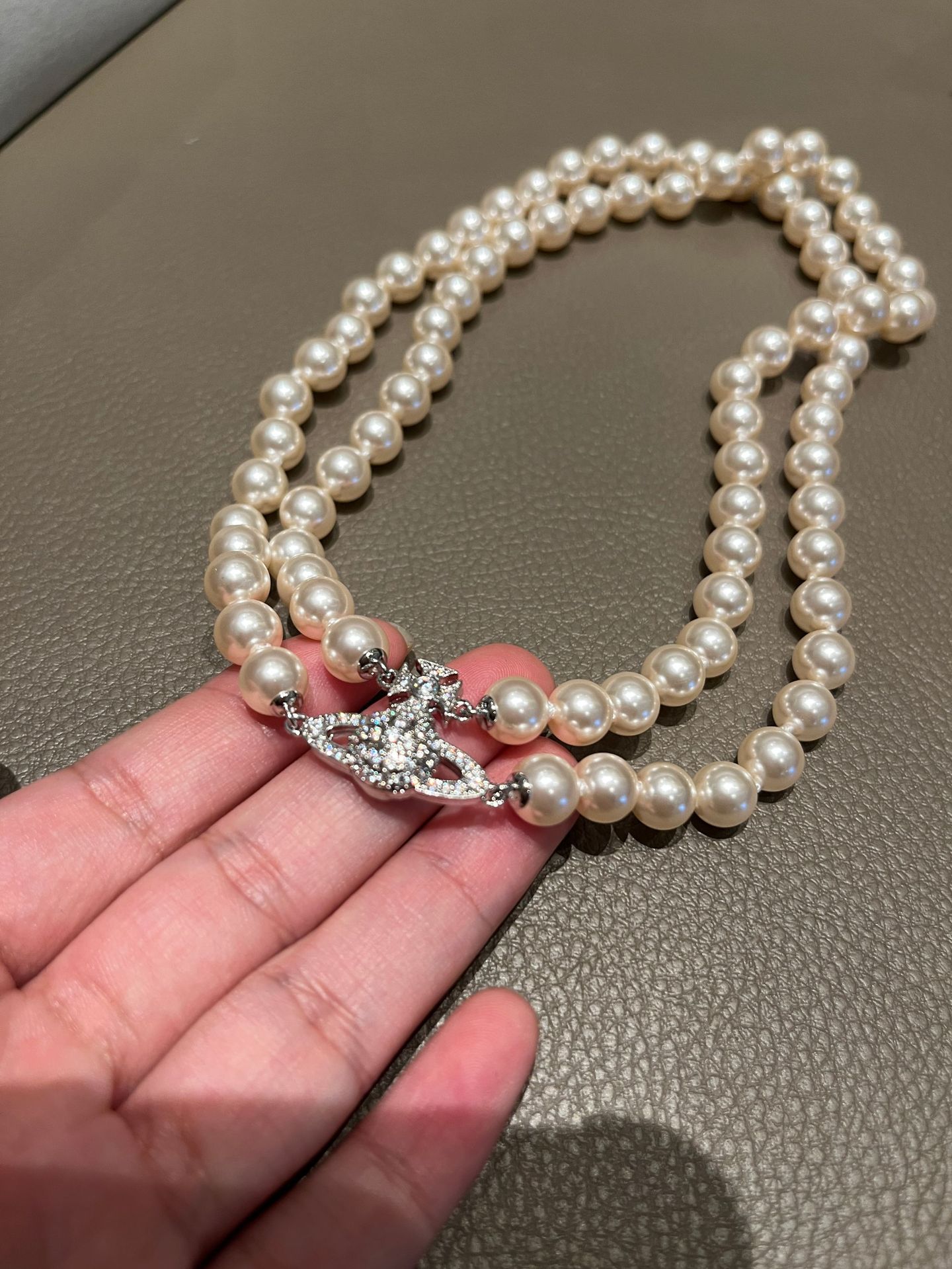 The Queen Mother of the West double-layer pearl retro vintage temperament inlaid with gold-plated diamond Saturn necklace choker