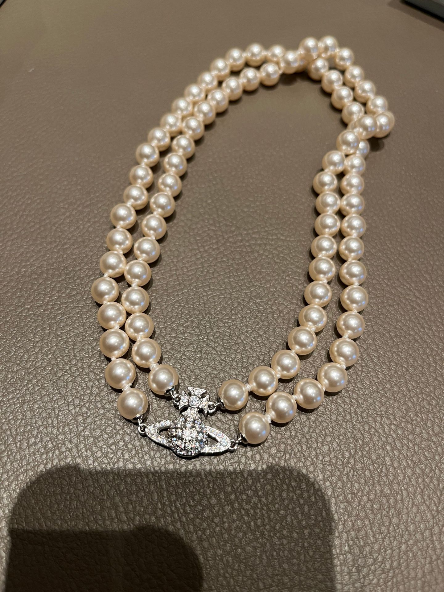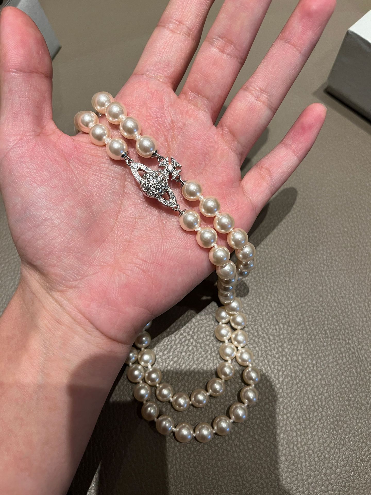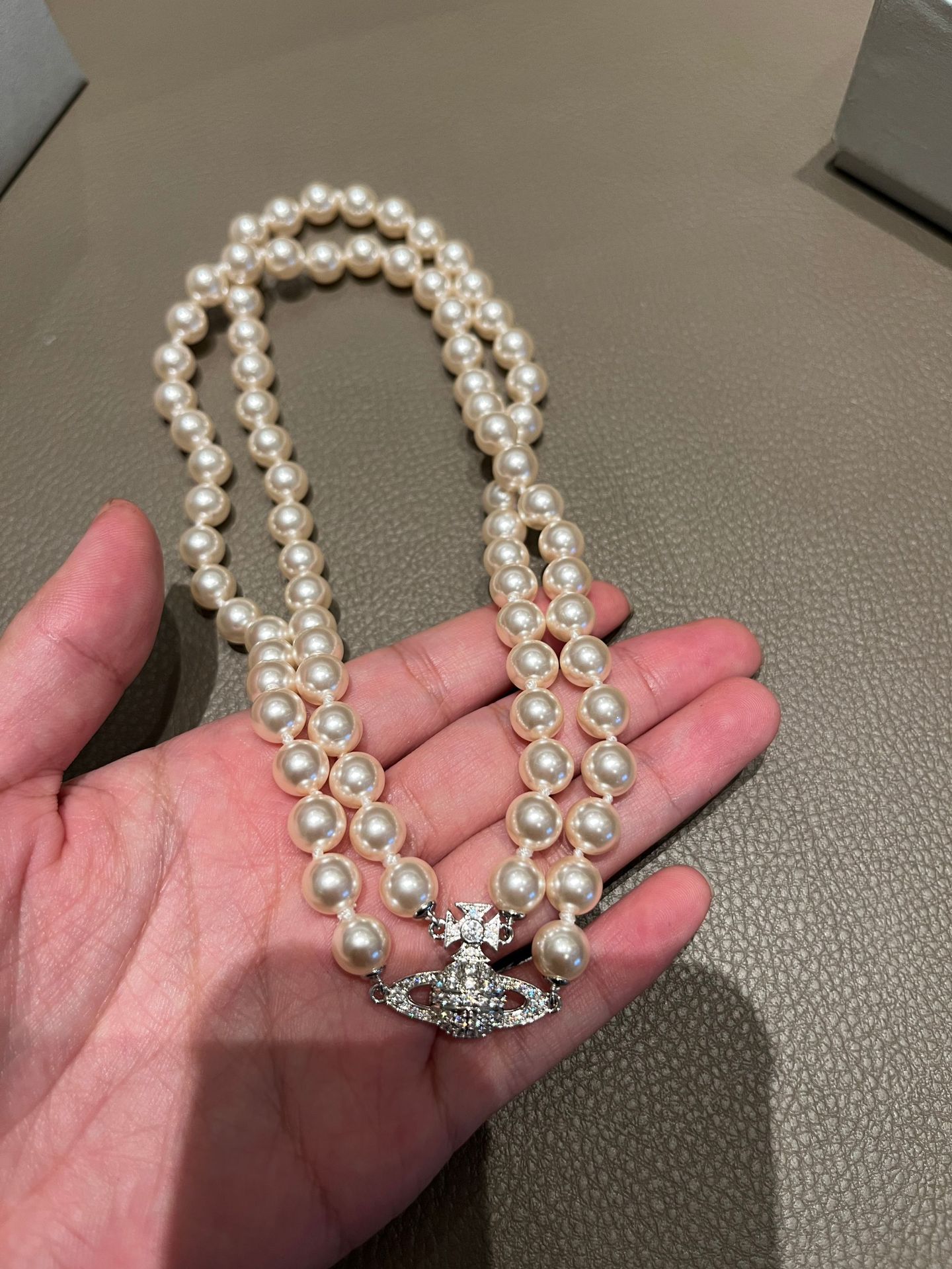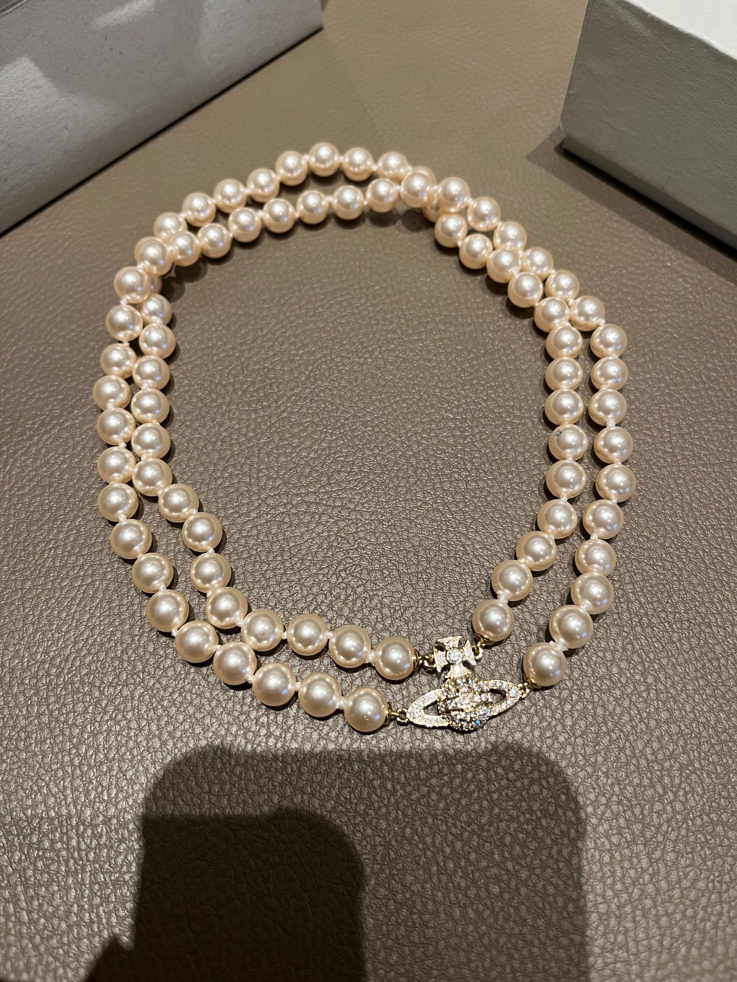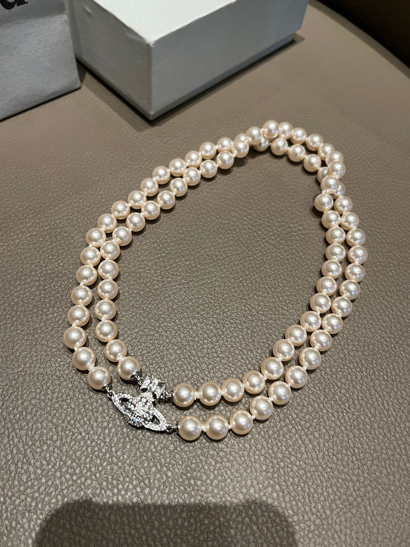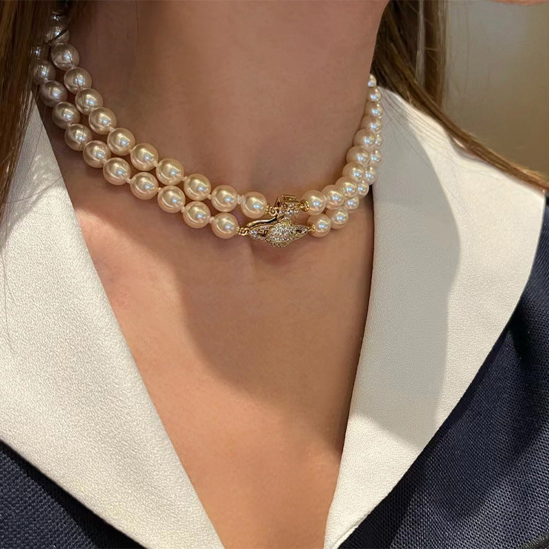 The Queen Mother of the West double-layer pearl retro vintage temperament inlaid with gold-plated diamond Saturn necklace choker