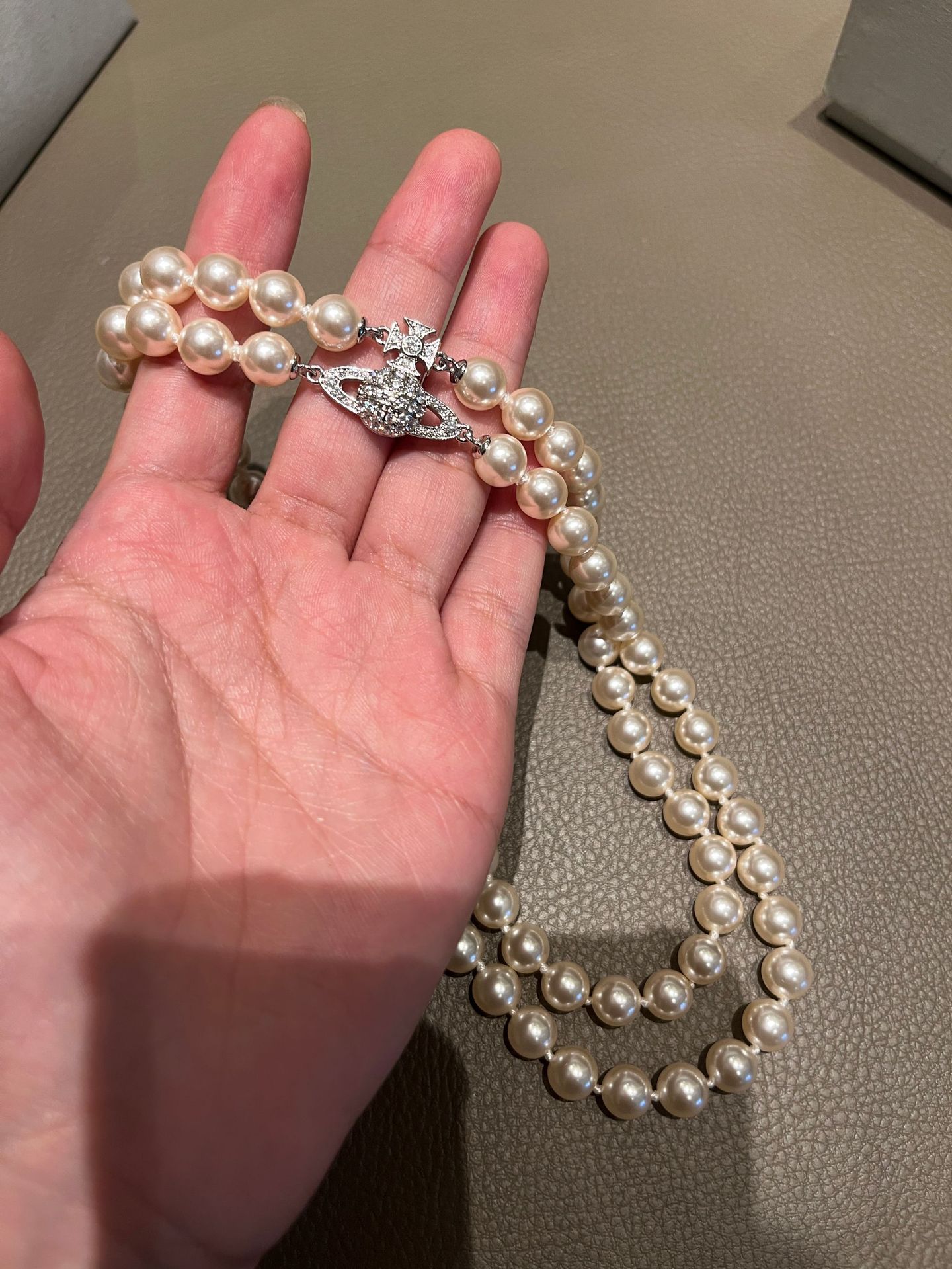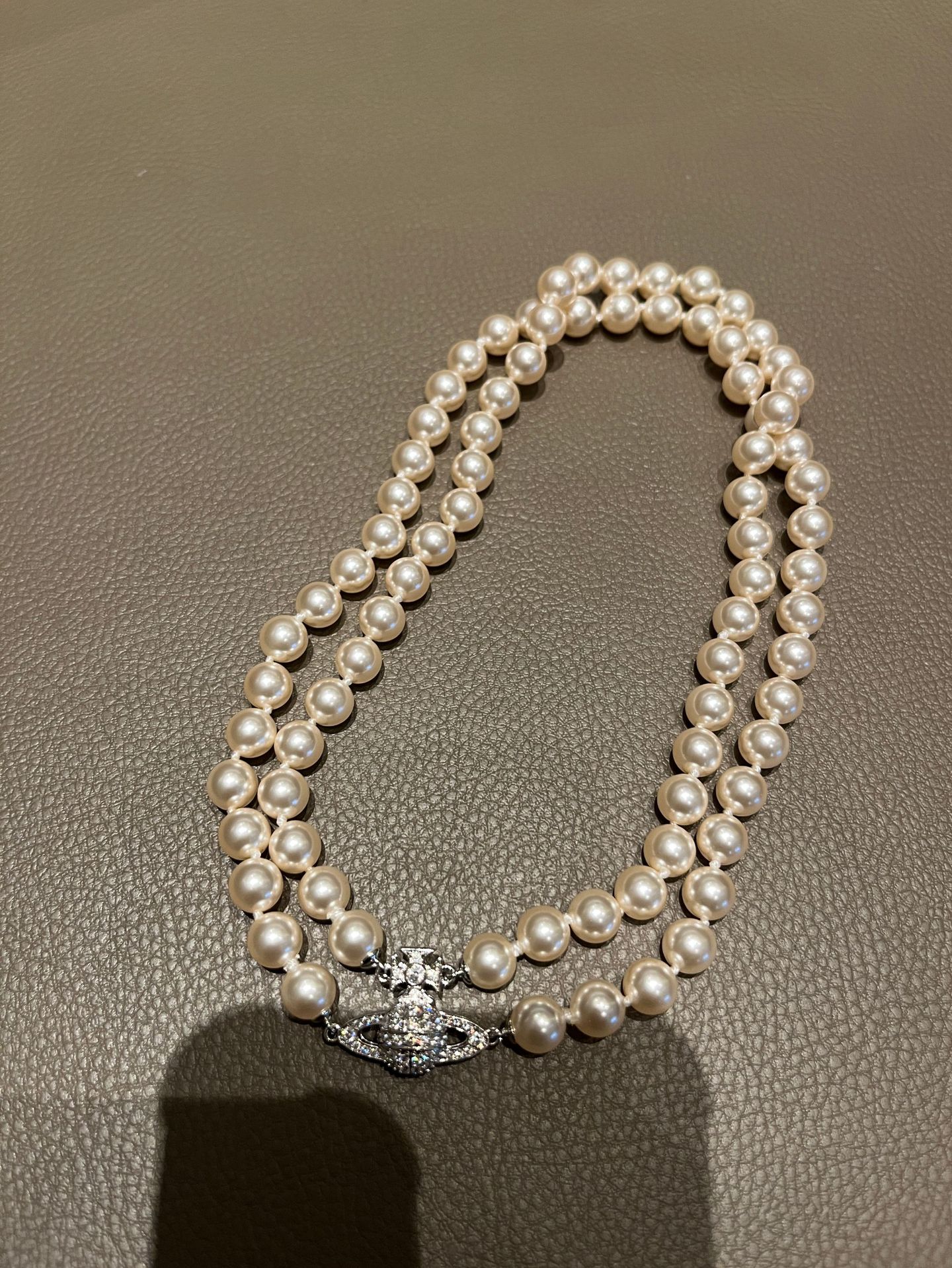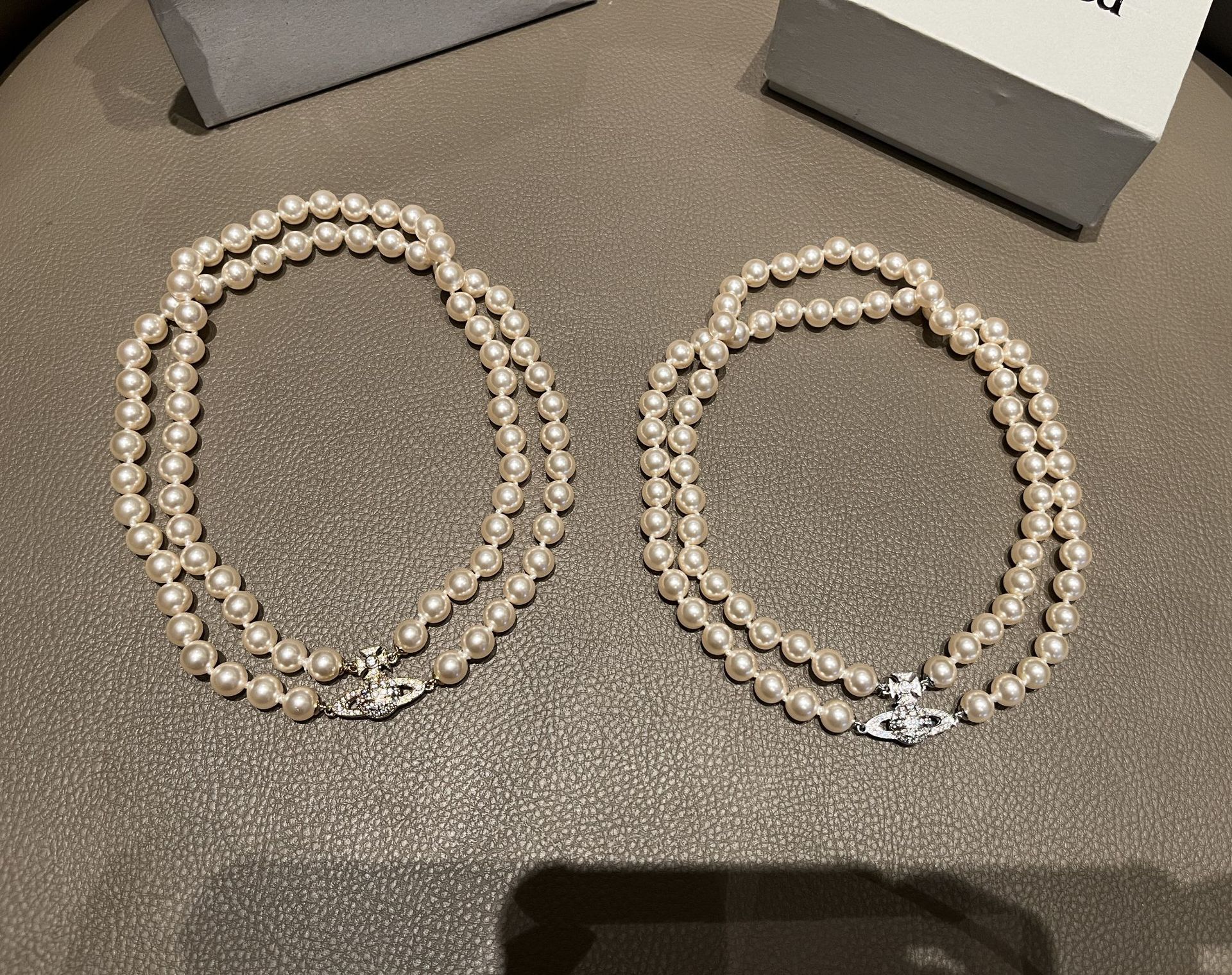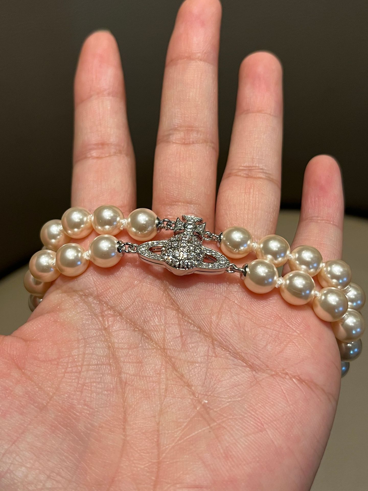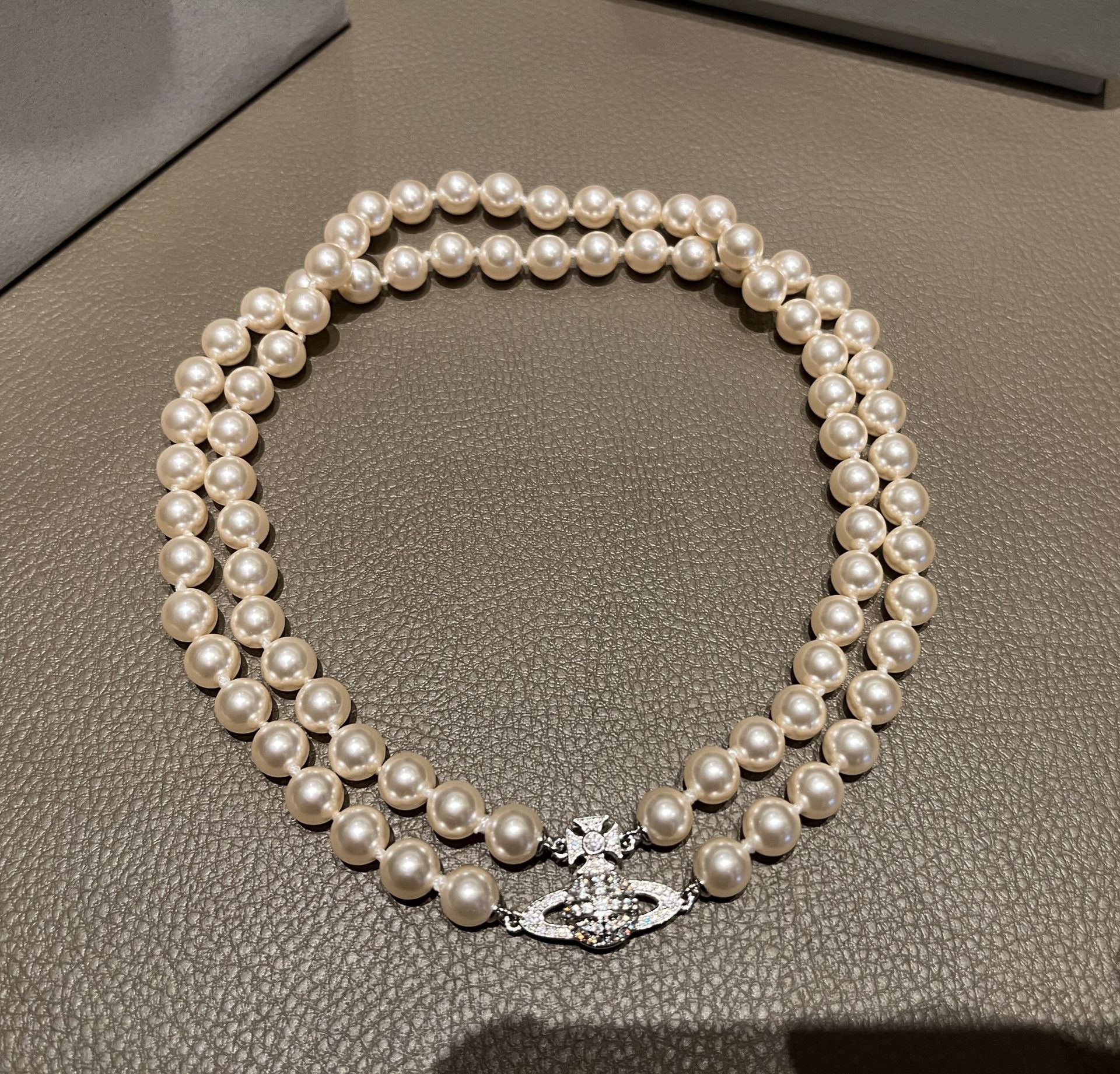 The Queen Mother of the West double-layer pearl retro vintage temperament inlaid with gold-plated diamond Saturn necklace choker