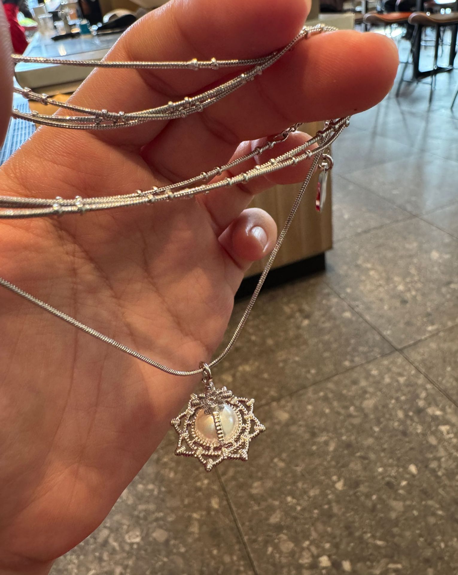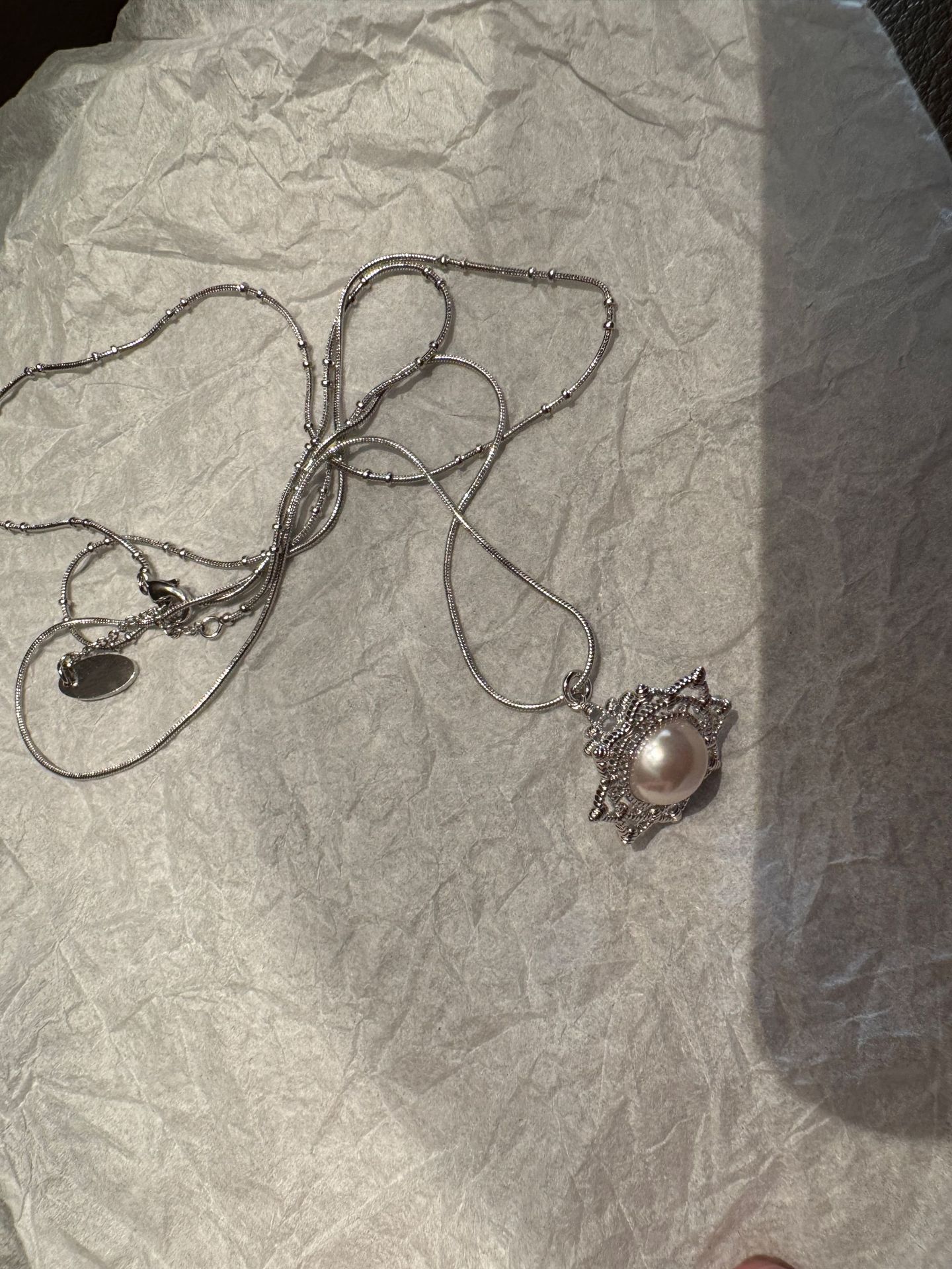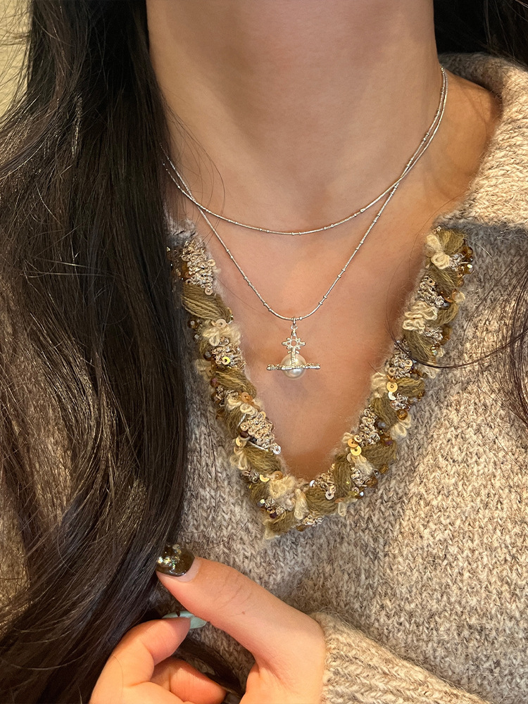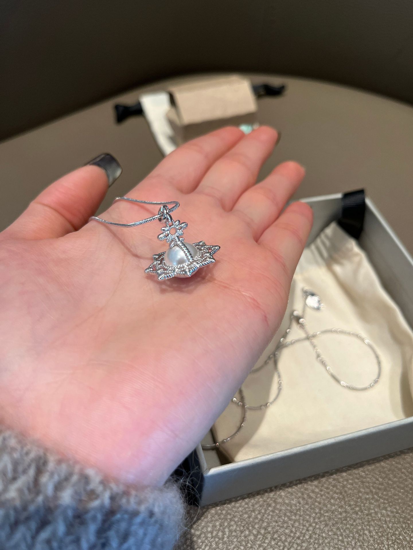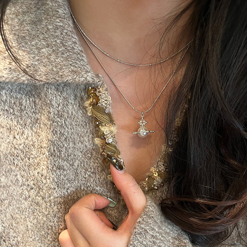 The Queen Mother of the West medieval weaving court wind and snowflake eight-pointed star pearl orb necklace three-dimensional Saturn pendant long chain