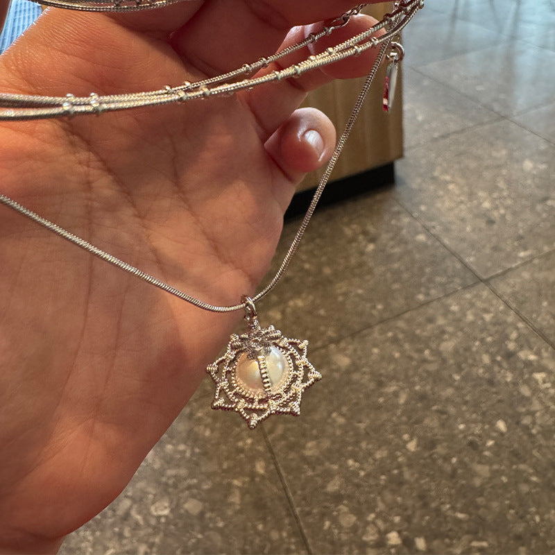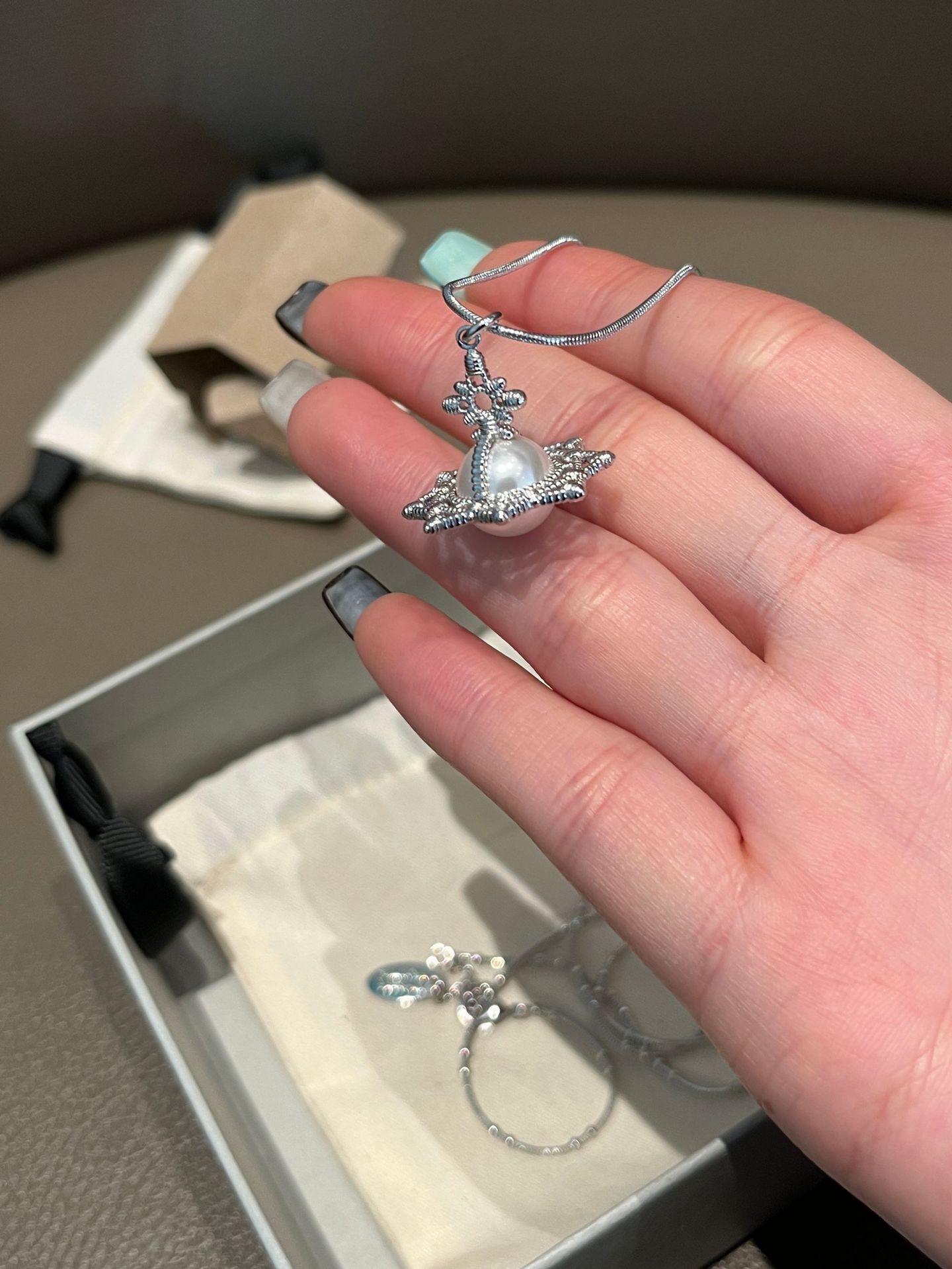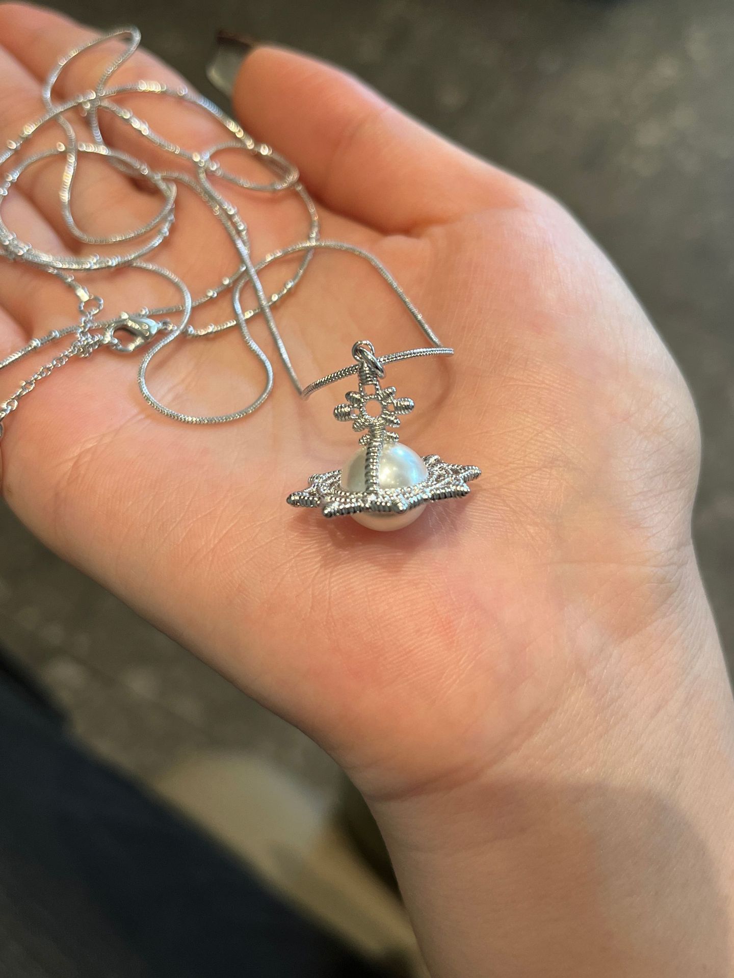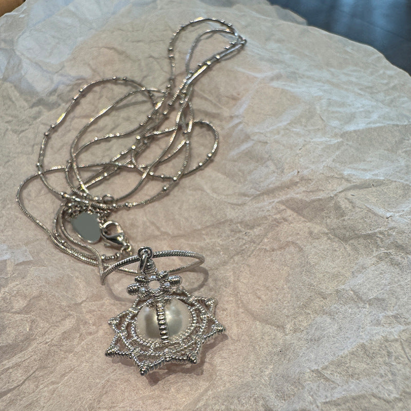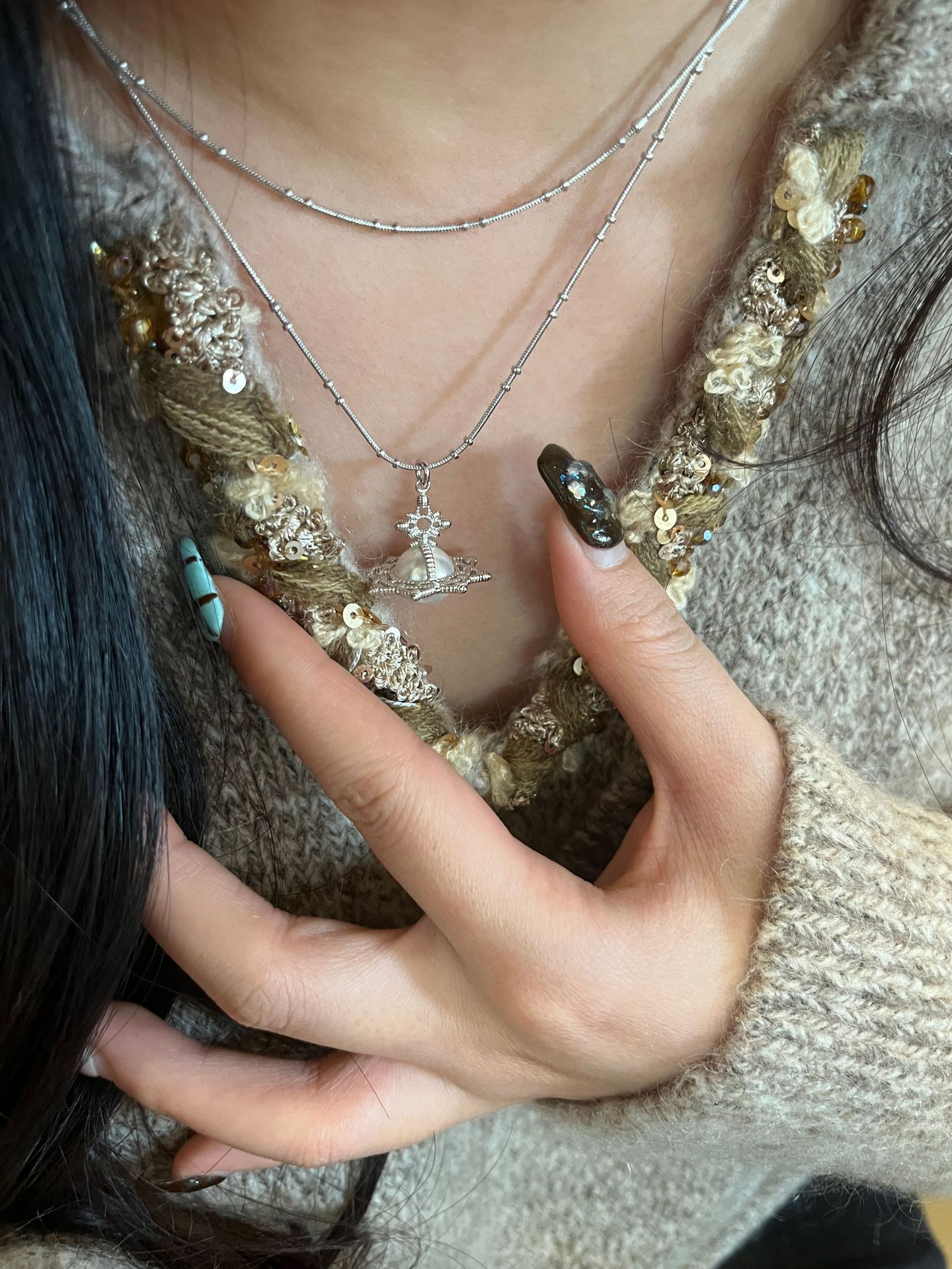 The Queen Mother of the West medieval weaving court wind and snowflake eight-pointed star pearl orb necklace three-dimensional Saturn pendant long chain