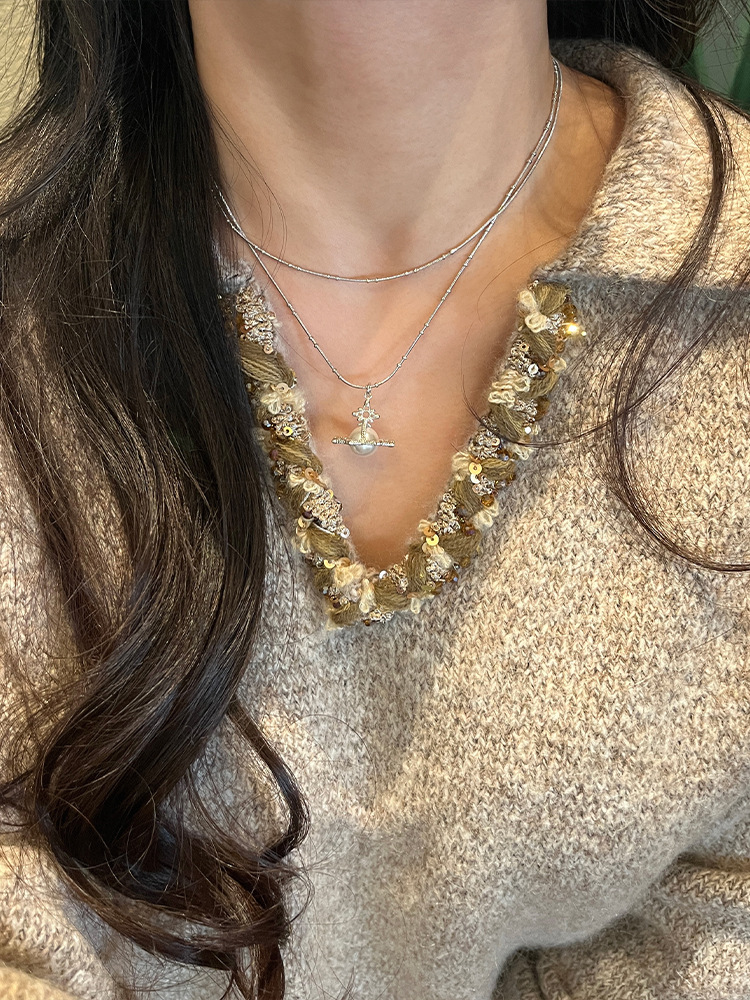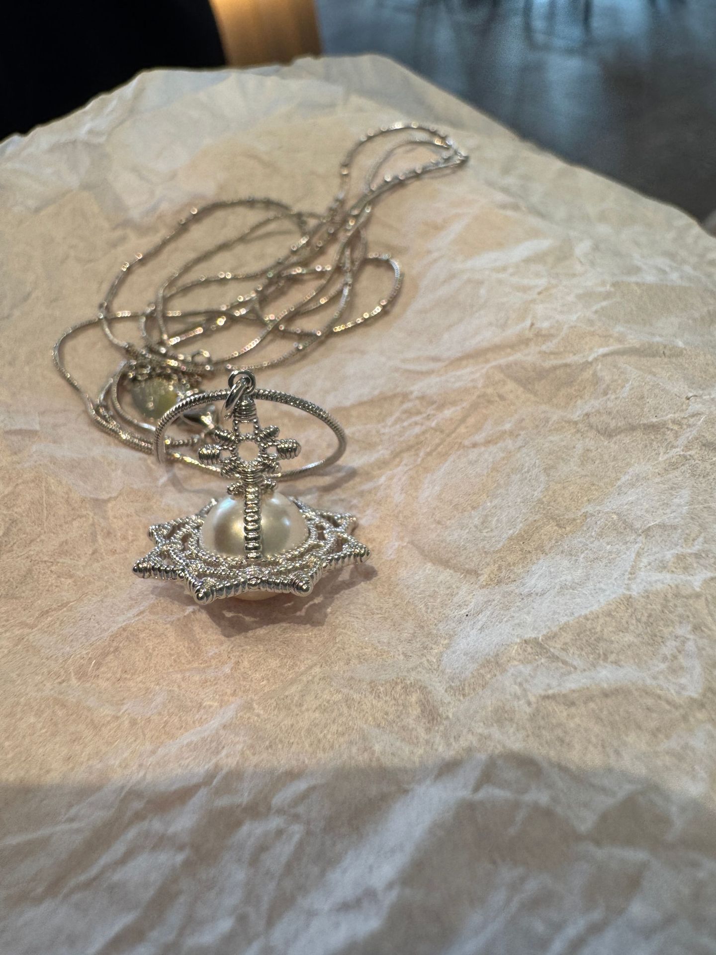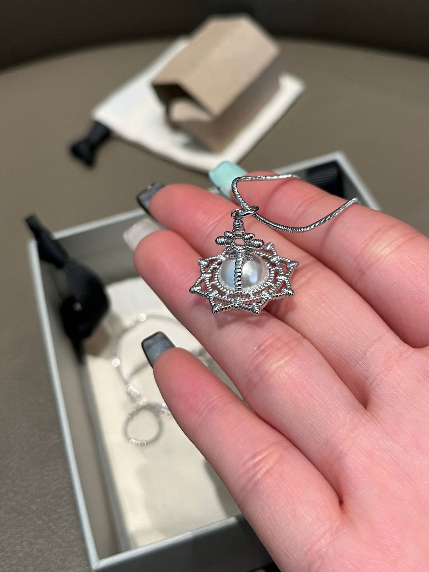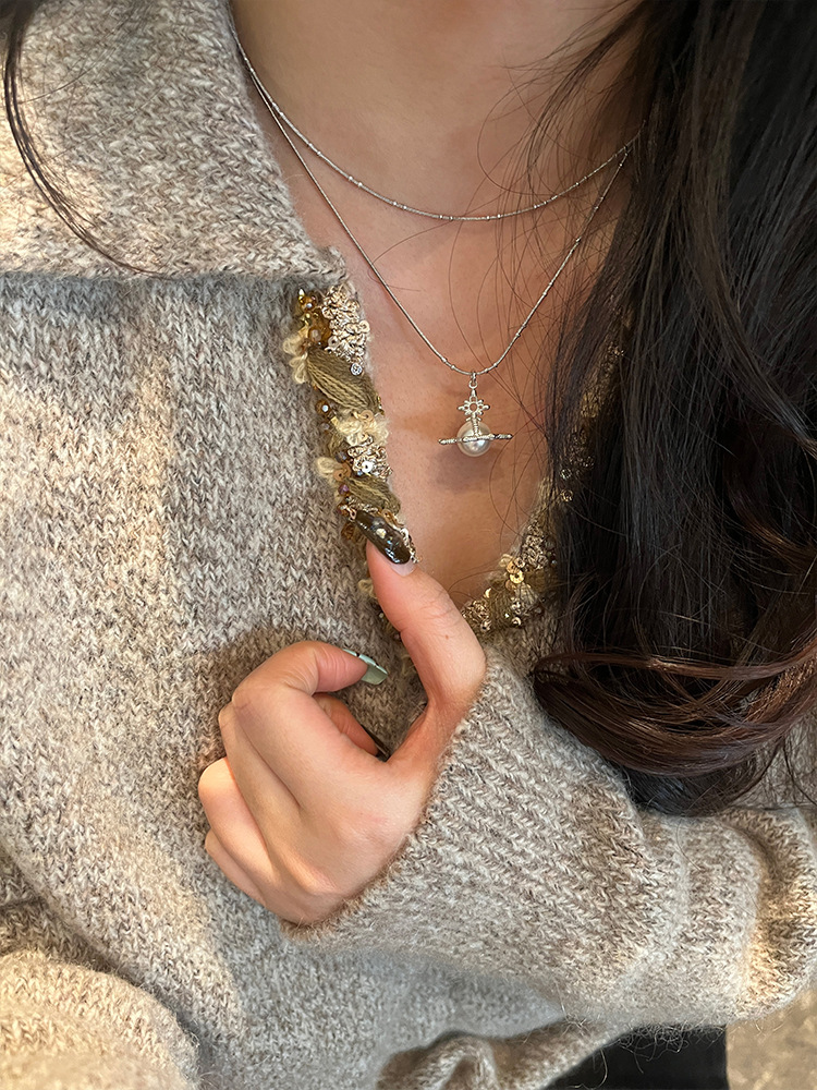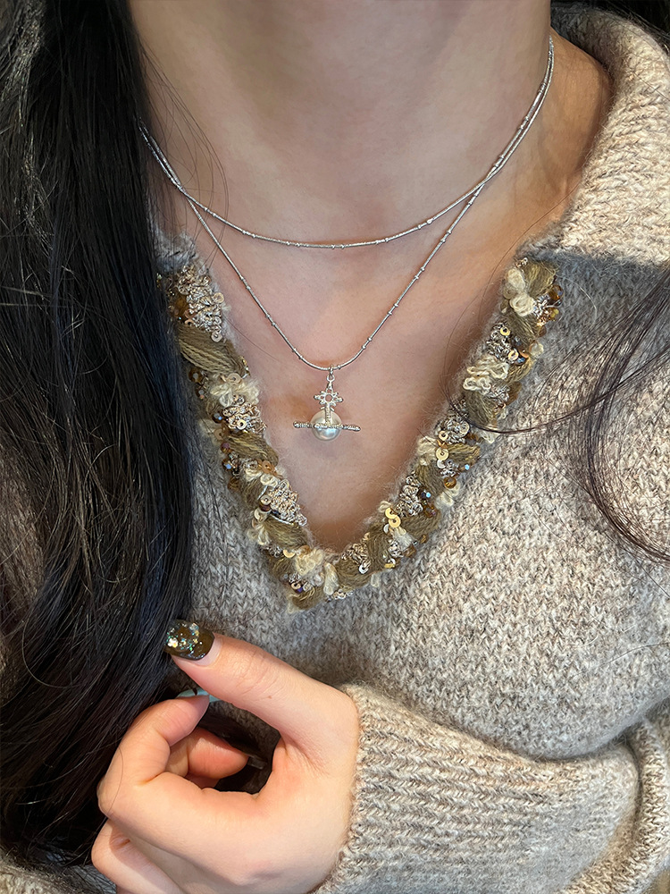 The Queen Mother of the West medieval weaving court wind and snowflake eight-pointed star pearl orb necklace three-dimensional Saturn pendant long chain