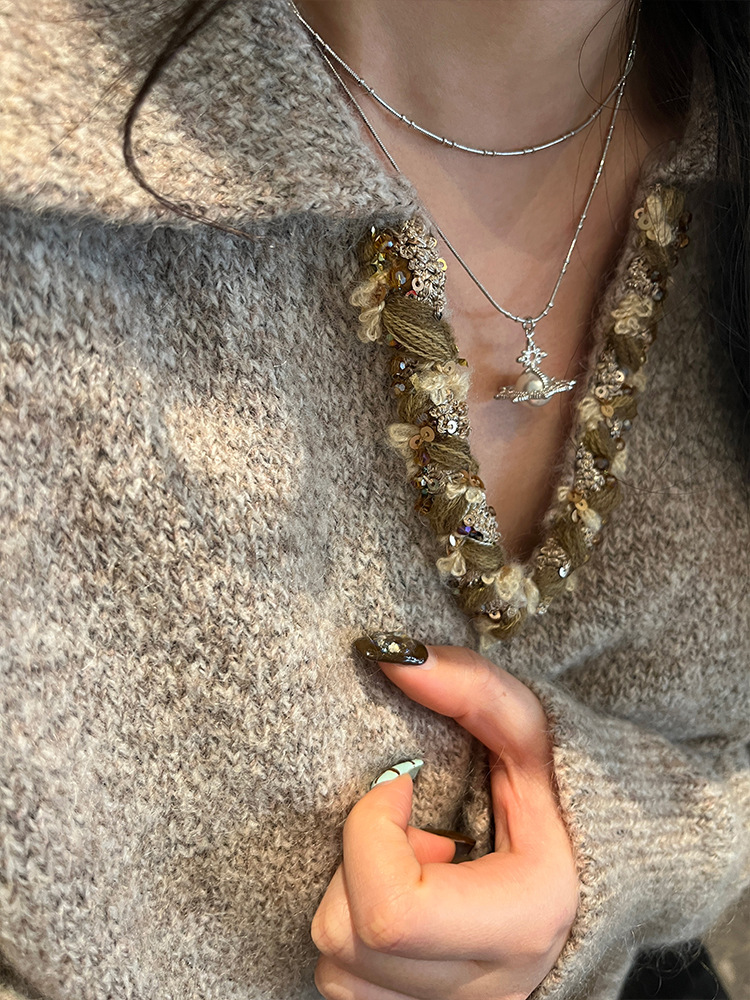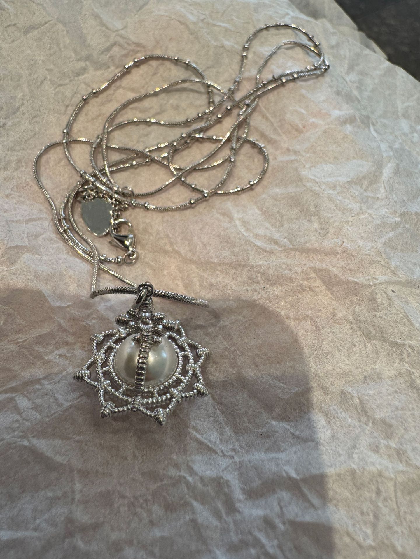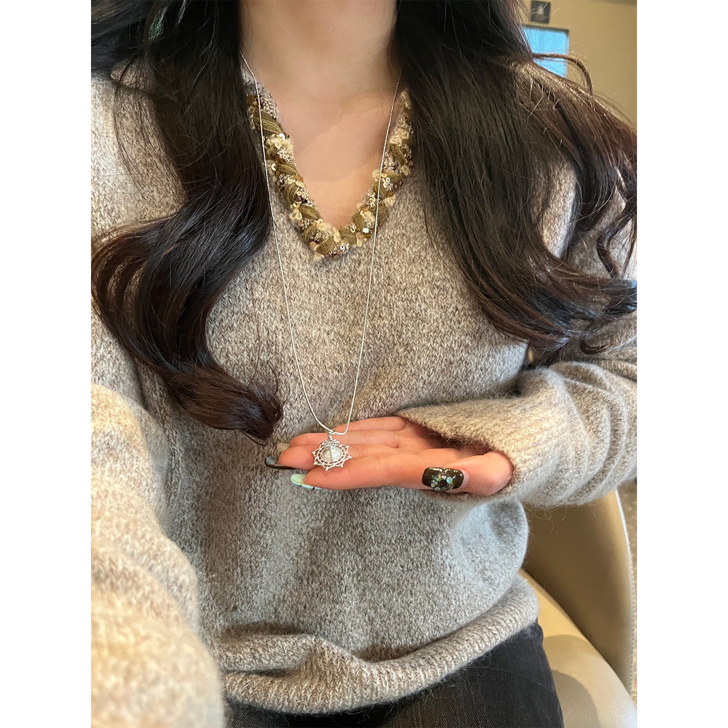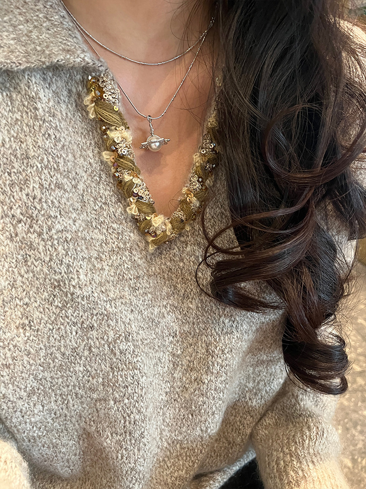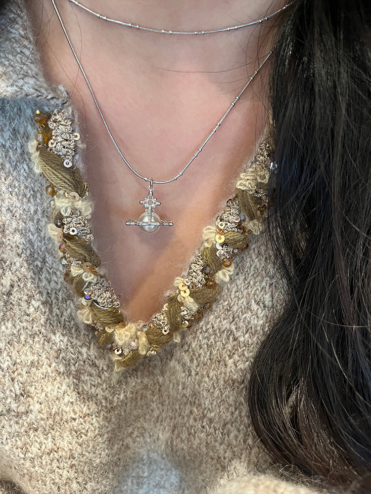 The Queen Mother of the West medieval weaving court wind and snowflake eight-pointed star pearl orb necklace three-dimensional Saturn pendant long chain