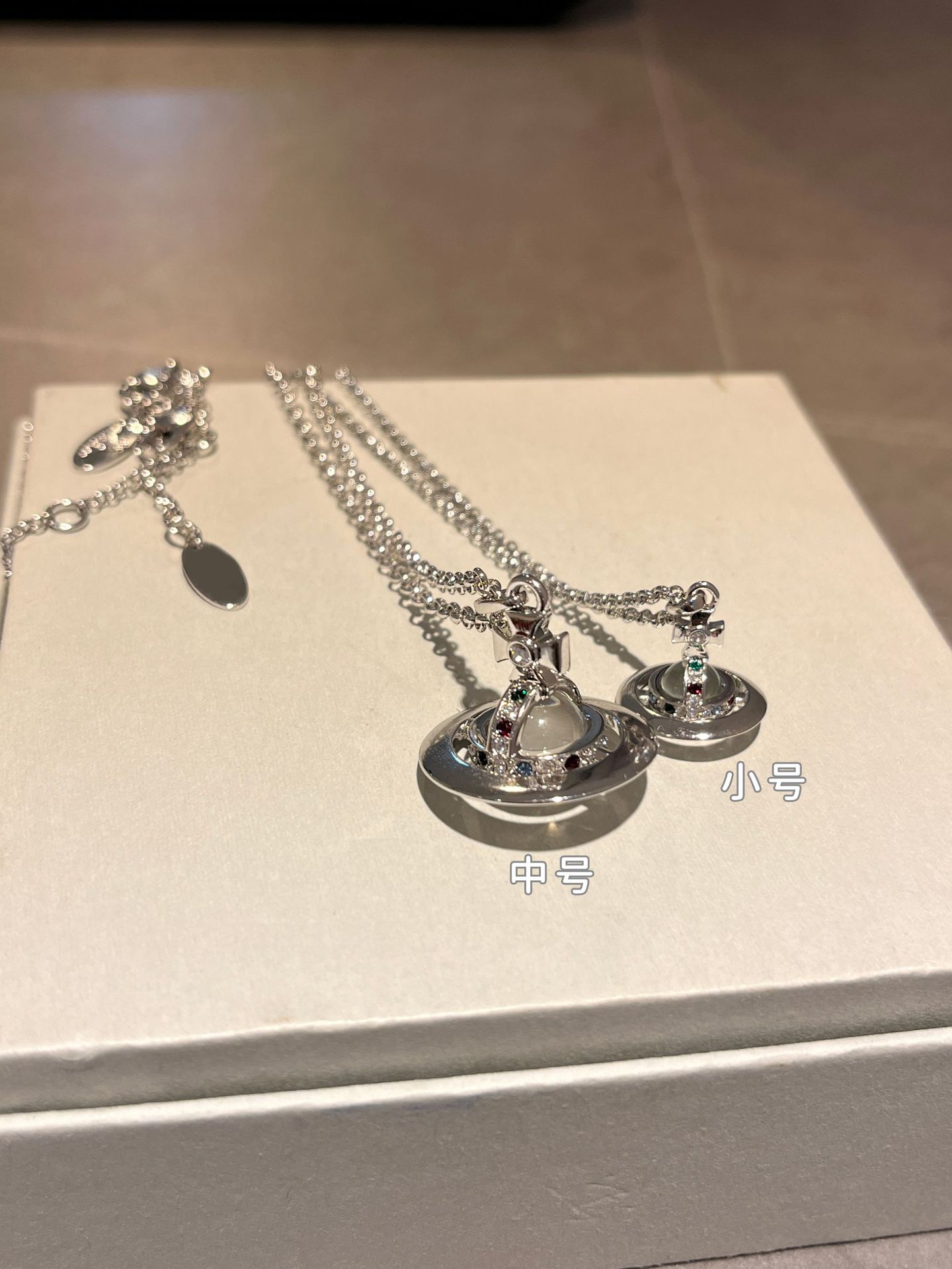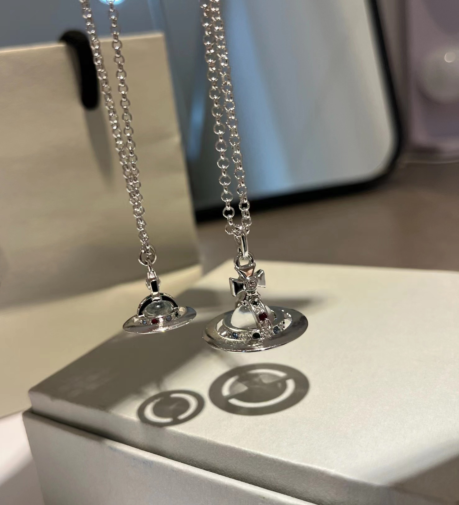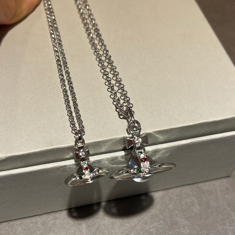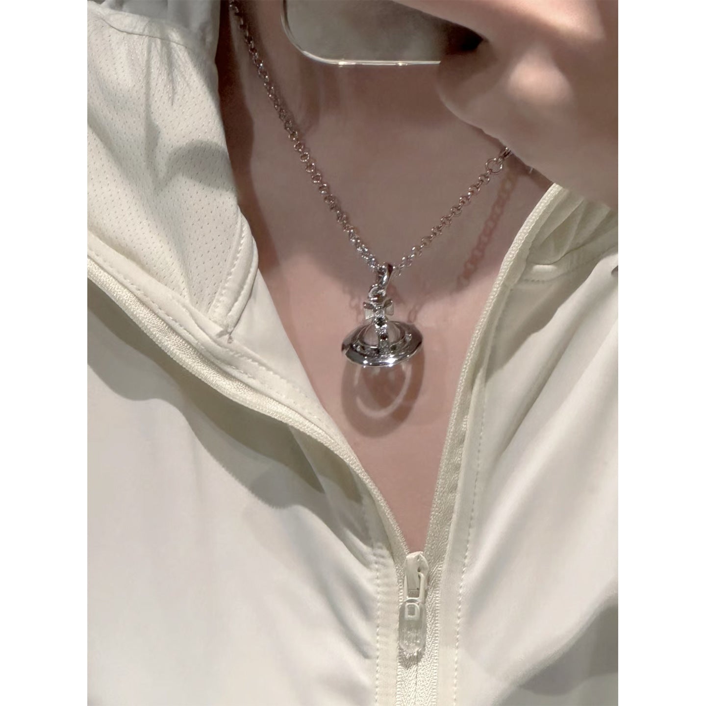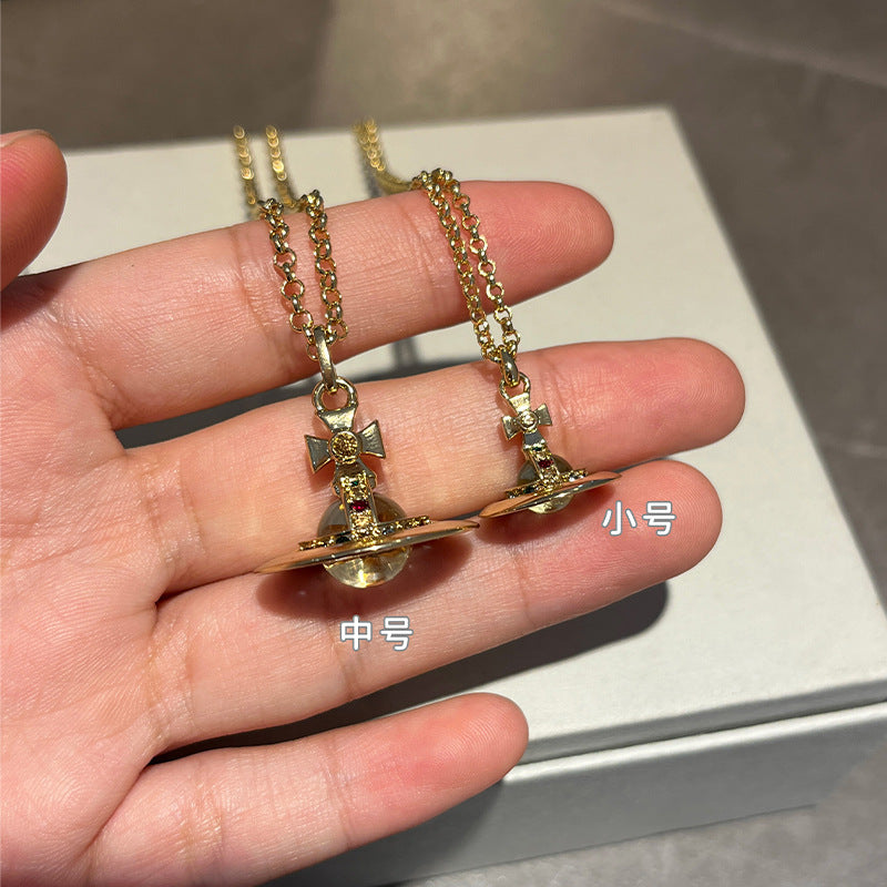 The Queen Mother of the West medium three-dimensional planet necklace orb transparent glass bead pendant color diamond Saturn clavicle chain women