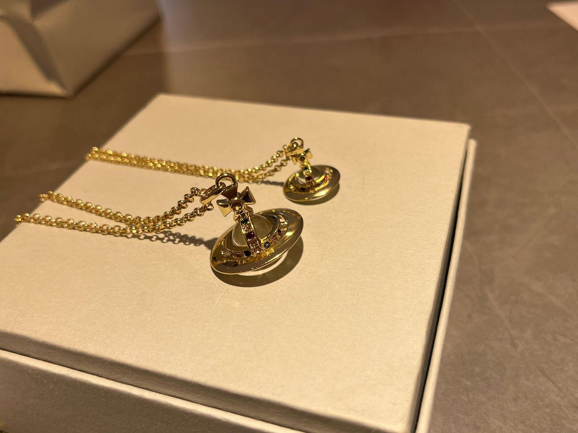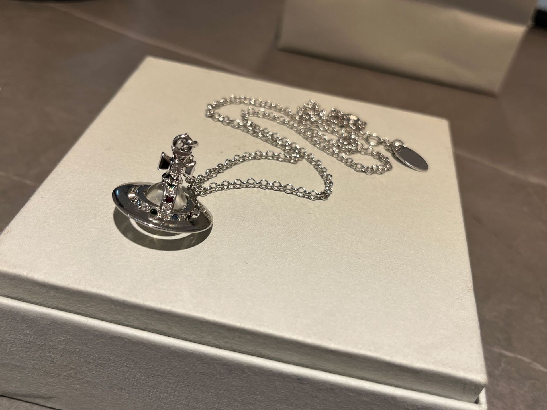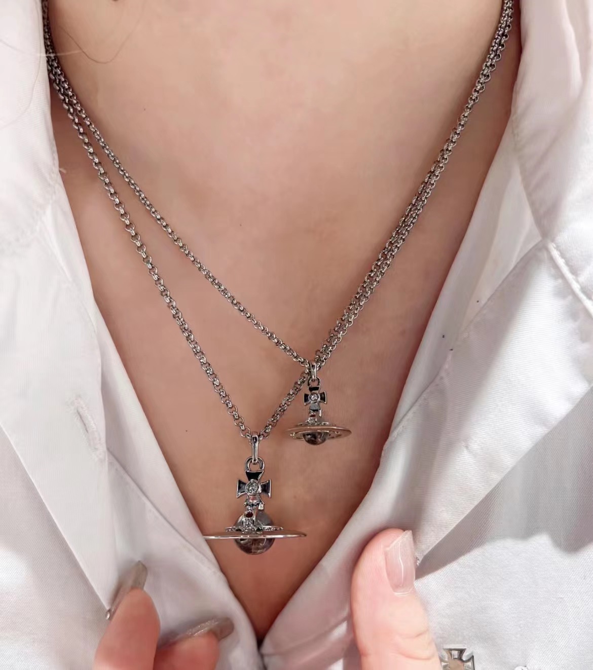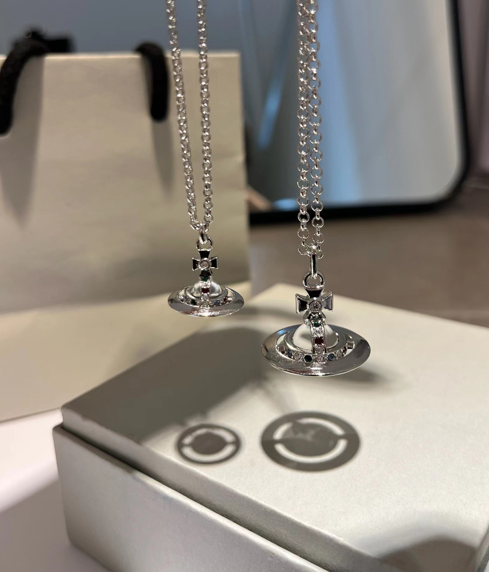 The Queen Mother of the West medium three-dimensional planet necklace orb transparent glass bead pendant color diamond Saturn clavicle chain women