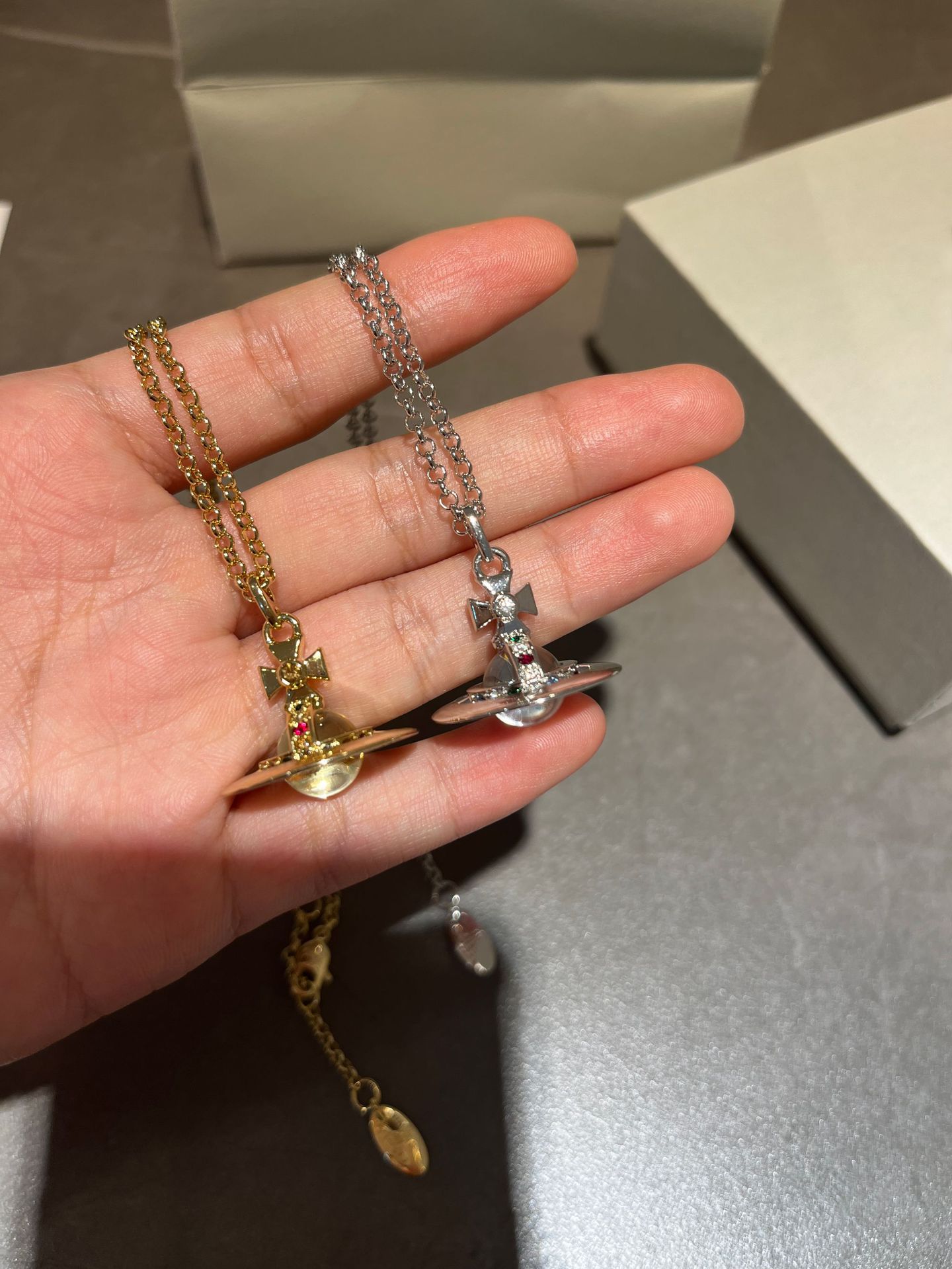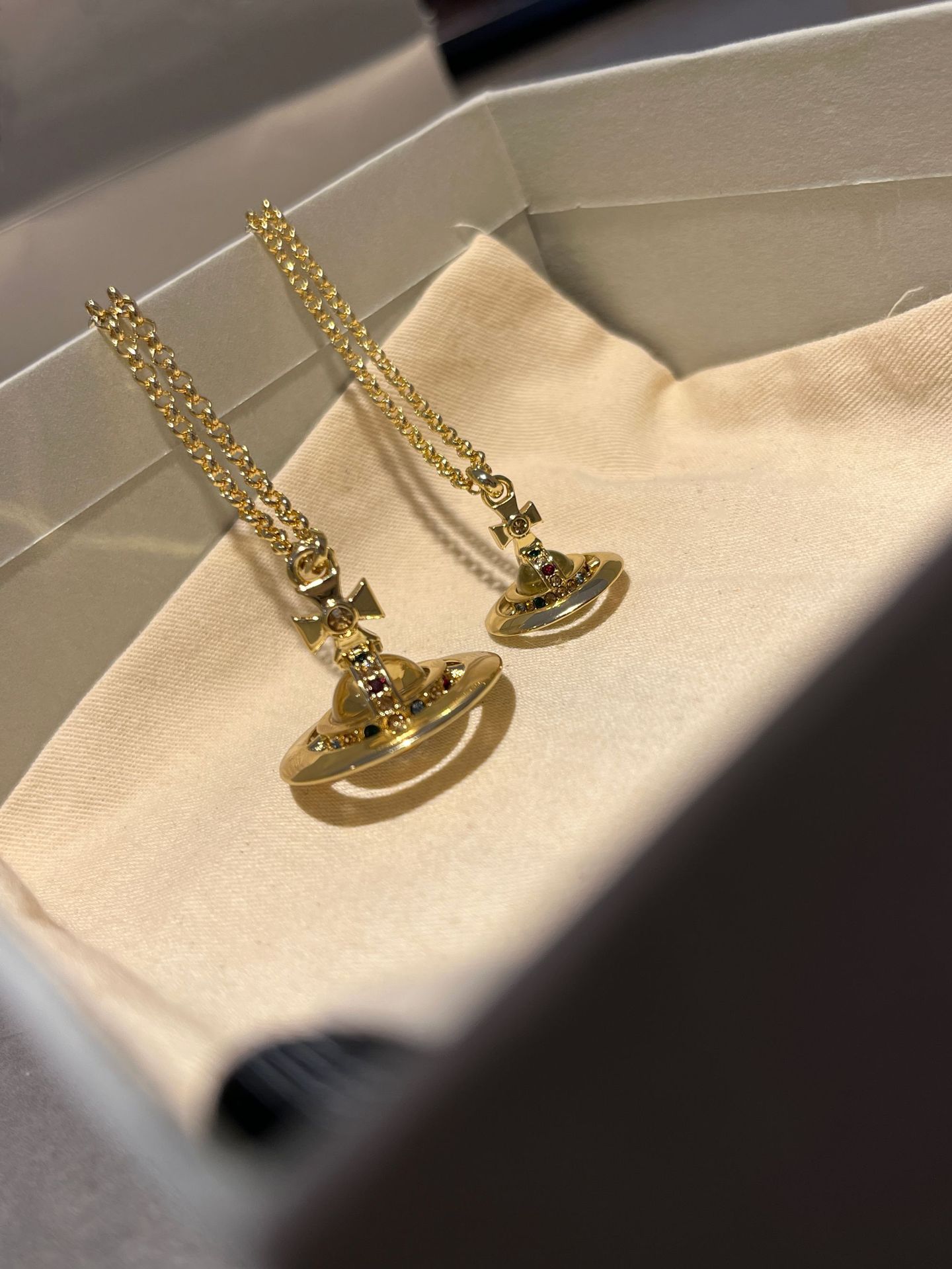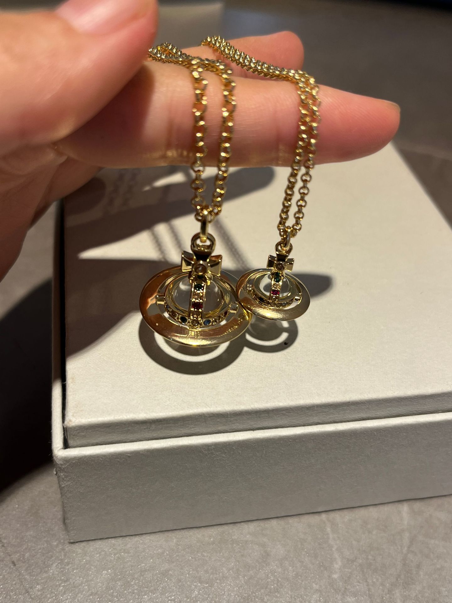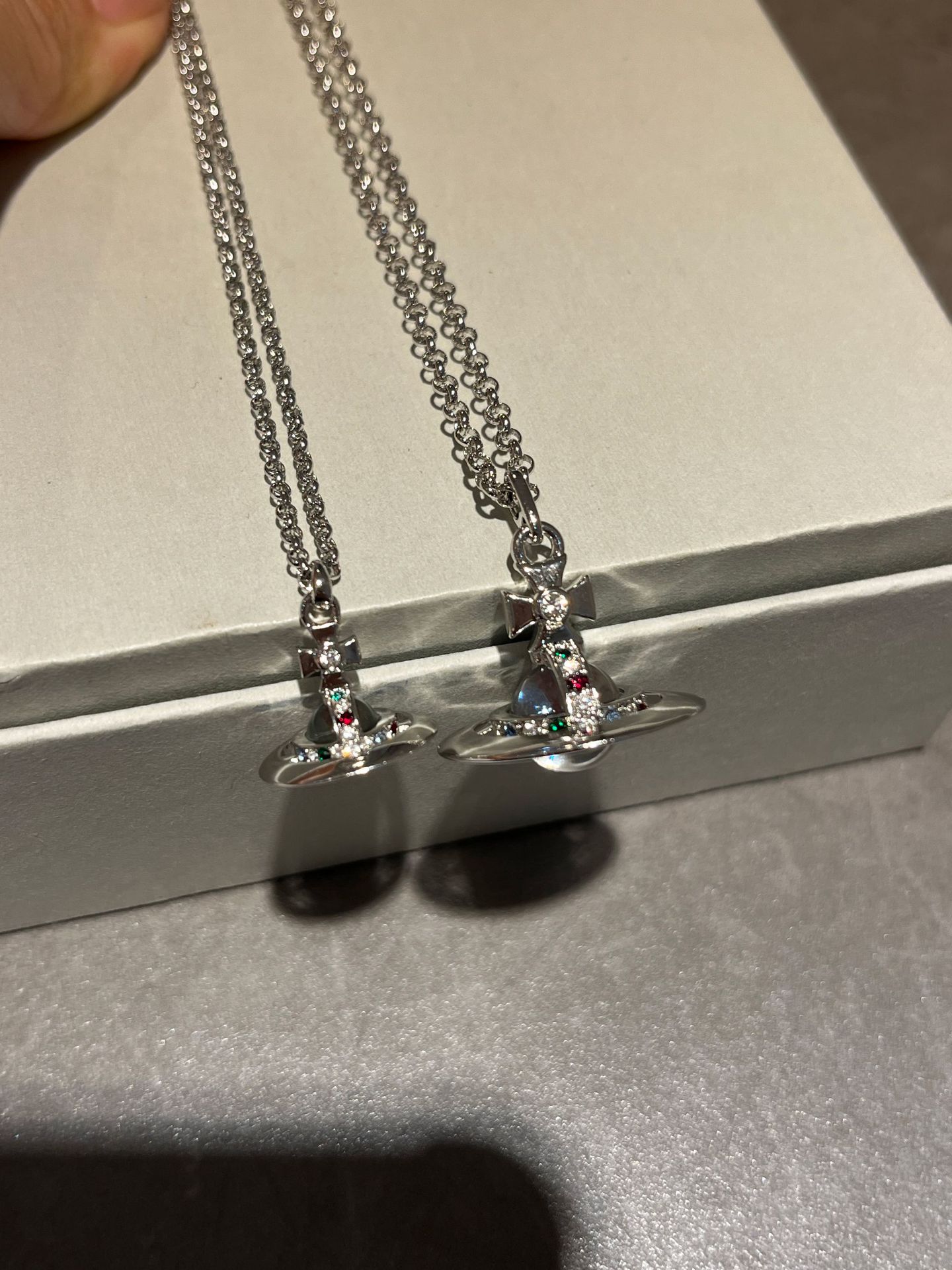 The Queen Mother of the West medium three-dimensional planet necklace orb transparent glass bead pendant color diamond Saturn clavicle chain women