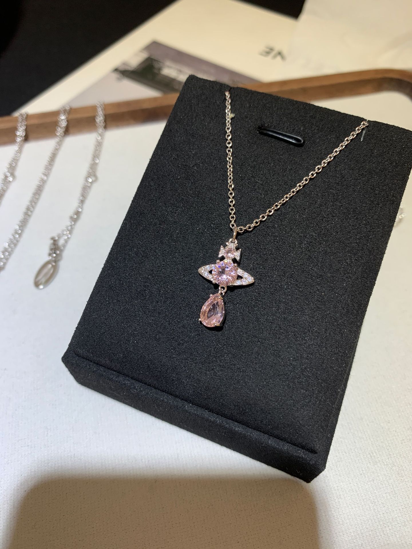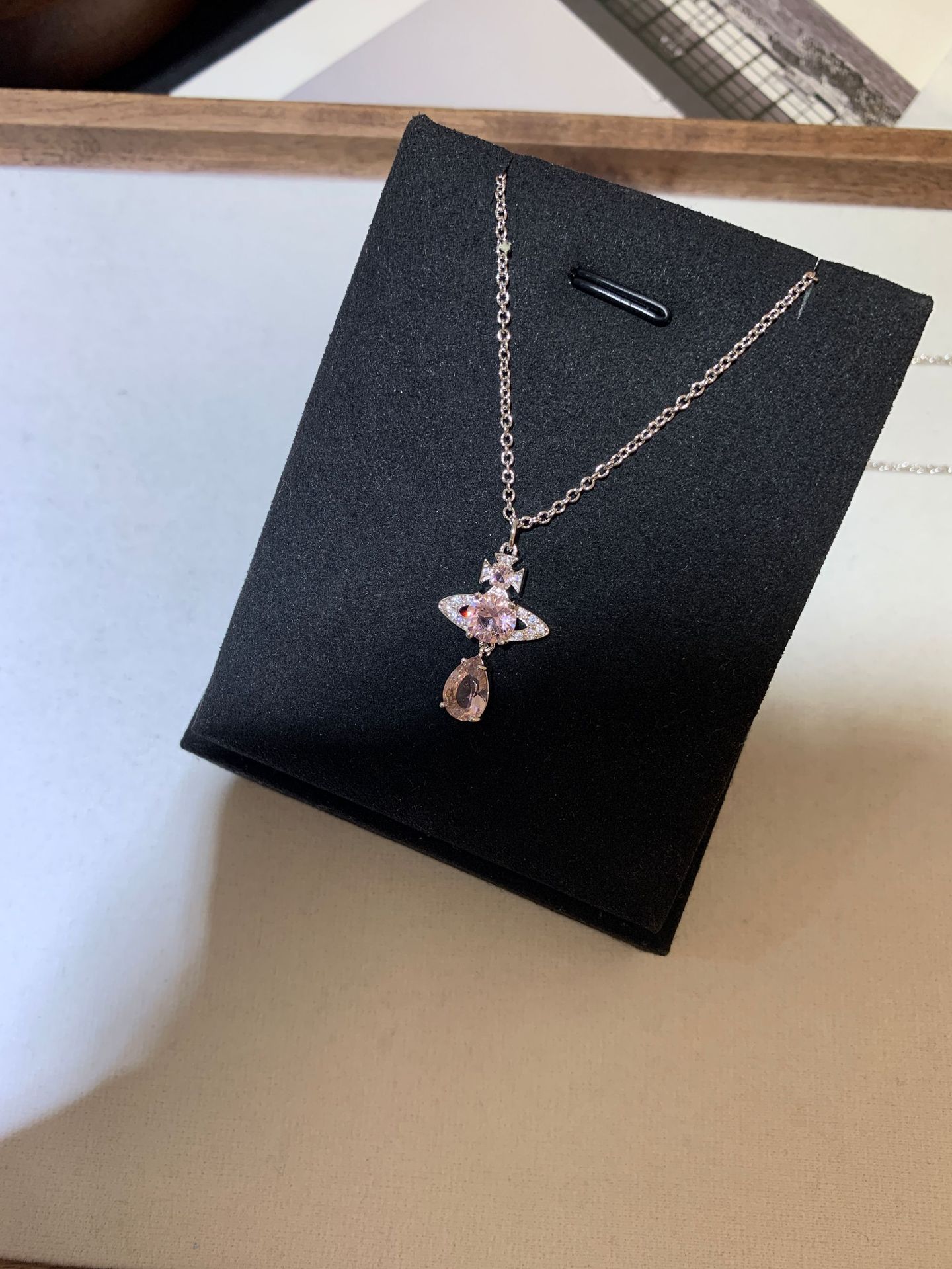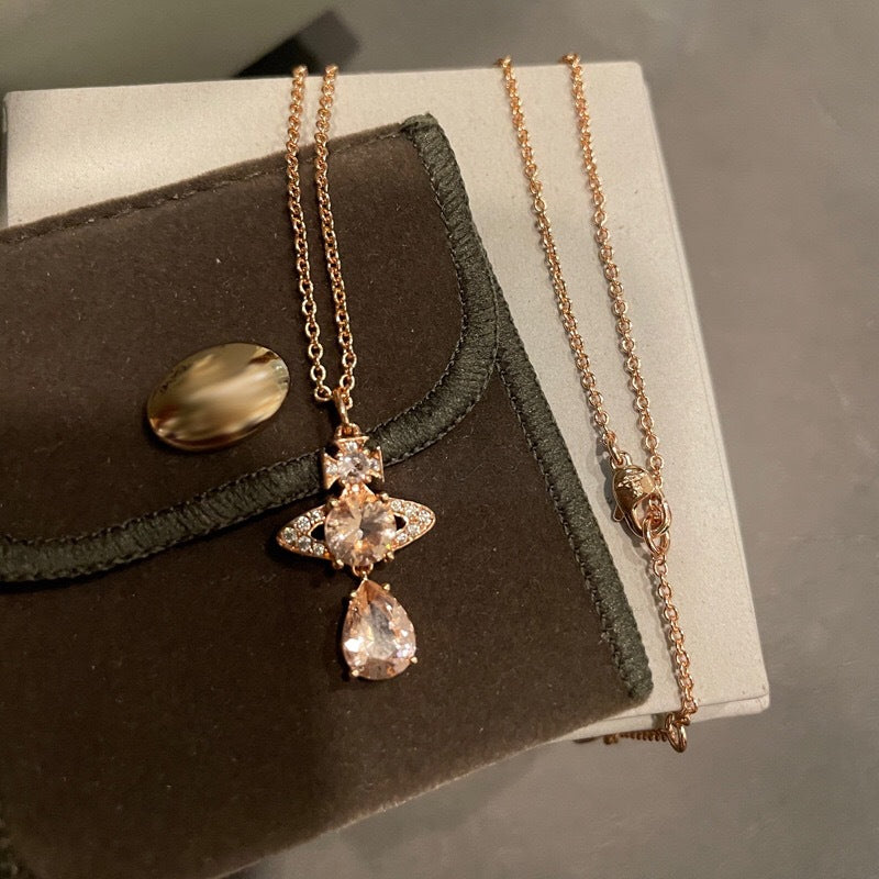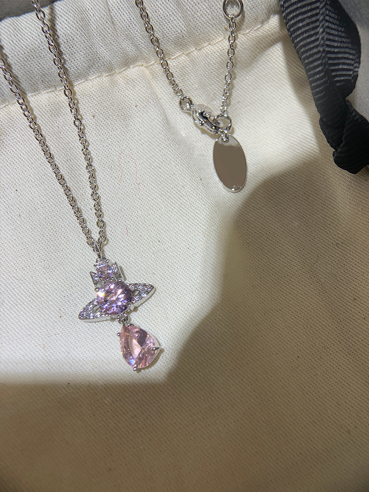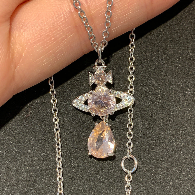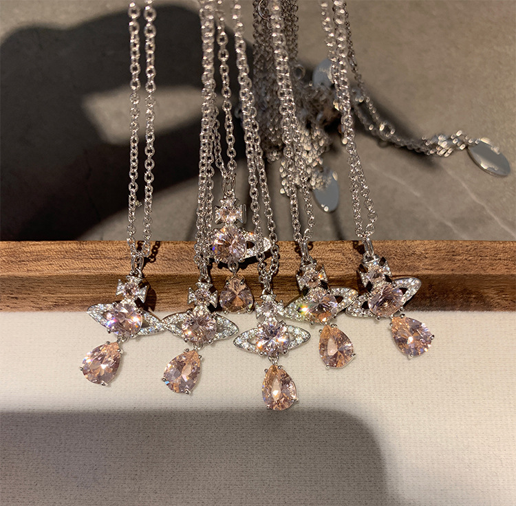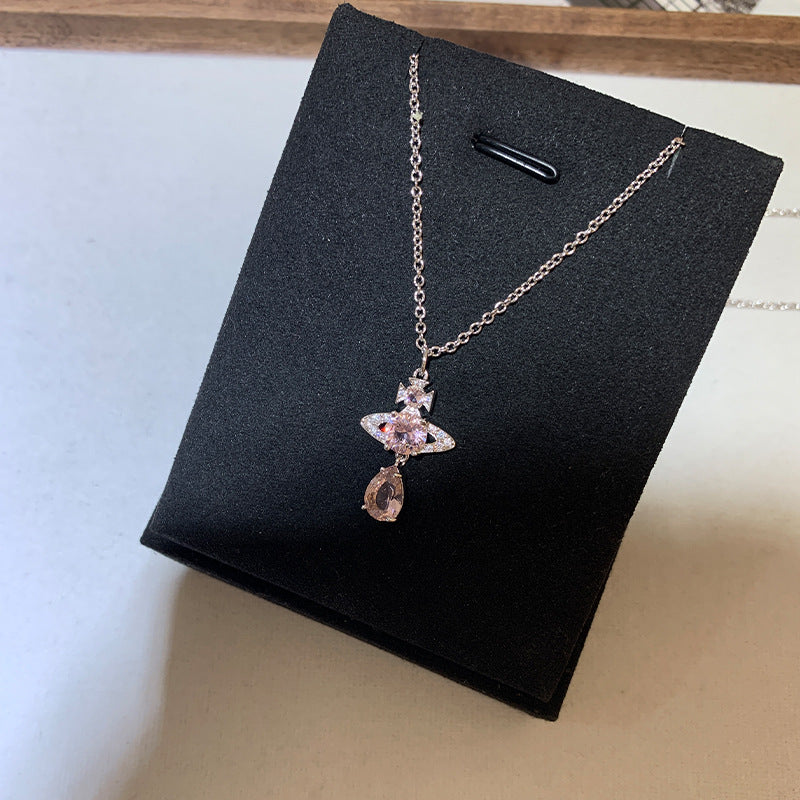 The Queen Mother of the West pink diamond mermaid tears drop diamond necklace Seiko thick gold small sweet potato live broadcast hit